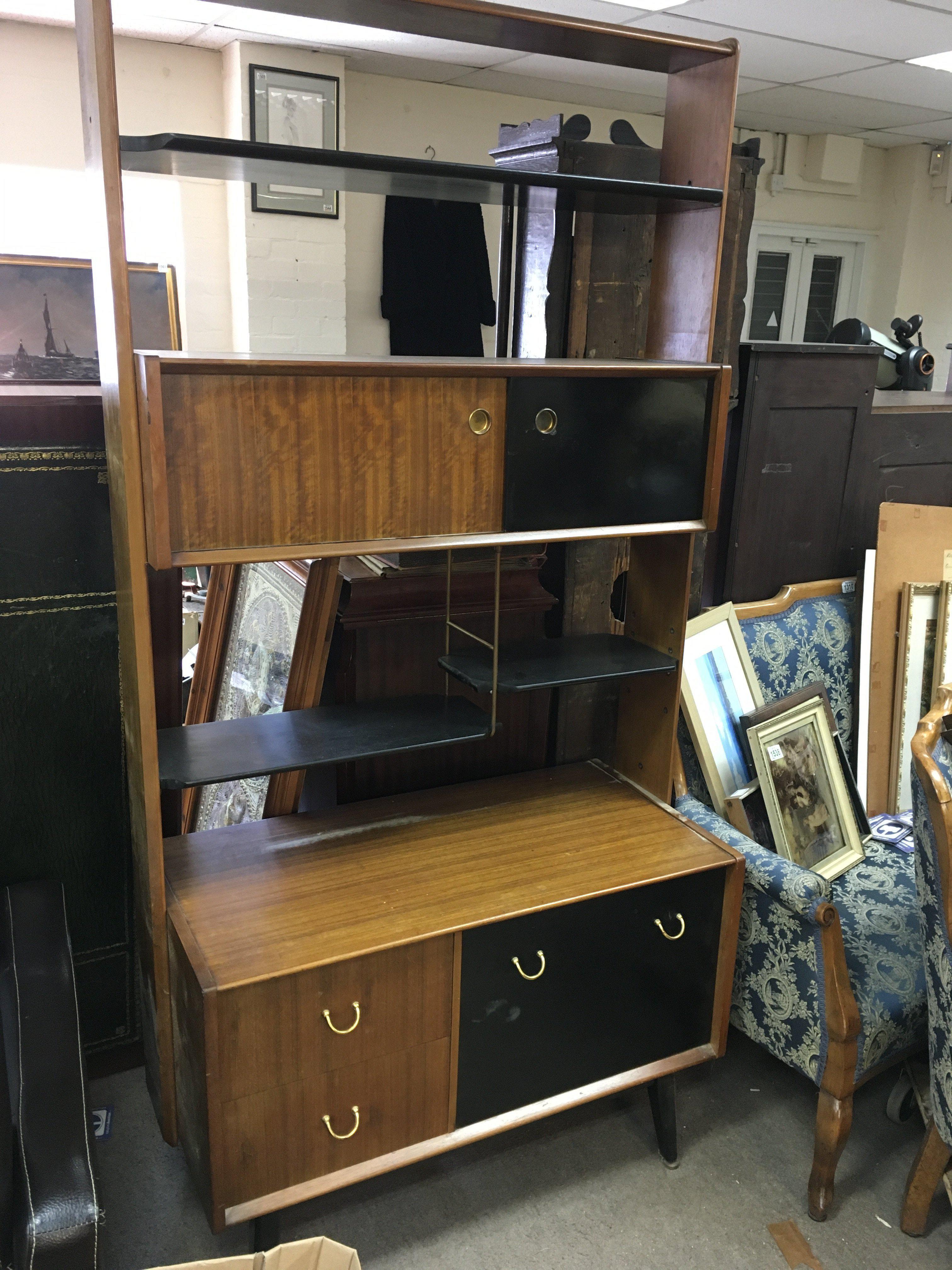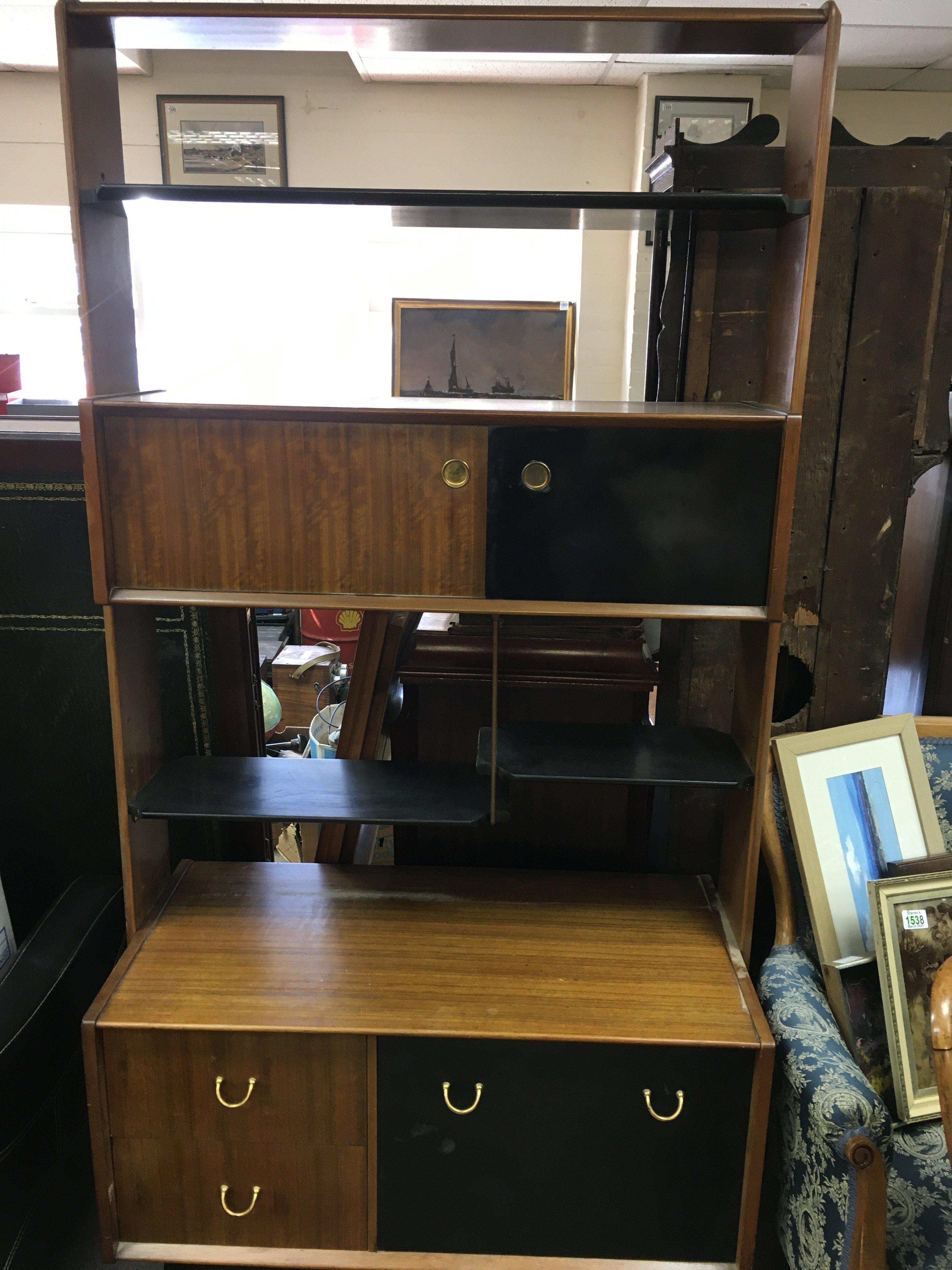 A 1970s Harlequin open bookcase fitted with cupboards and doors.
