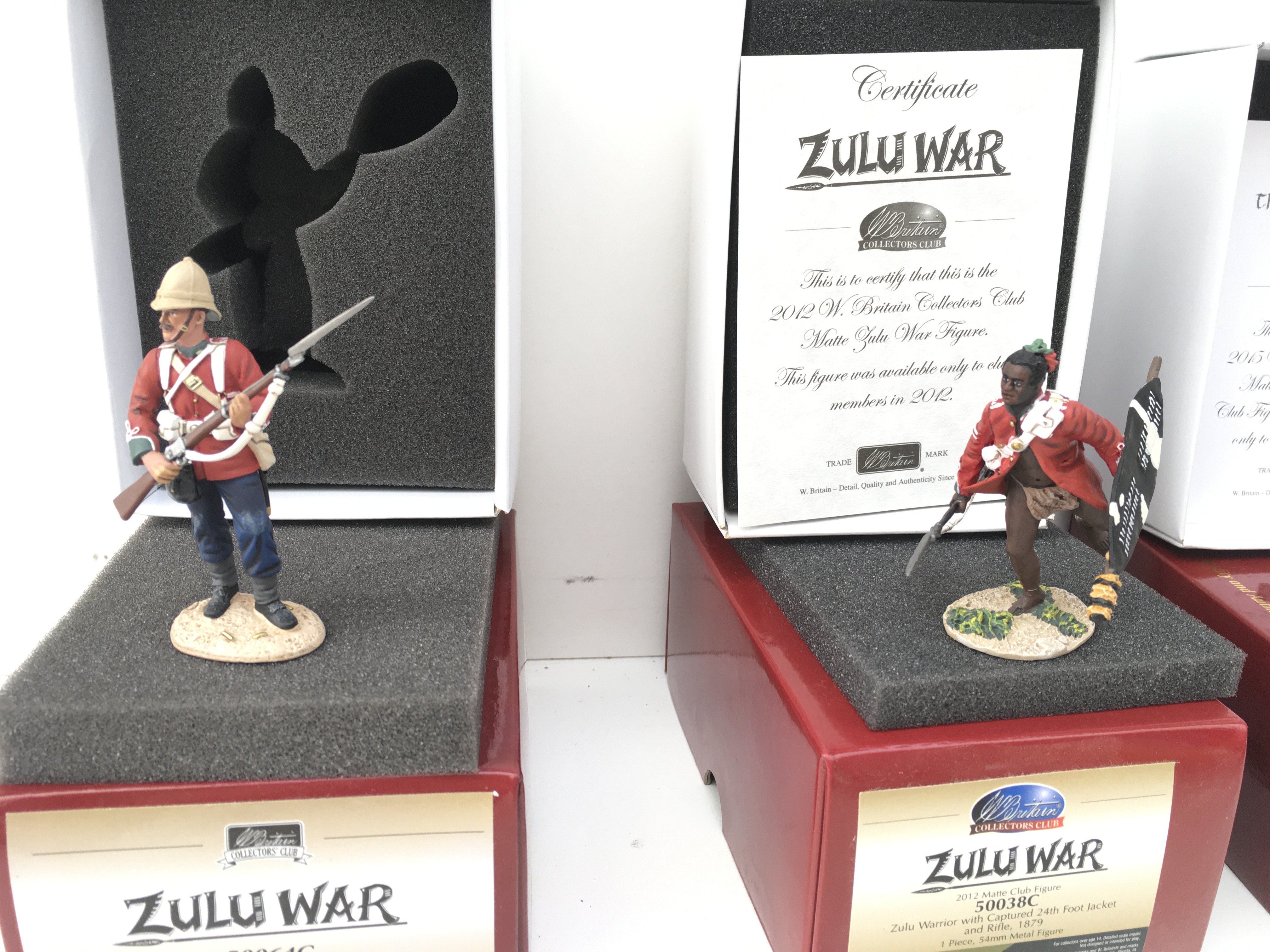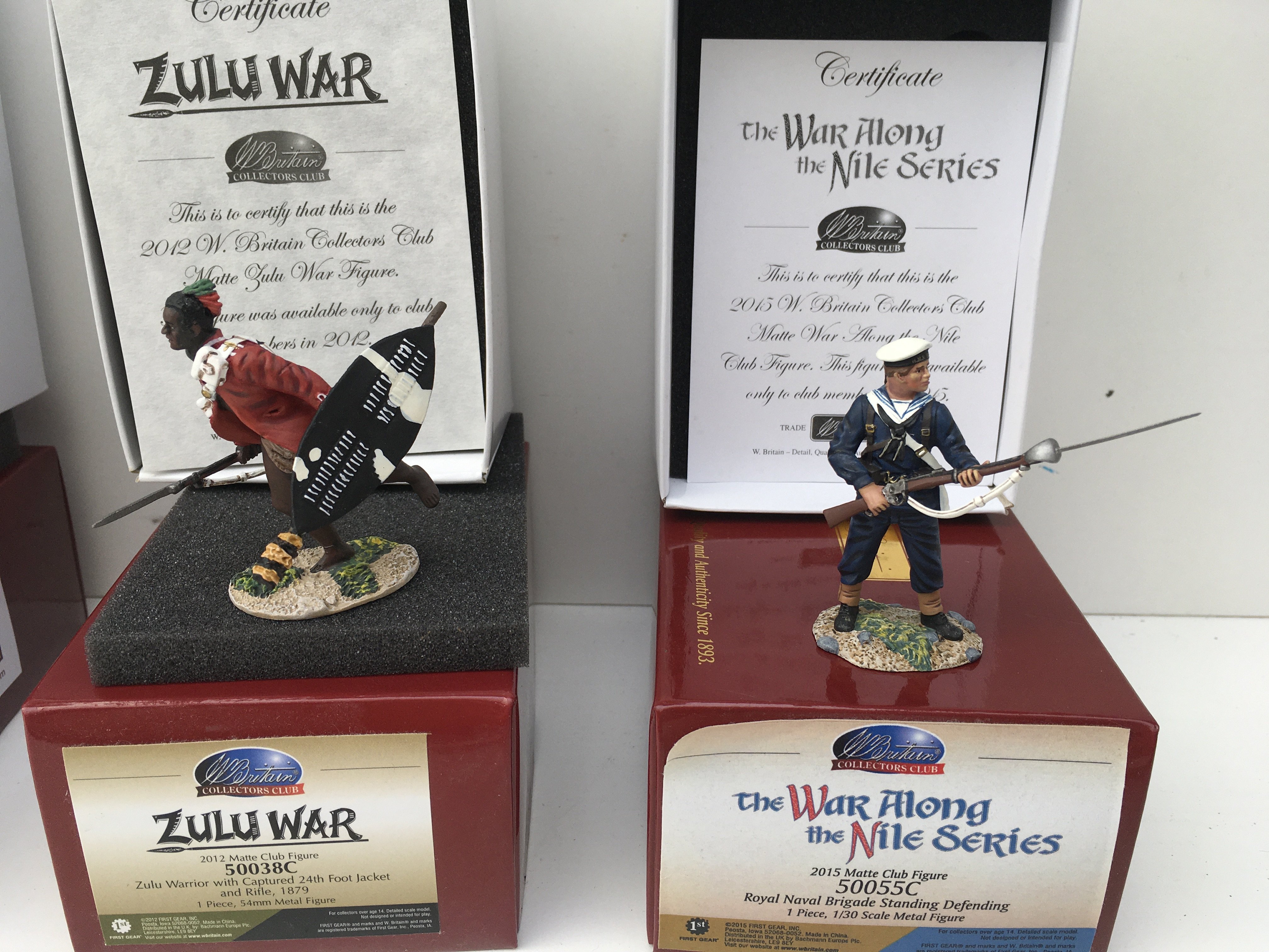 3x boxed Military Minature models by Britain featuring Zulu War 50038C and 50064C also war Along the Nile 50055C. Certificates. No reserve