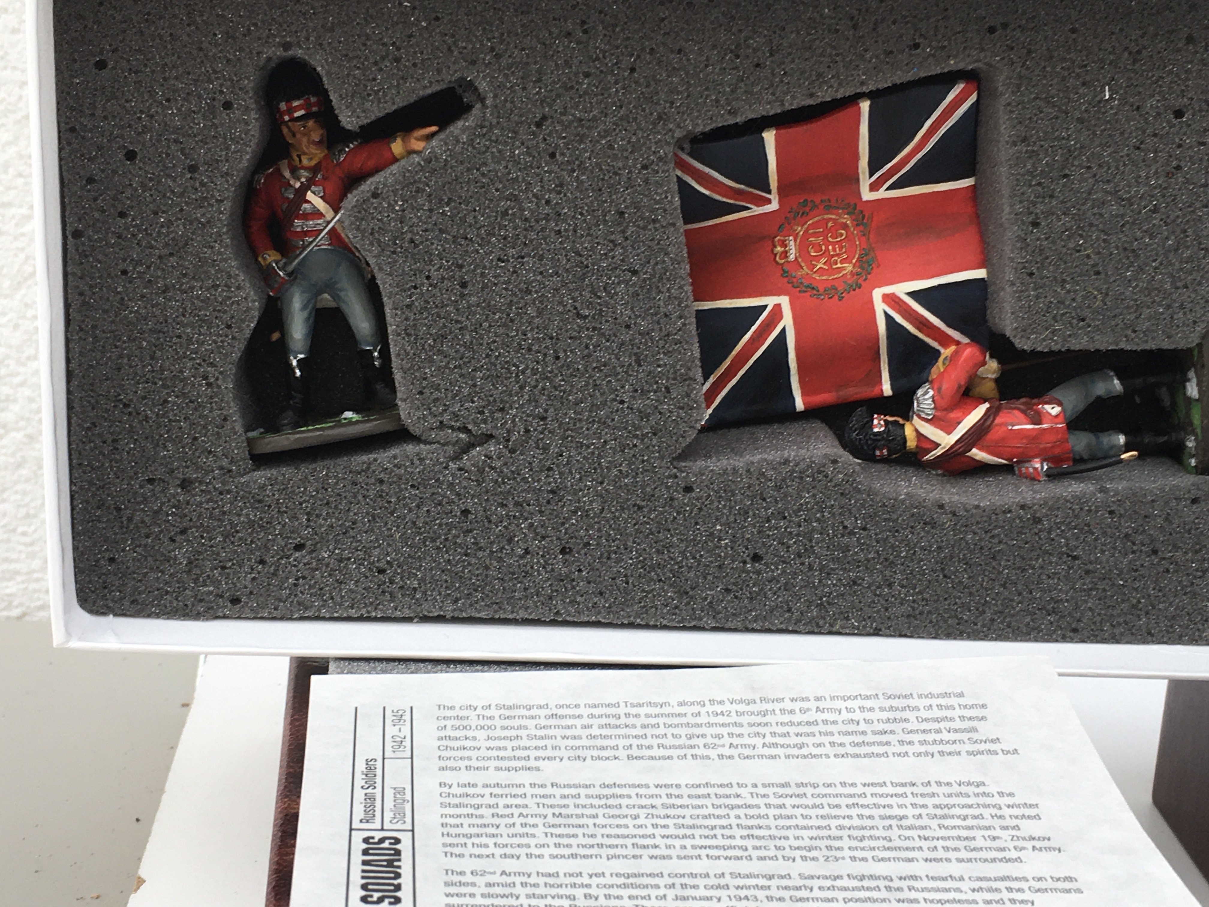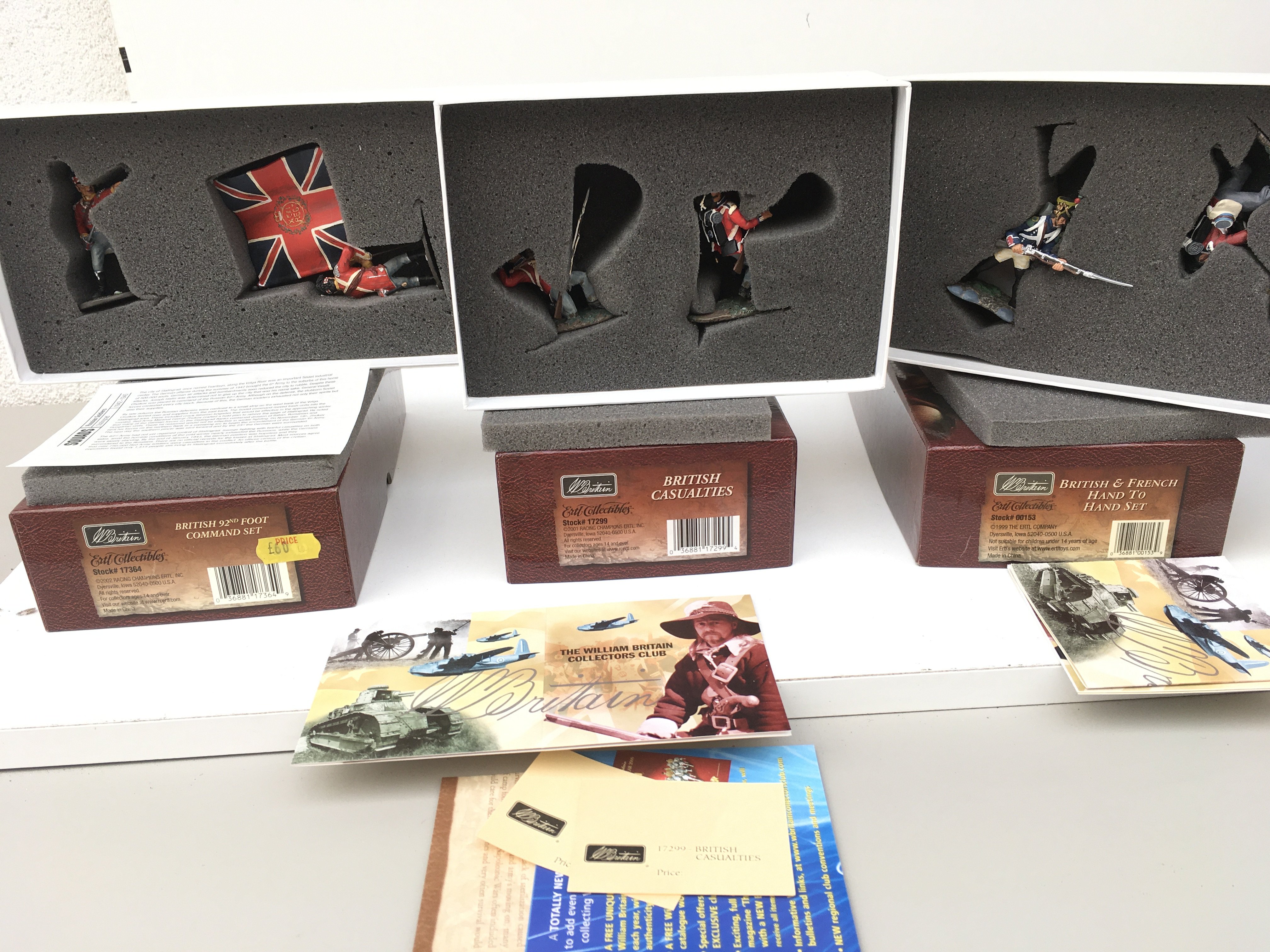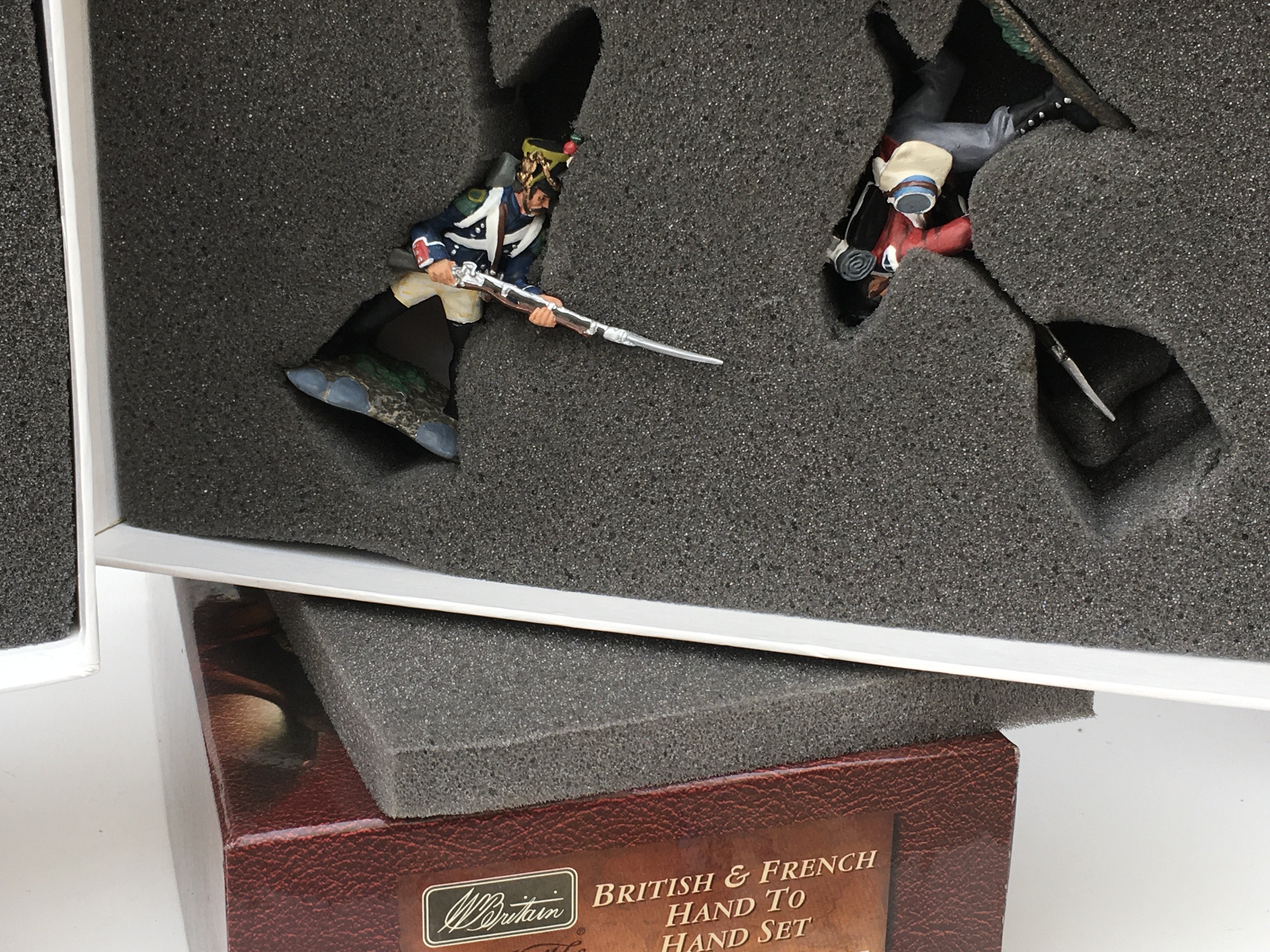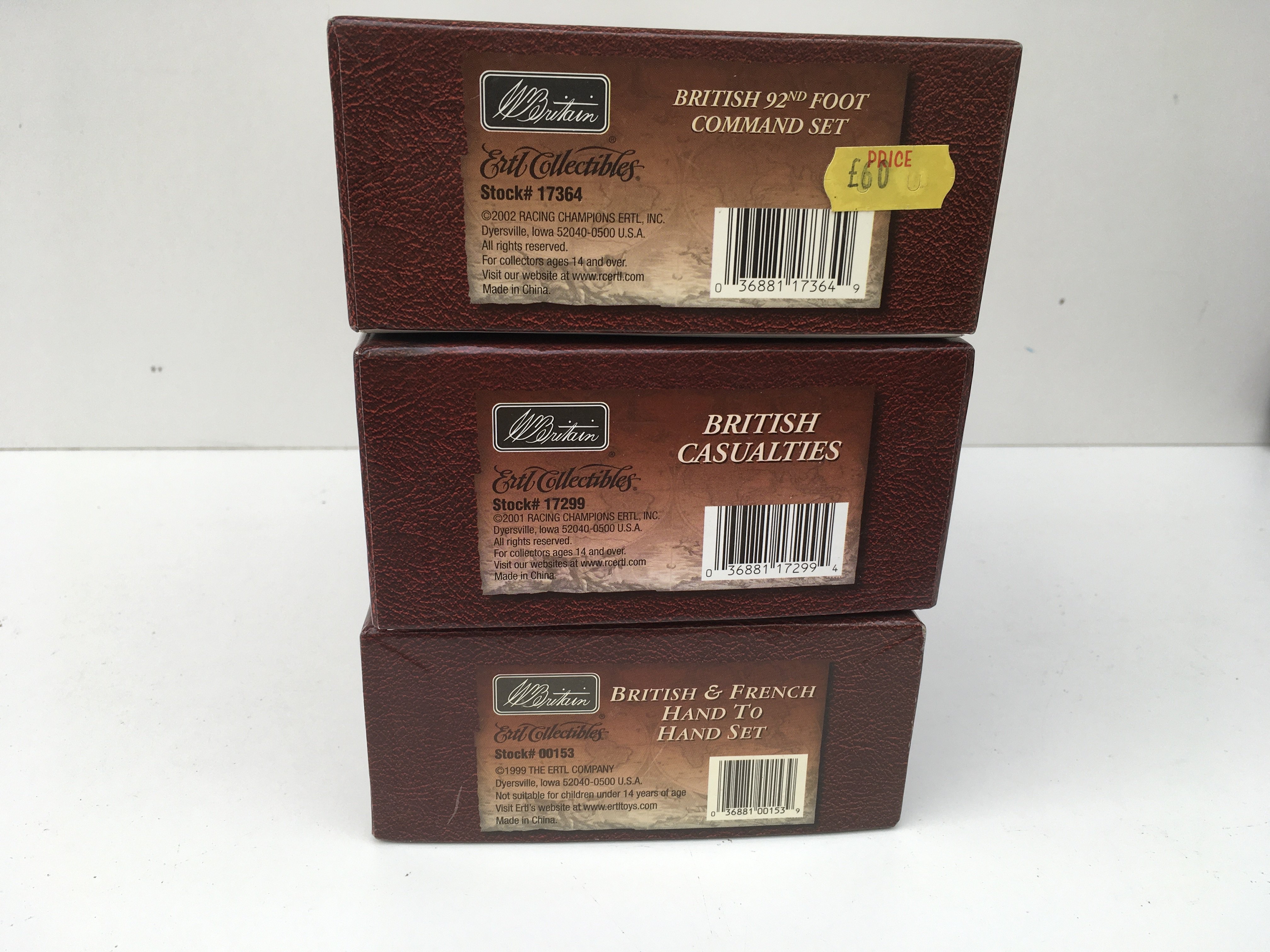 3x boxed Minature military models by Britain in the Napoleonic Wars series. Features 17364 British Command set..17299 British Casualties..00153 British and French hand to hand set. No reserve