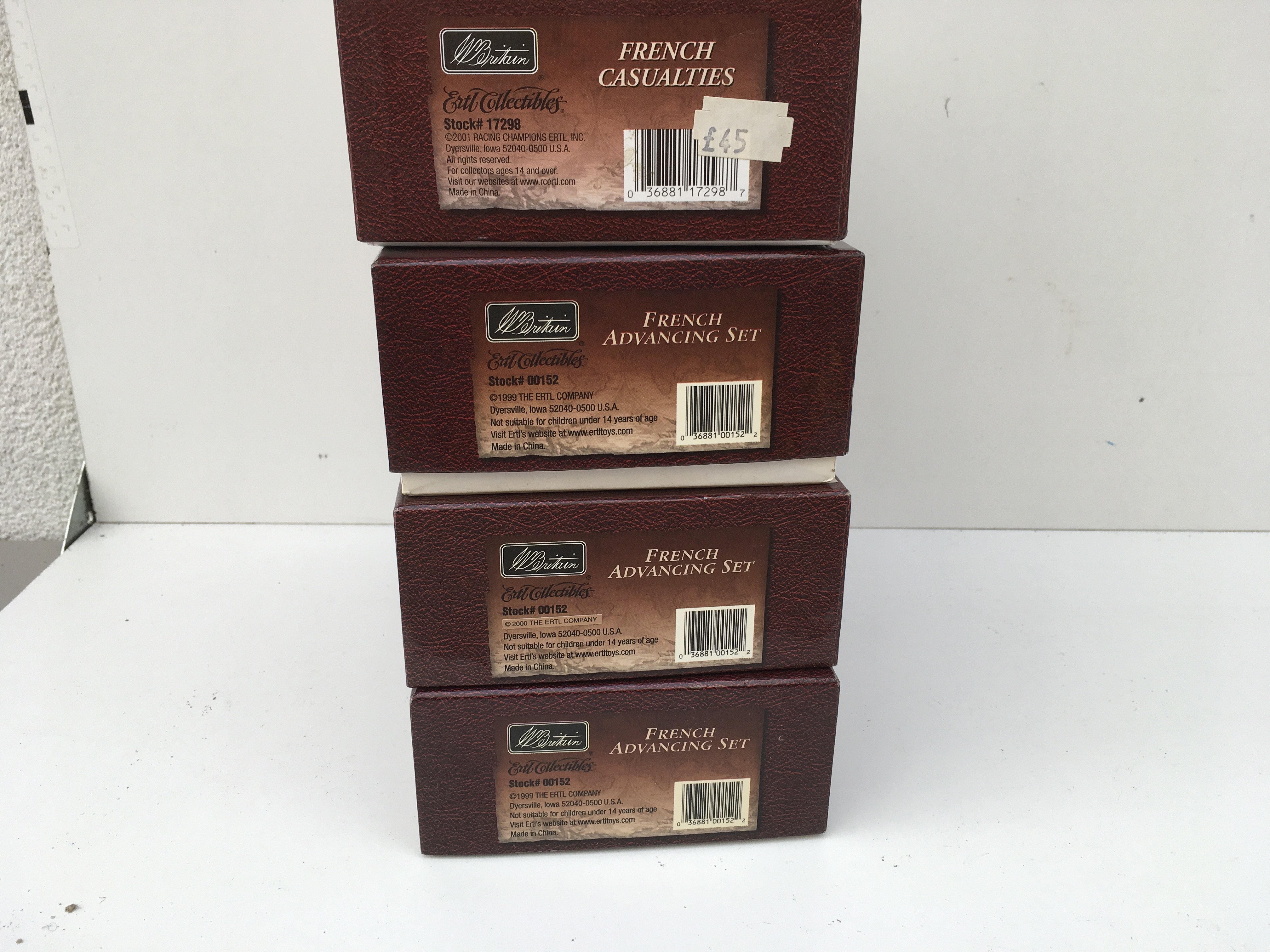 4x boxed Minature military models by Britain in the Napoleonic wars series. Features 3 of 00152 French Advancing set and 17298 French casualties.