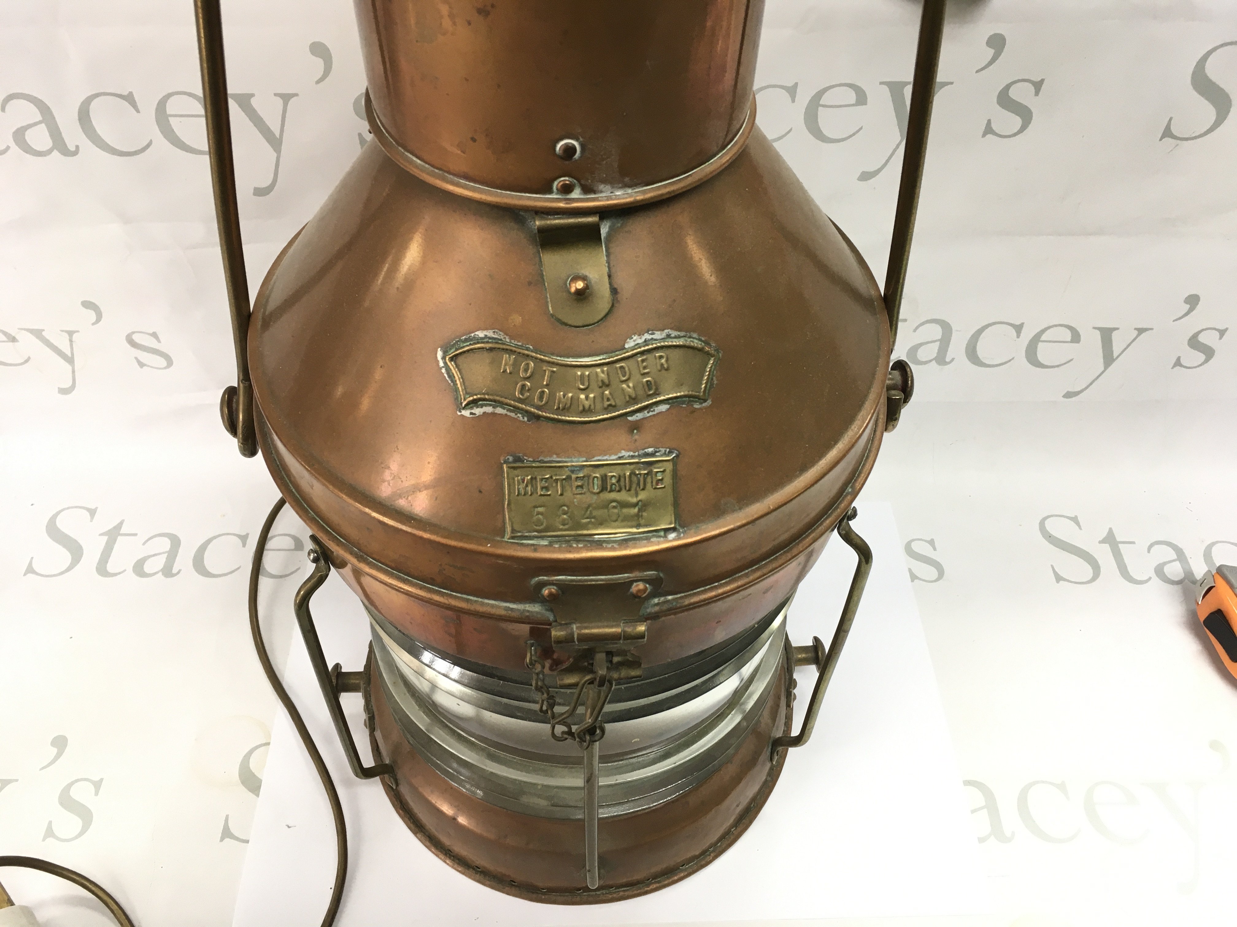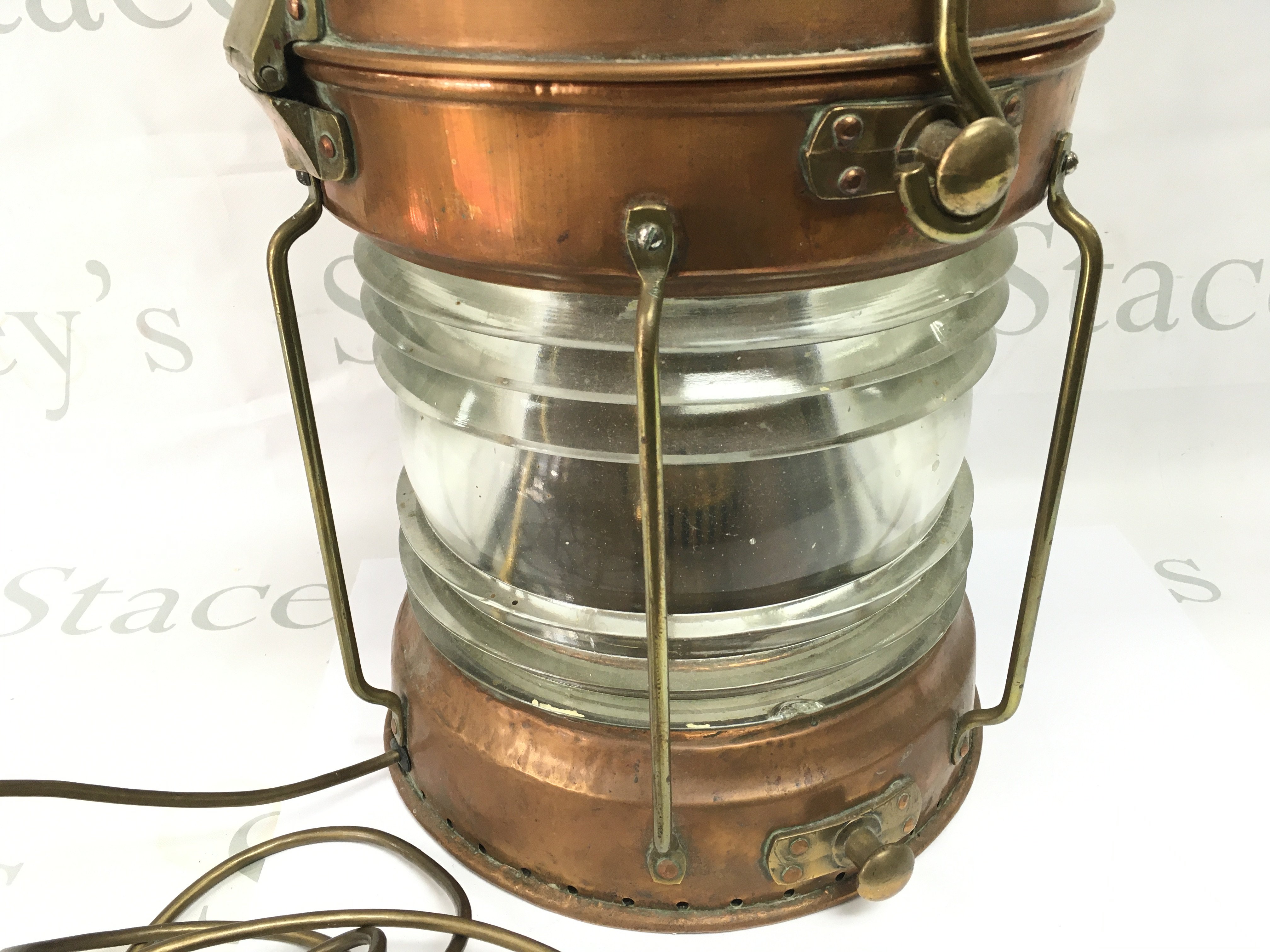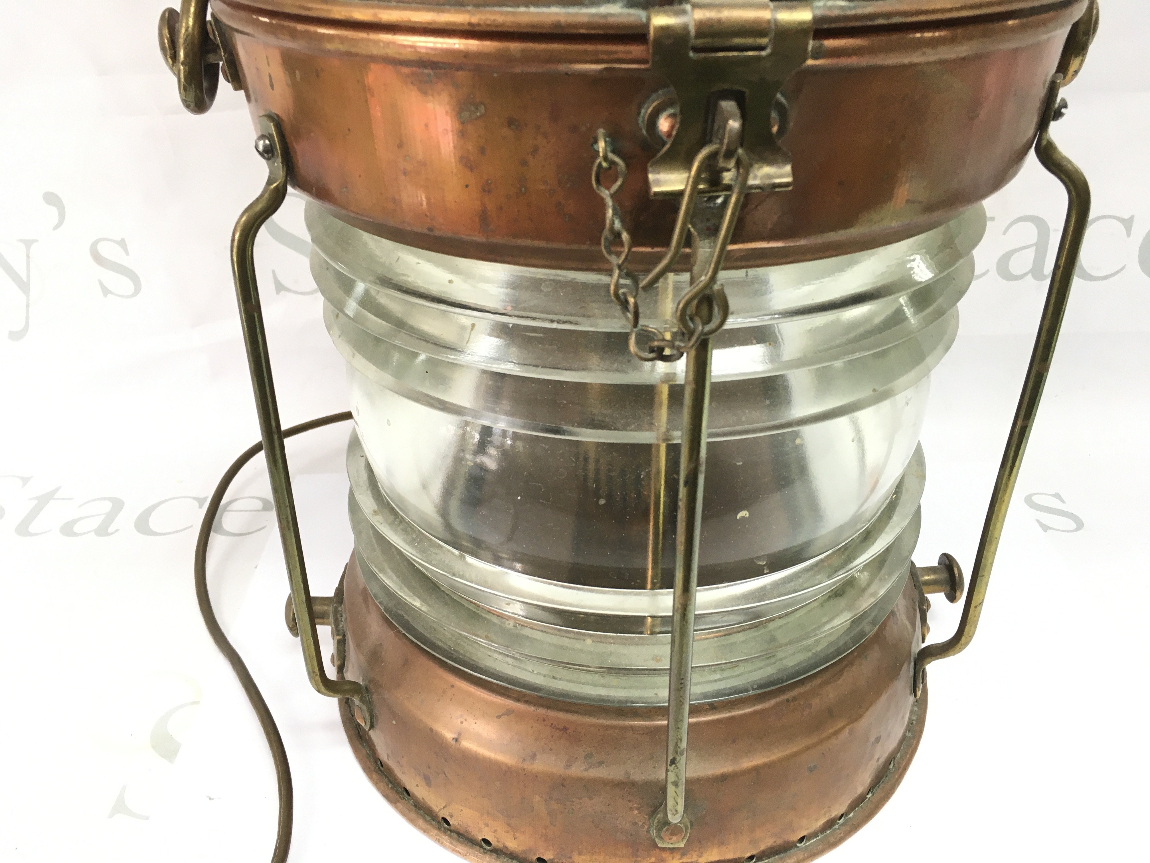 A copper and brass ship lamp which has been wired at a later date. 66cm tall. Postage D