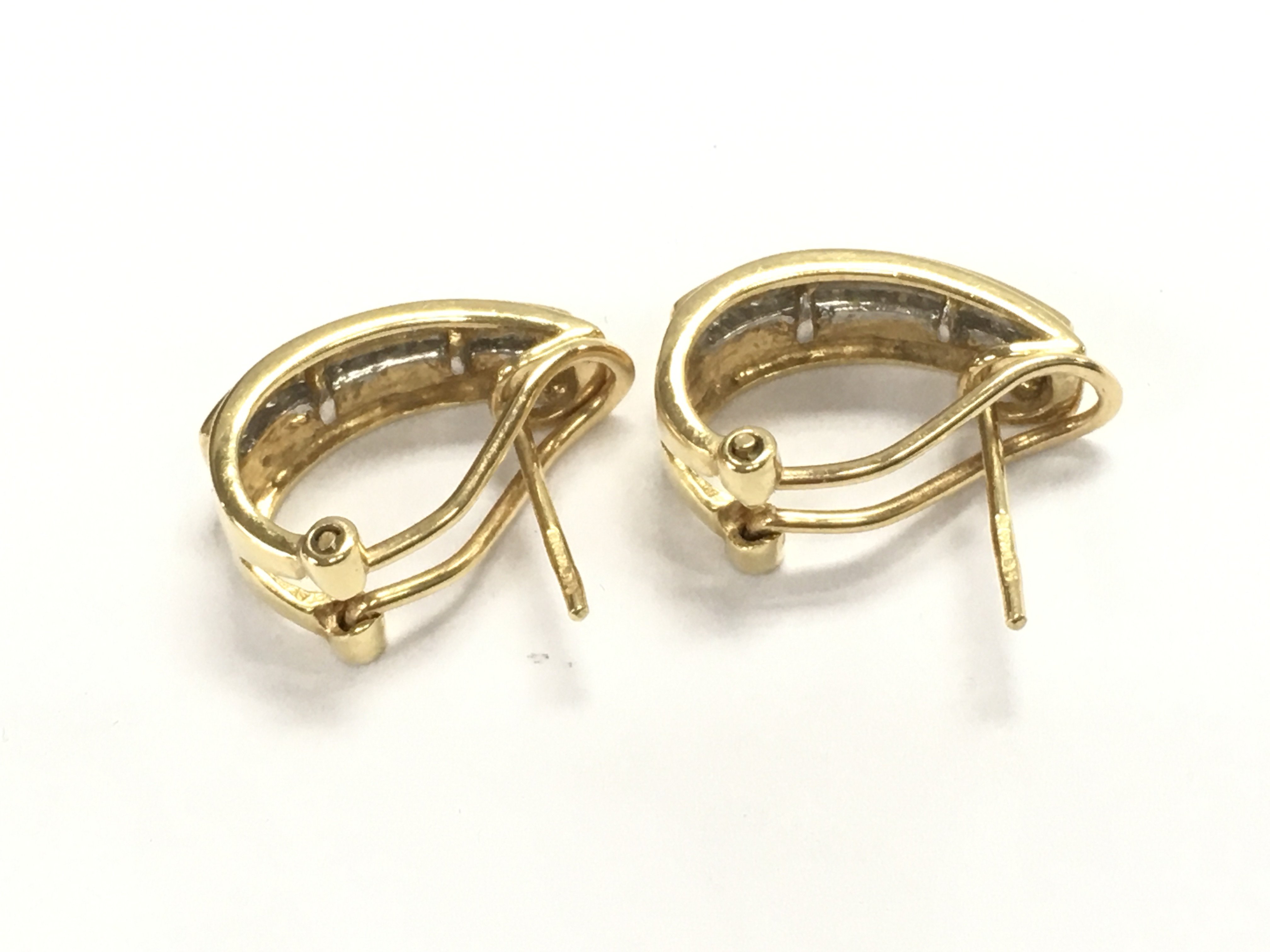 A pair of 18ct gold and diamond clip / stud earrings. 4.12g