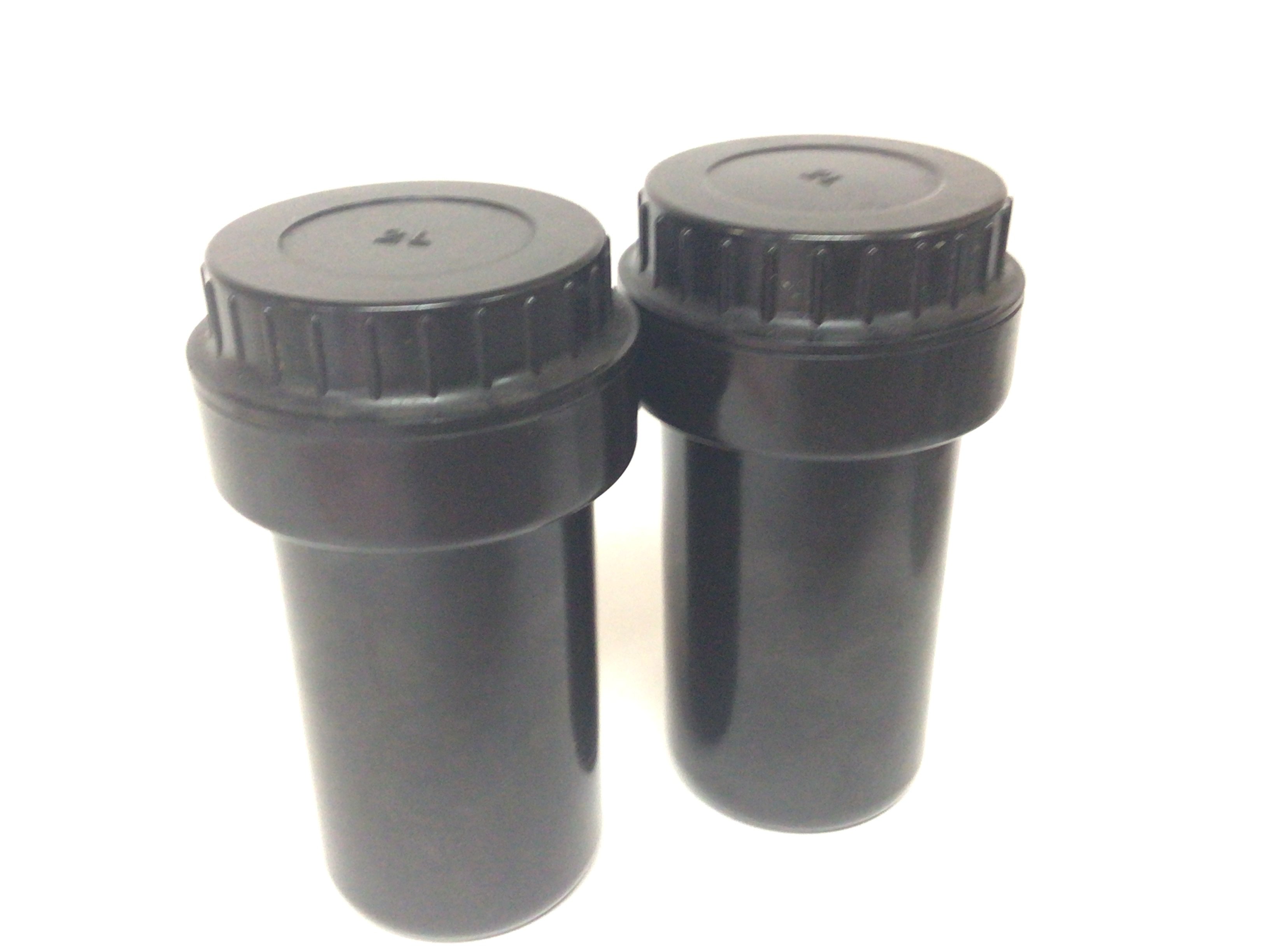 Two German II world war Military Bakelite fuse storage containers screw top and marked L2 with further marks including date 1942. Hight 13cm.- NO RESERVE