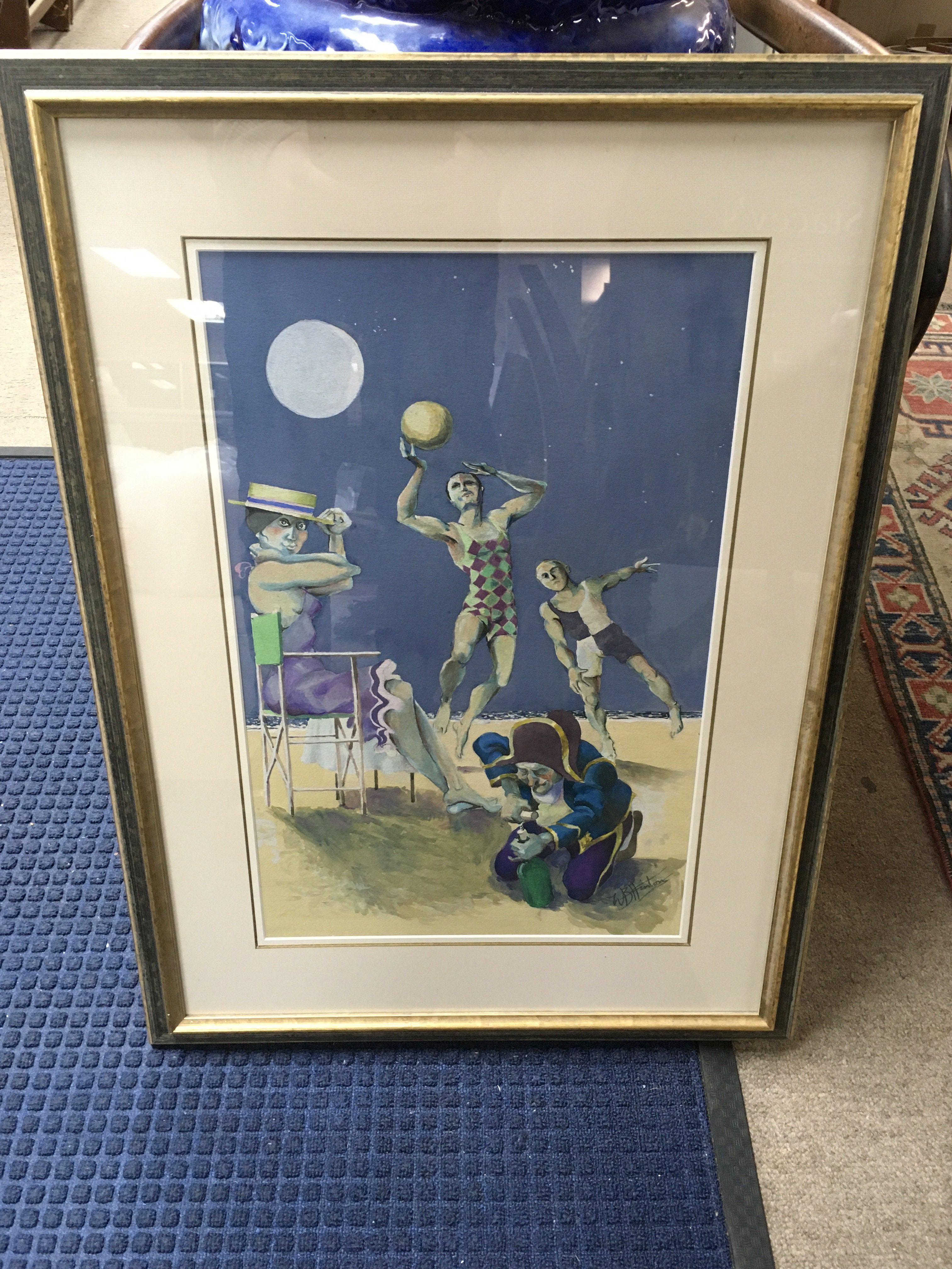 A framed W. Brian Hinton (1938-present) watercolour painting depicting a seaside scene . Frame Dimensions 54x75cm