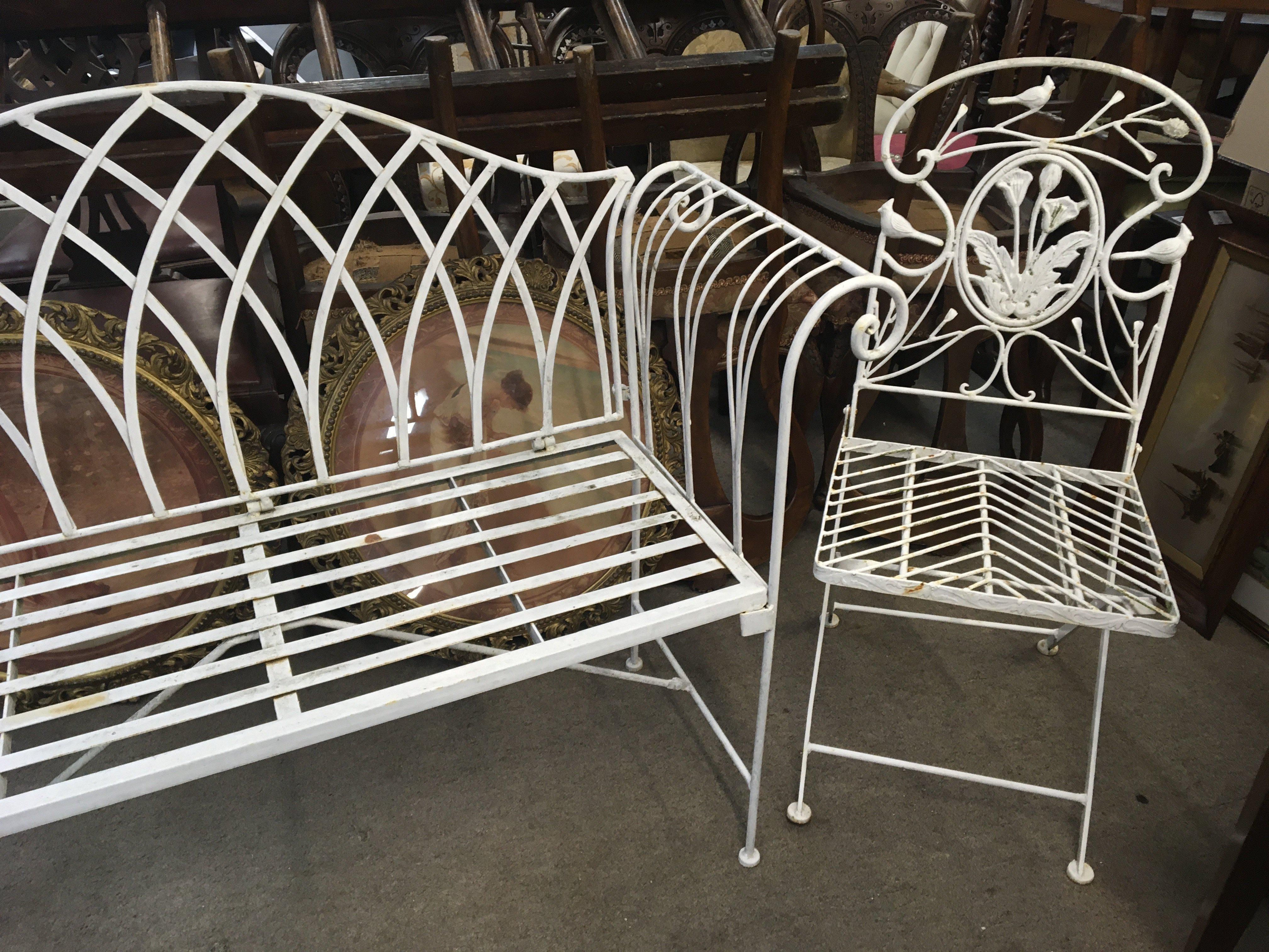 A Regency style wrought iron folding garden seat and one other folding garden seat (2)