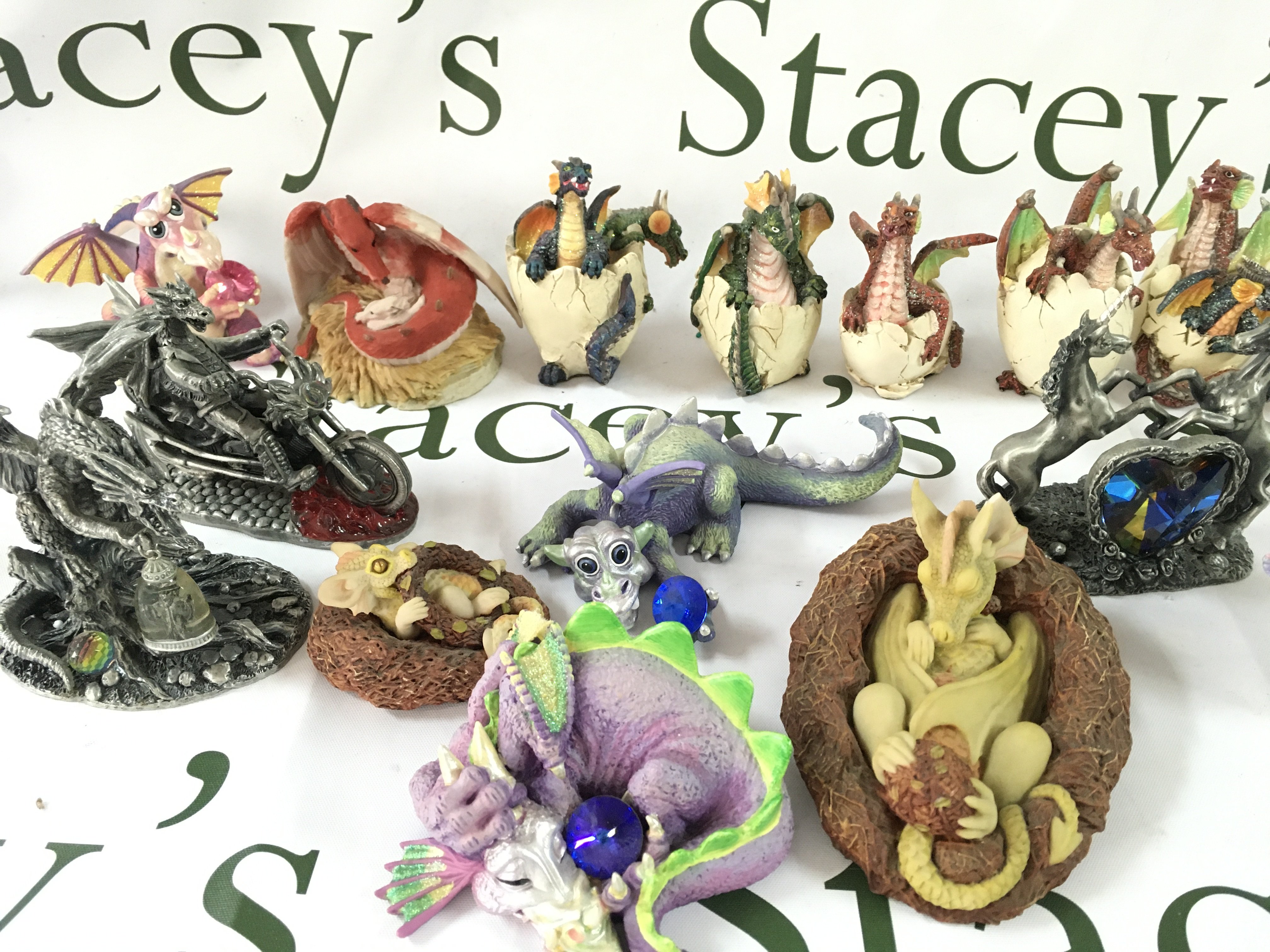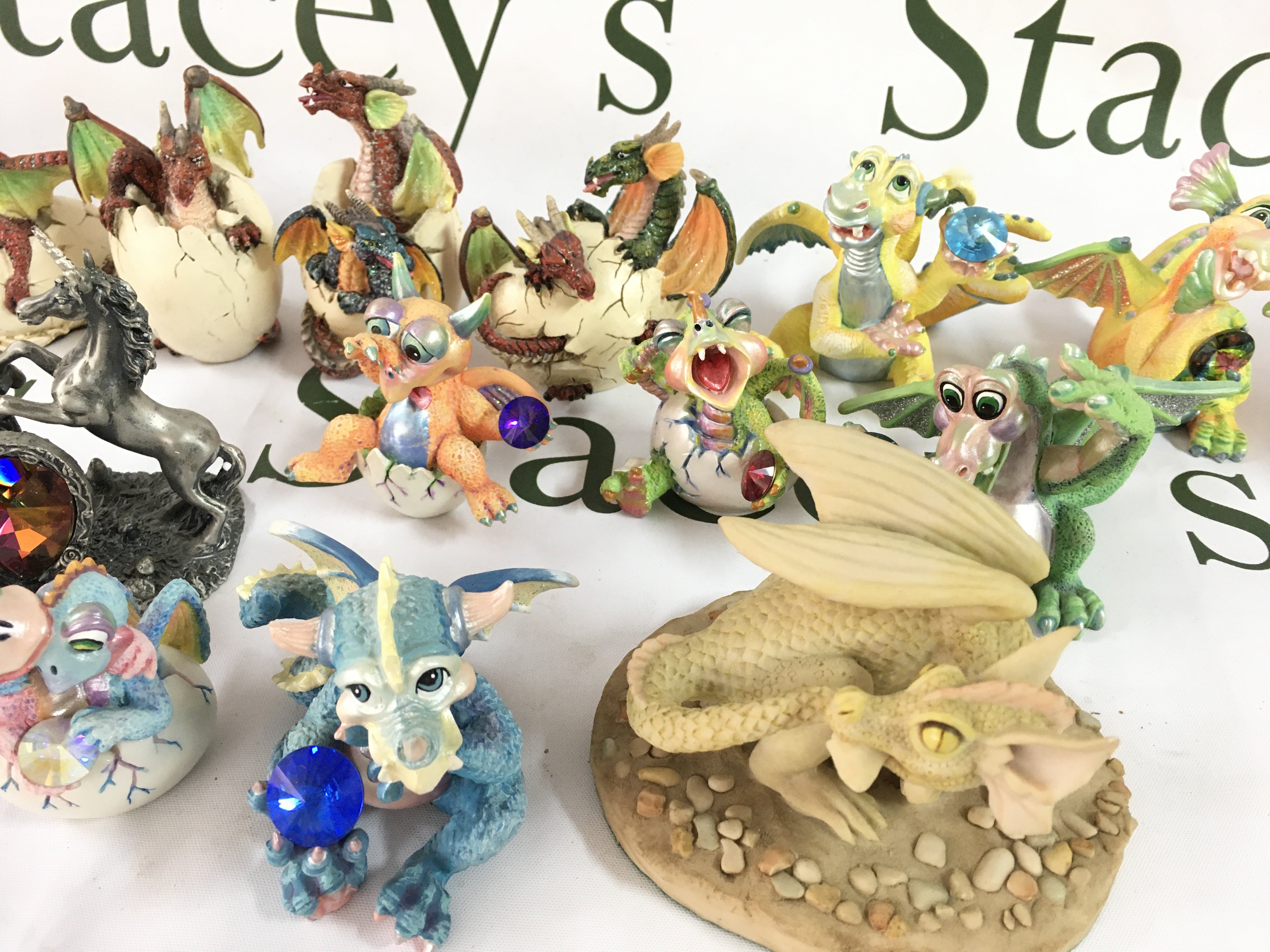 A Collection of dragon figures including Mood Dragons, Enchanted, Tudor Mint myth and magic etc. boxes included. this lot cannot be posted