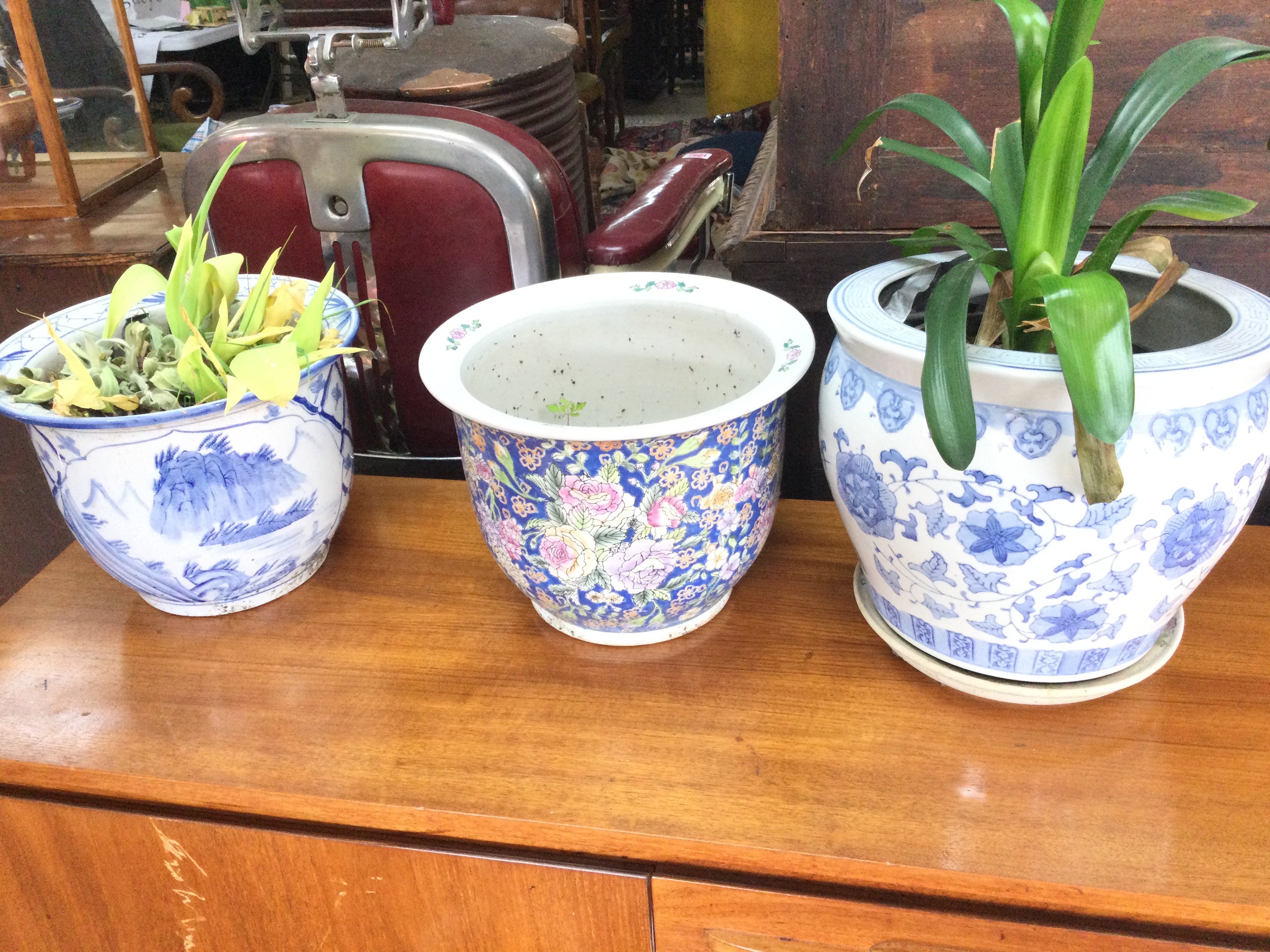 3 X 20th Century Chinese Porcelain Flower Pots..