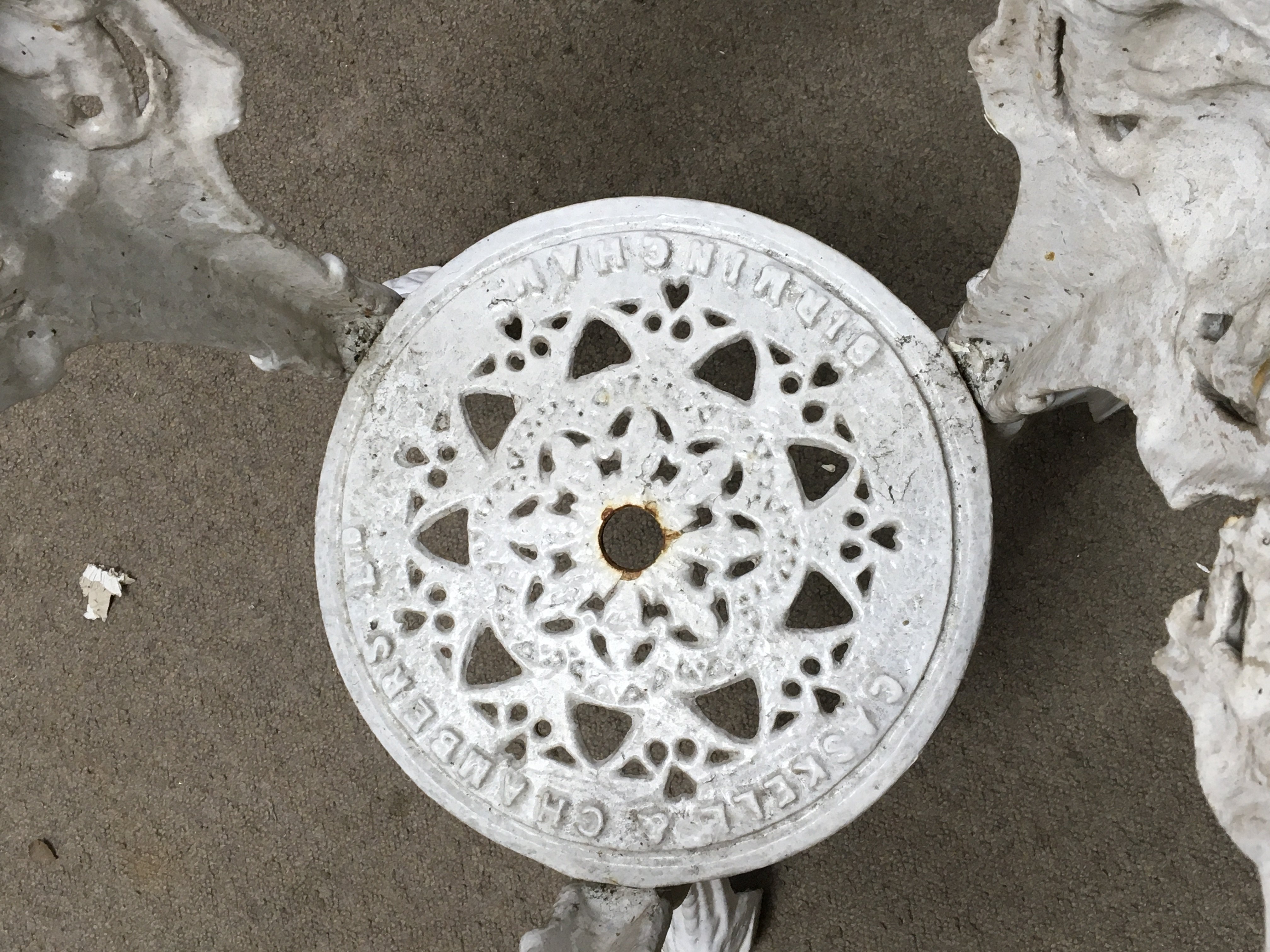 A Cast iron Victorian pub table base maker Cassell & Chambers.