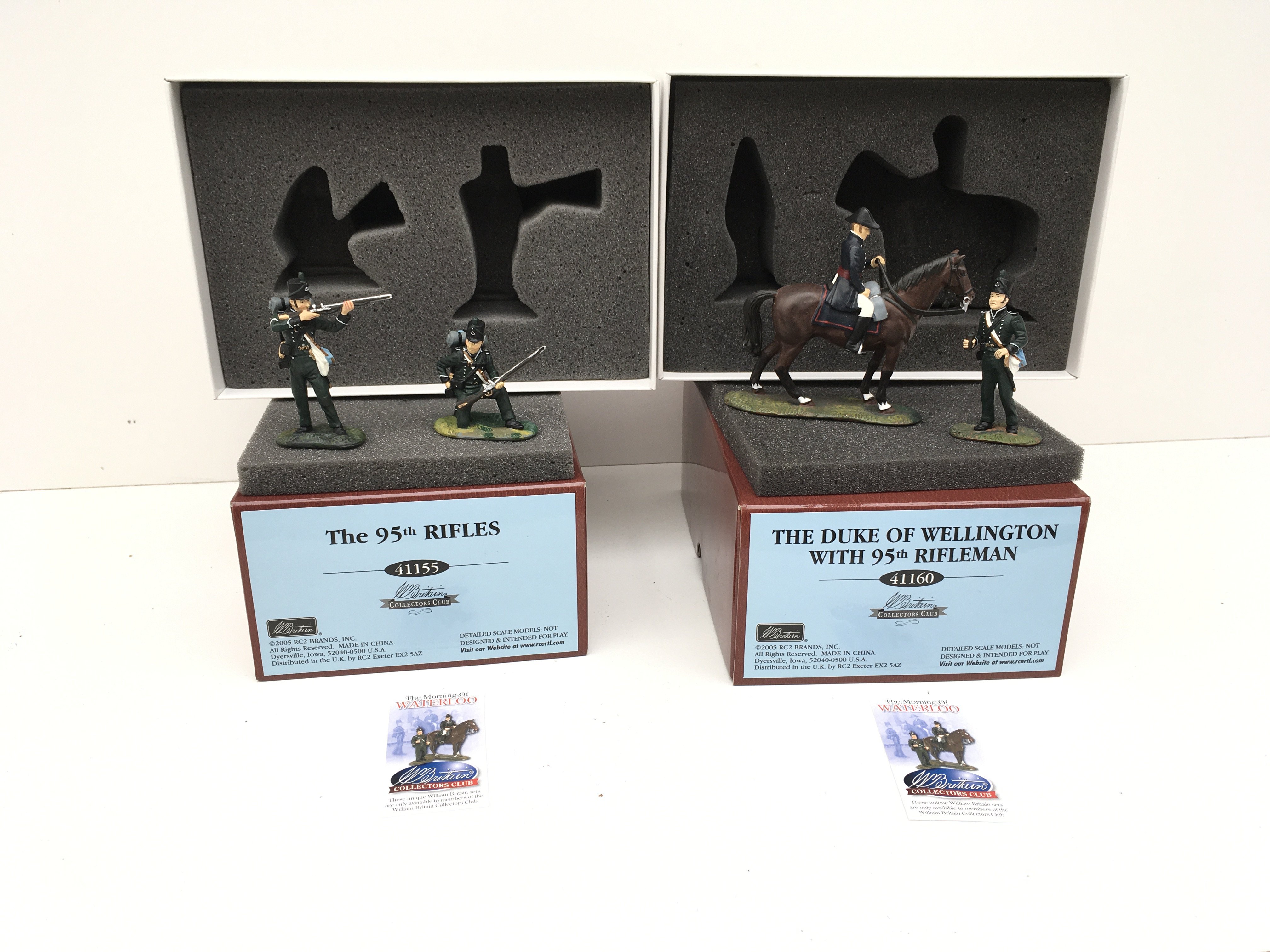 2x boxed Britain Minature military model sets featuring 41155 The 95th rifles and 41160 The Duke of Wellington with 95th rifleman. No reserve.