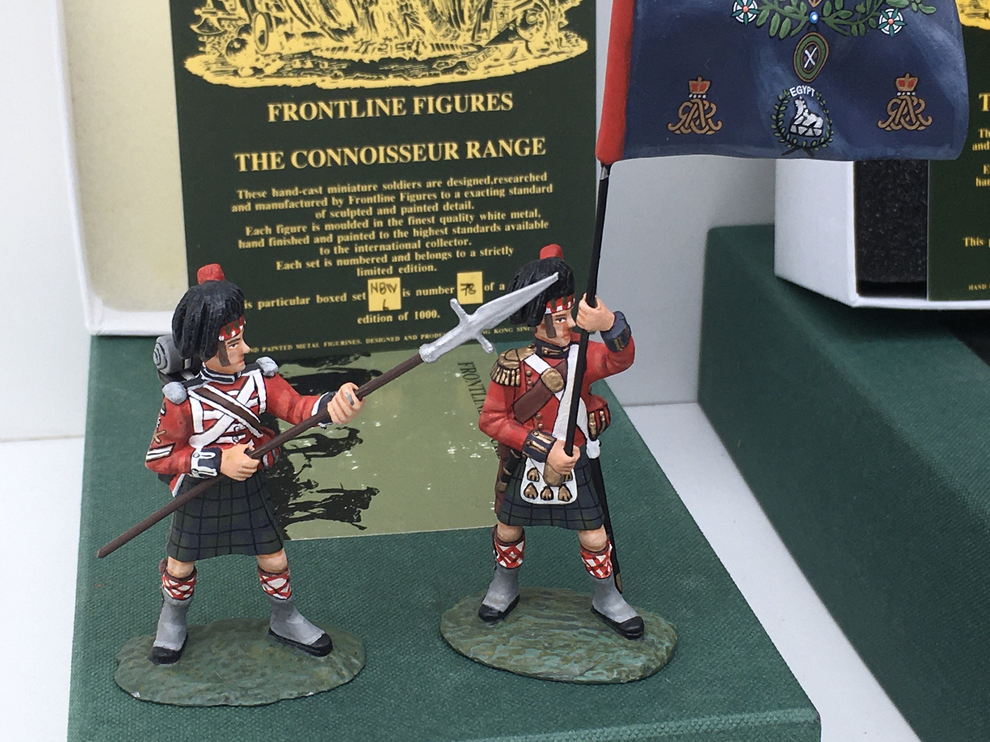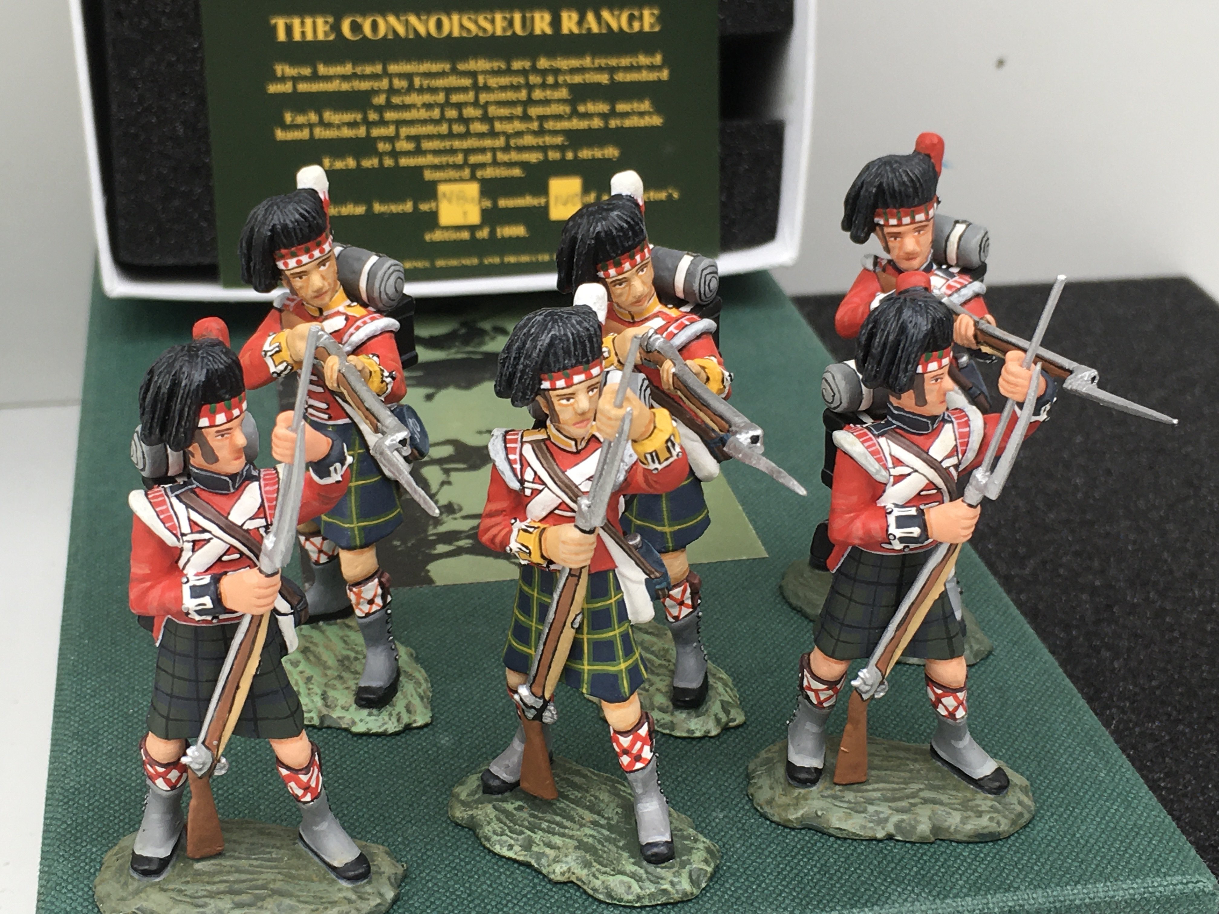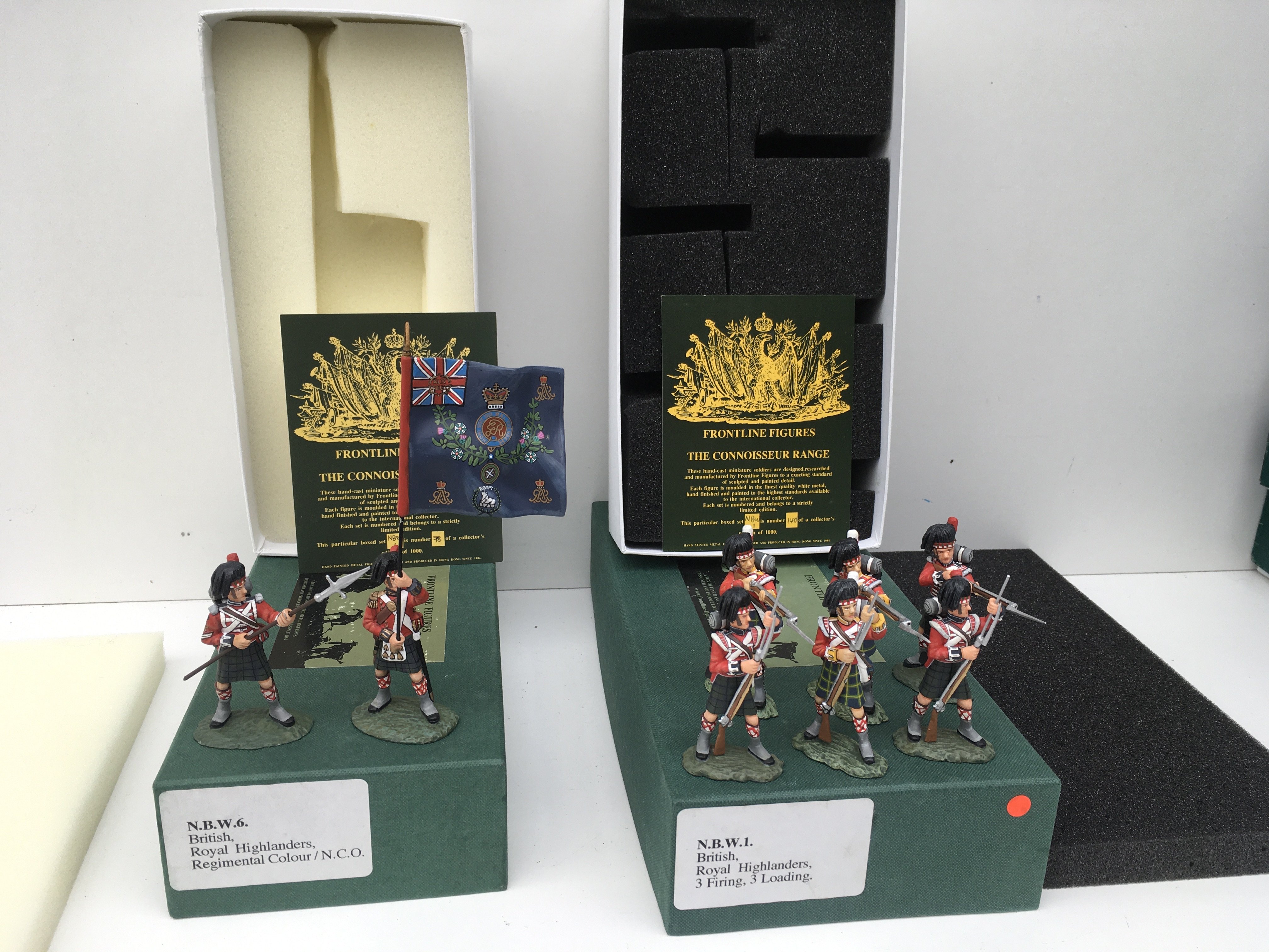 2x boxed sets of Minature military models by Frontline Figures featuring NWB6 Royal Highlanders with regimental colour and 3 firing with 3 loading. Limited editions with certificates. No reserve
