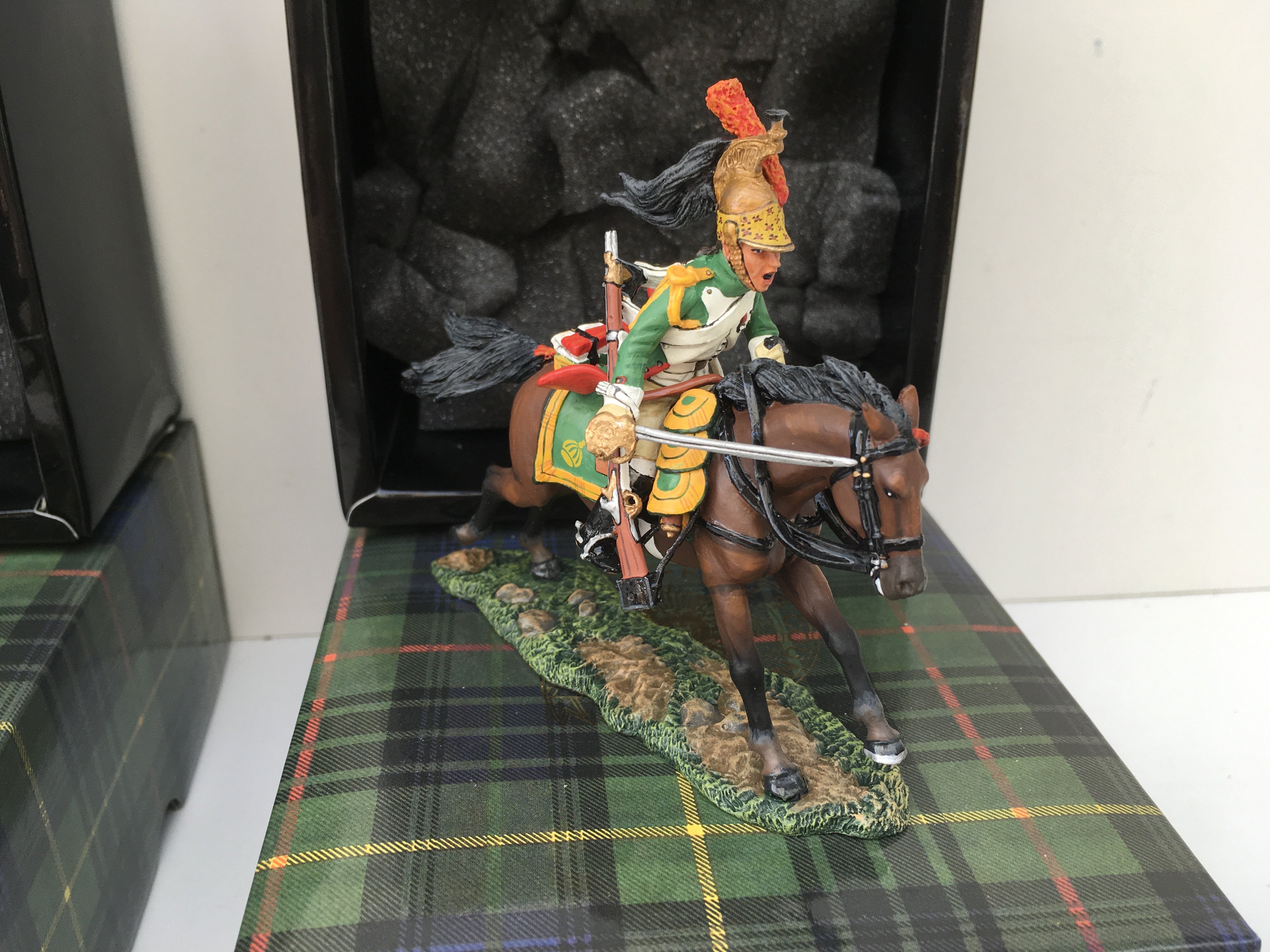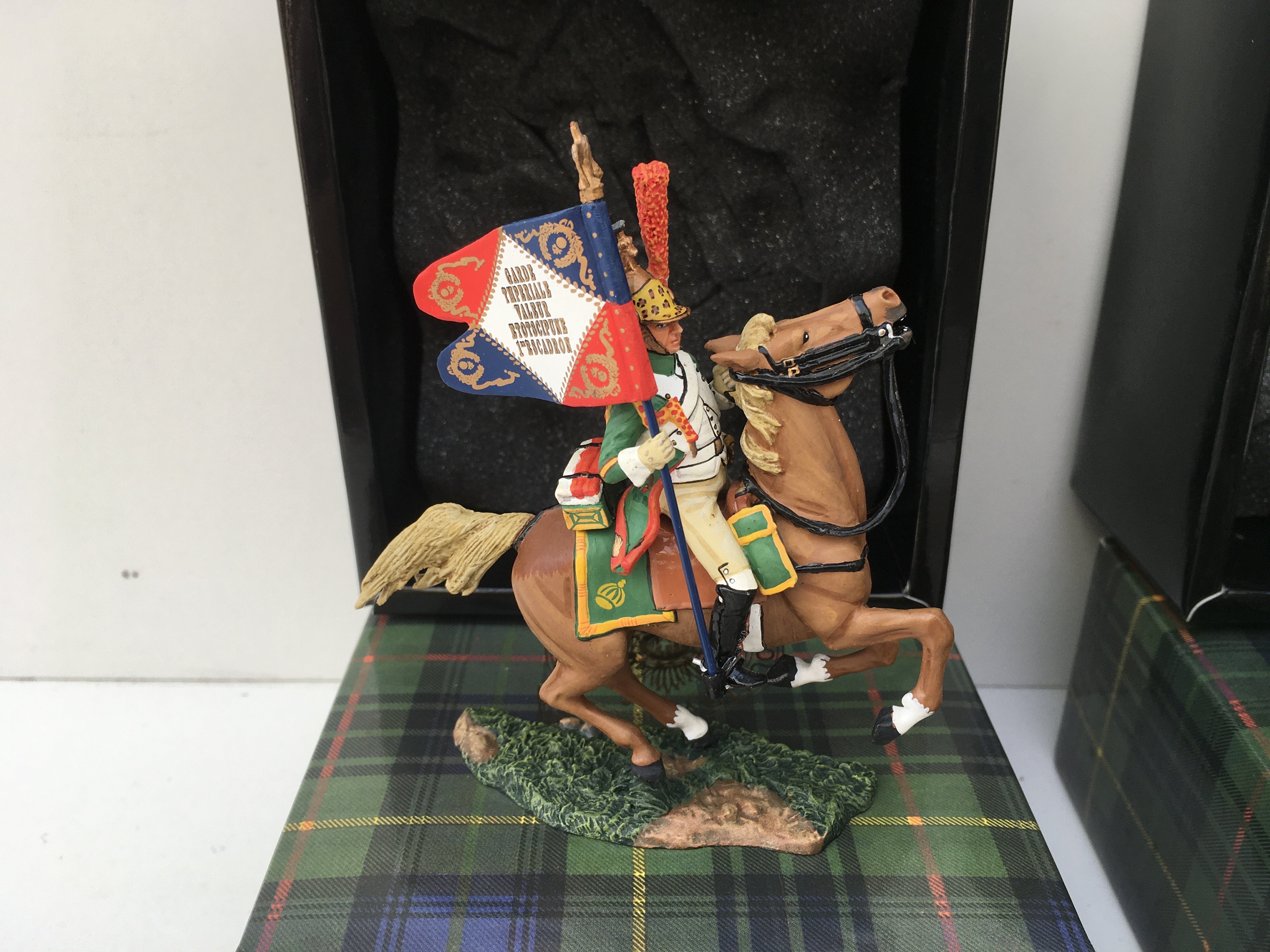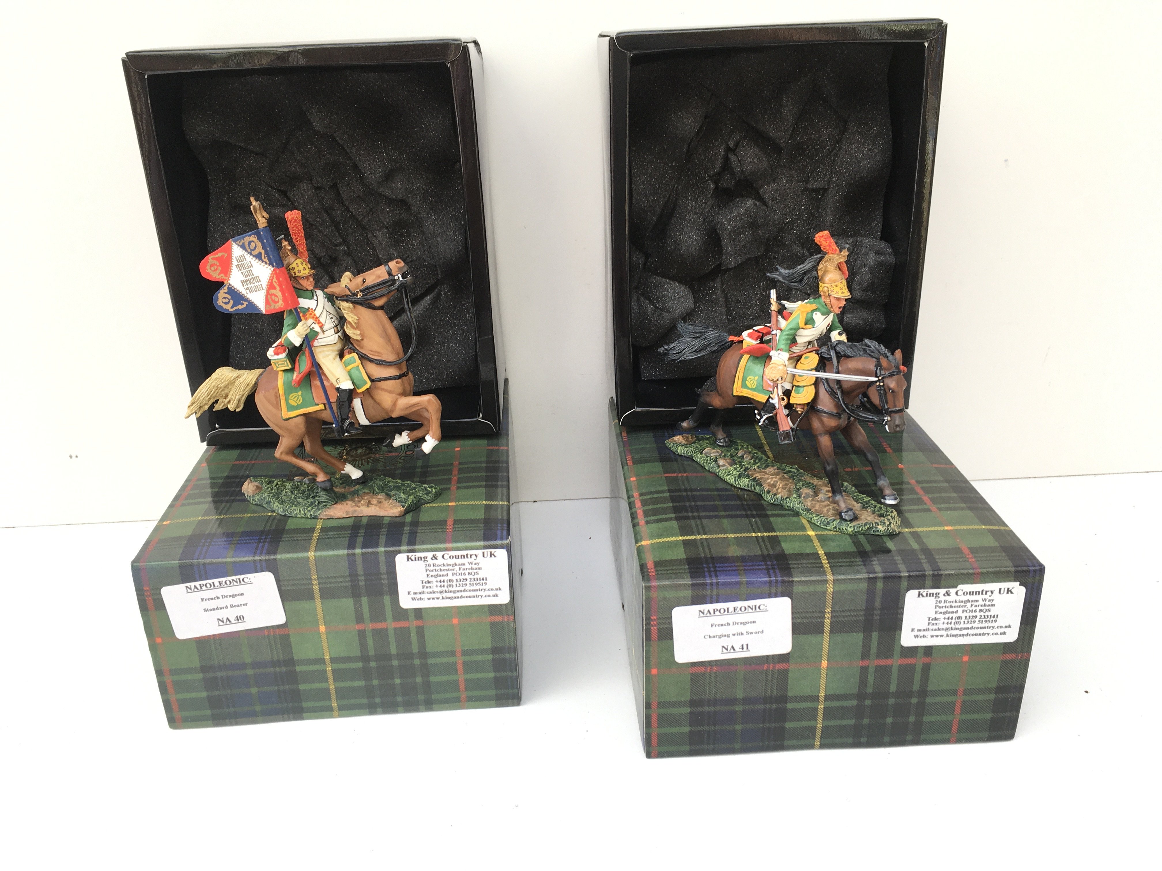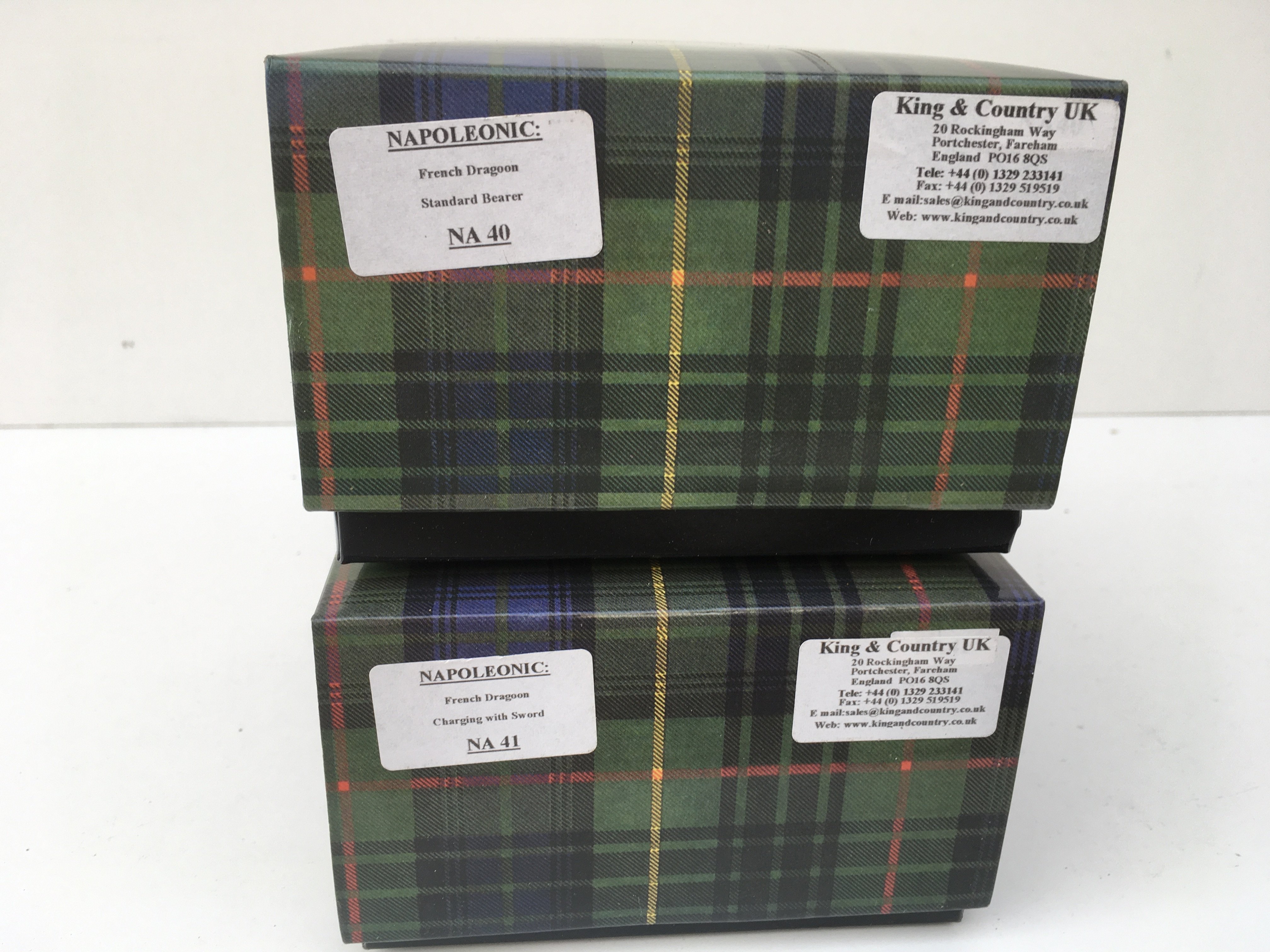 2x boxed King and Country Napoleonic Minature Military models featuring NA40 French Dragoon Standard Bearer and NA41 French Dragoon Charging with Sword. No reserve.