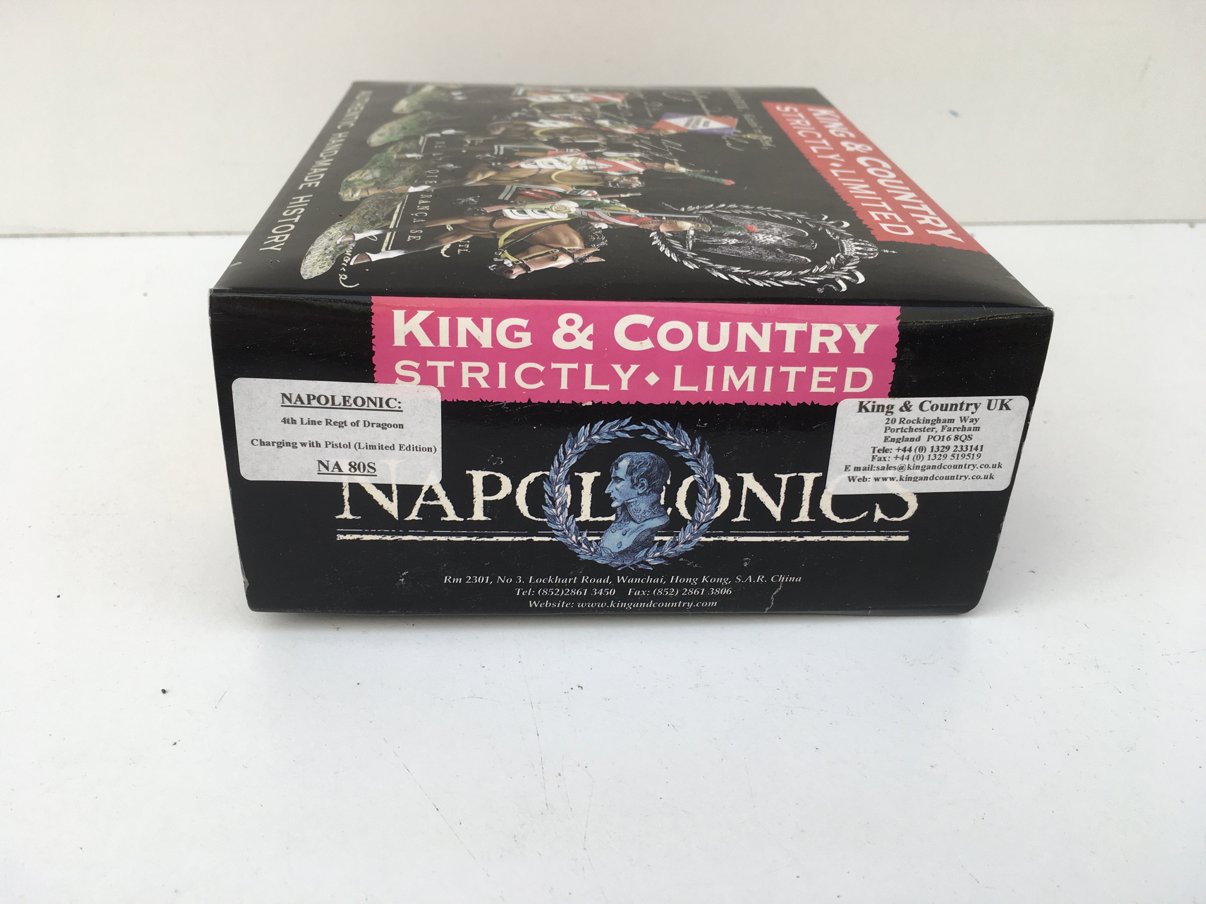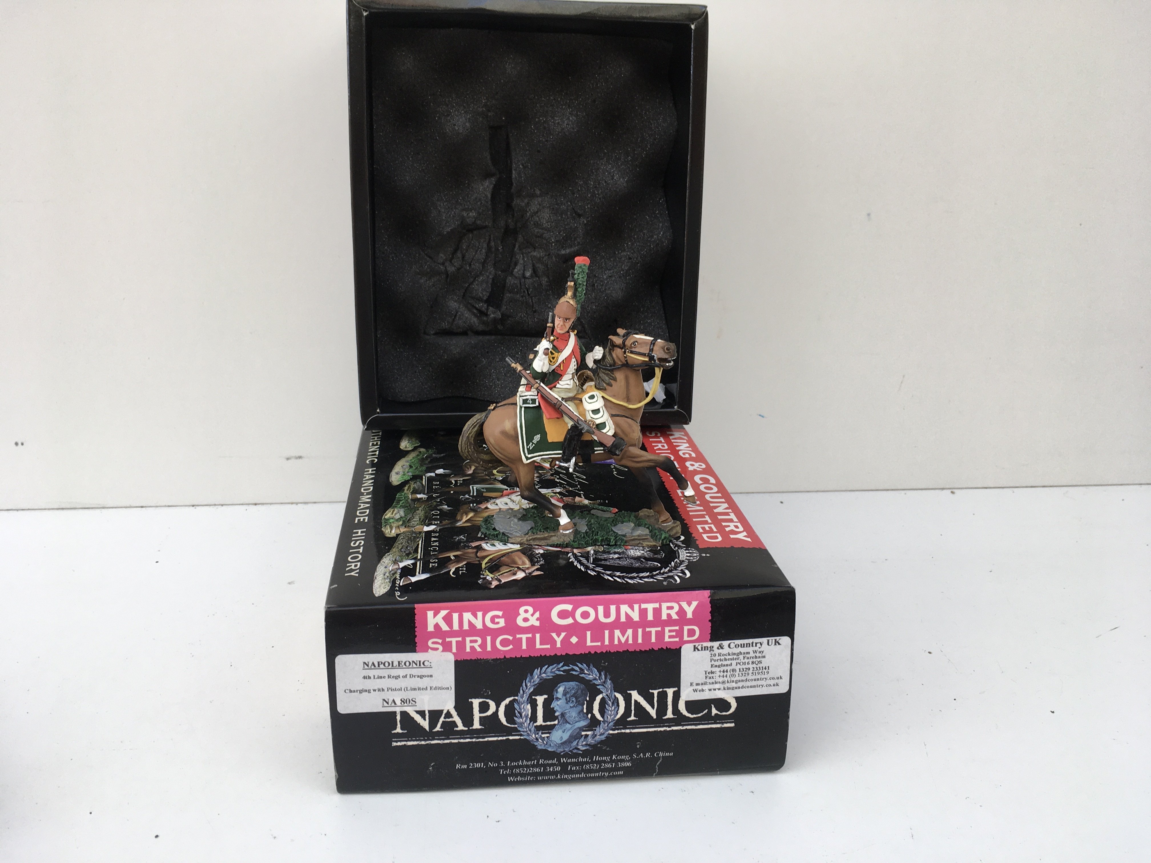 An extremely rare King and Country Minature military model in the Napoleonic series featuring NA80S 4th line Regt of Dragoon. Charging with pistol. Strictly limited piece. No reserve