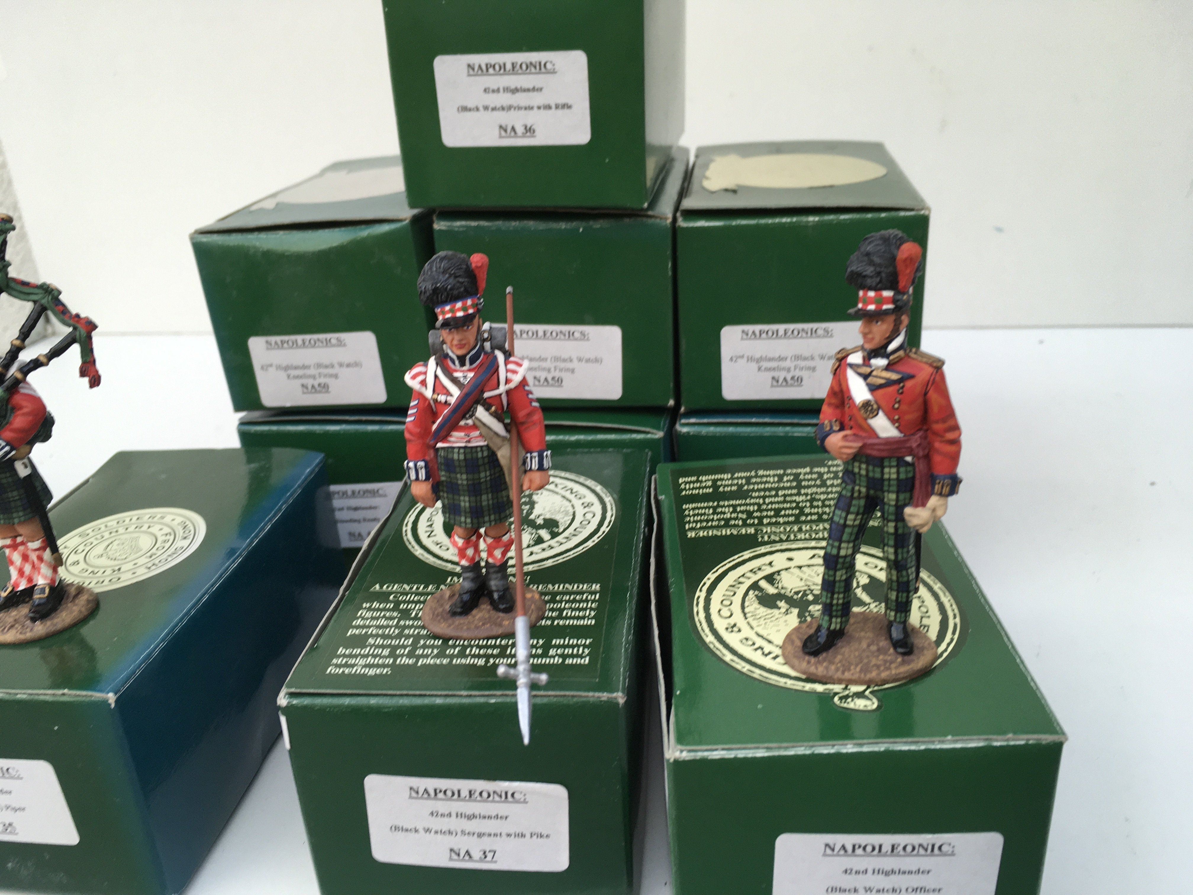 A collection of 10x boxed King and Country Napoleonic Minature Military models featuring the 42nd Highlanders including NA35 to NA38 and NA49 to NA51 (4 off NA50). No reserve