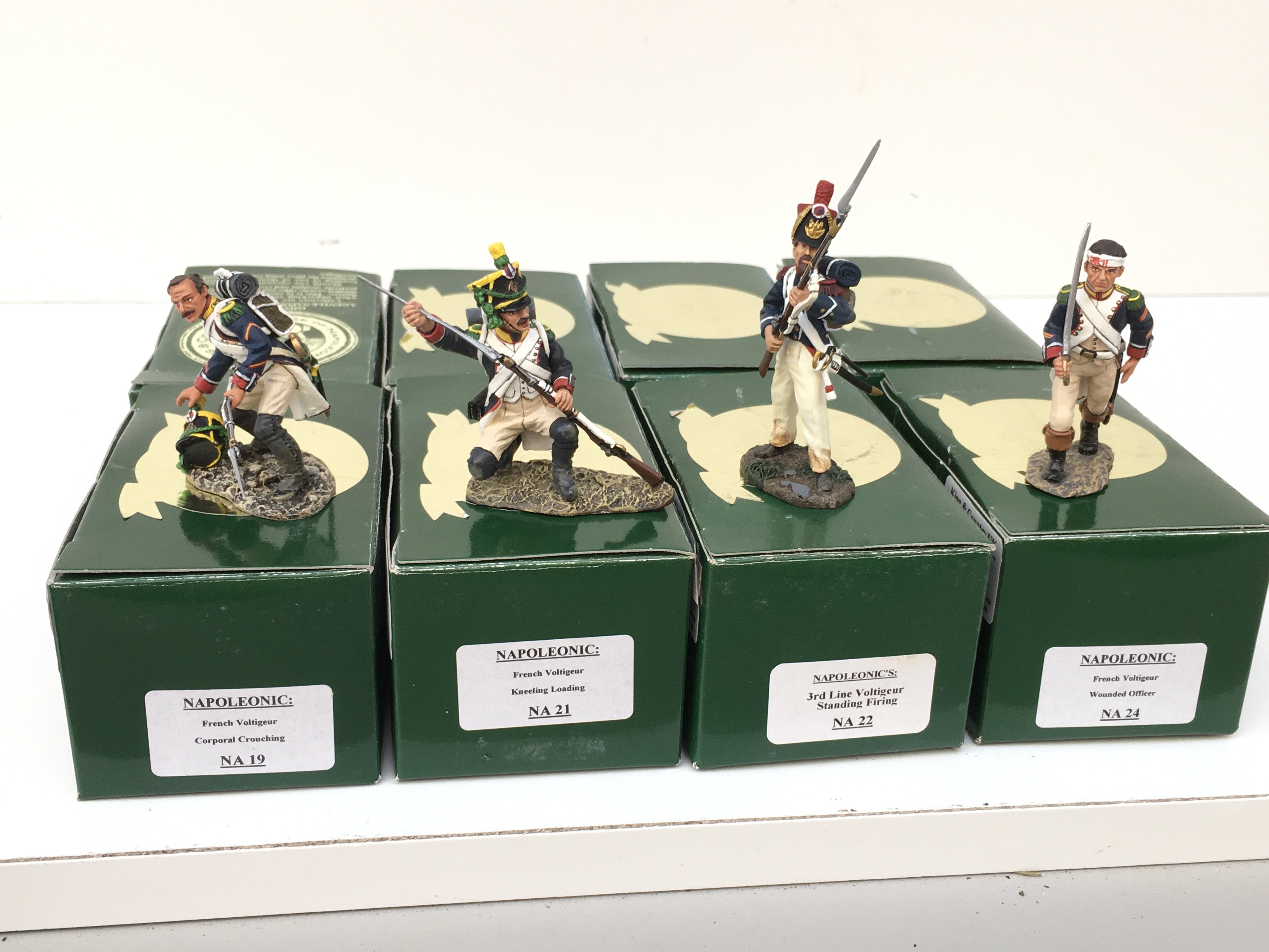A collection of 8 boxed King and Country Napoleonic Minature Military models featuring French troops including Na13 to NA17 inclusive..NA19..NA21..NA22..NA24. No reserve.