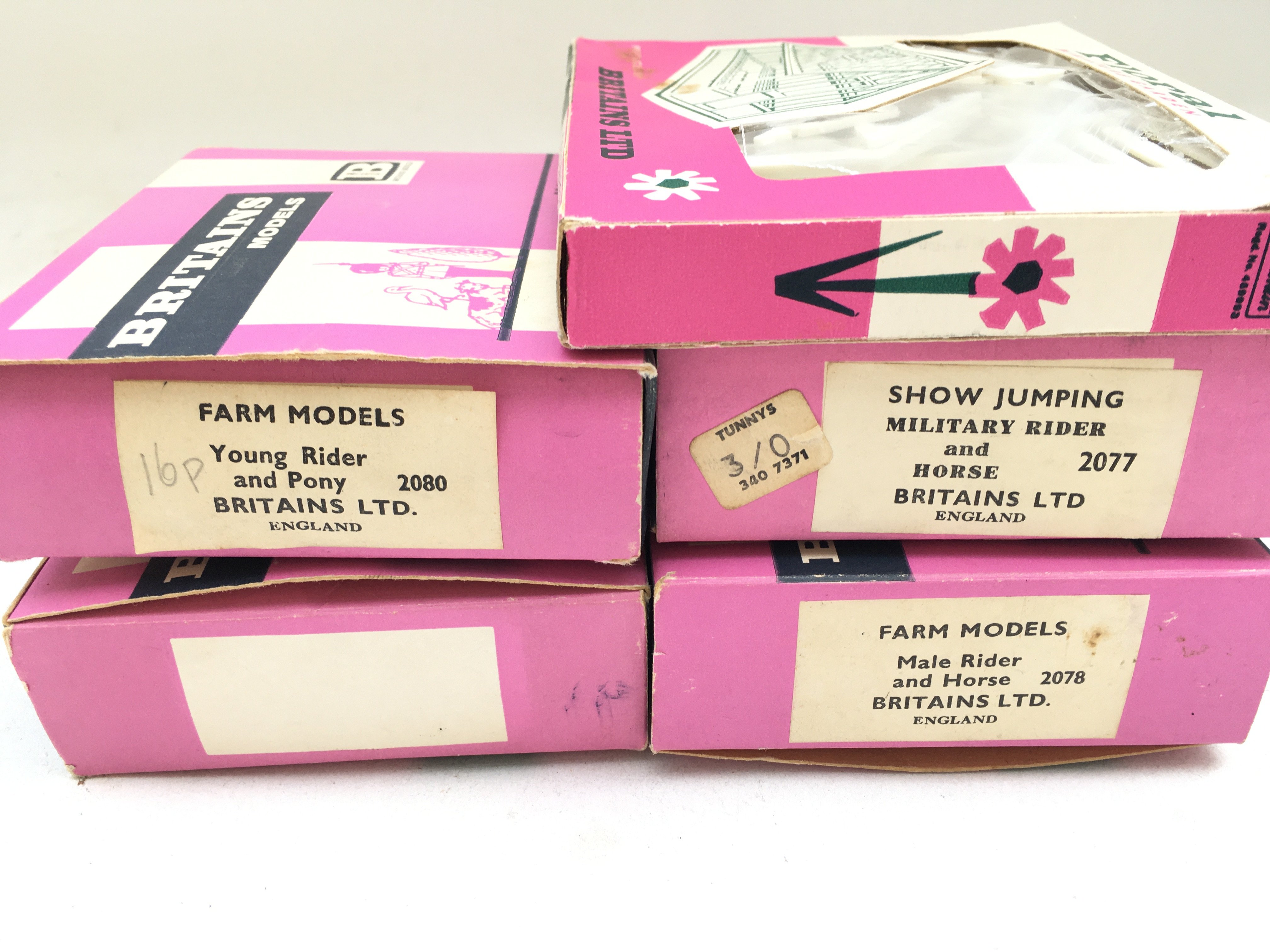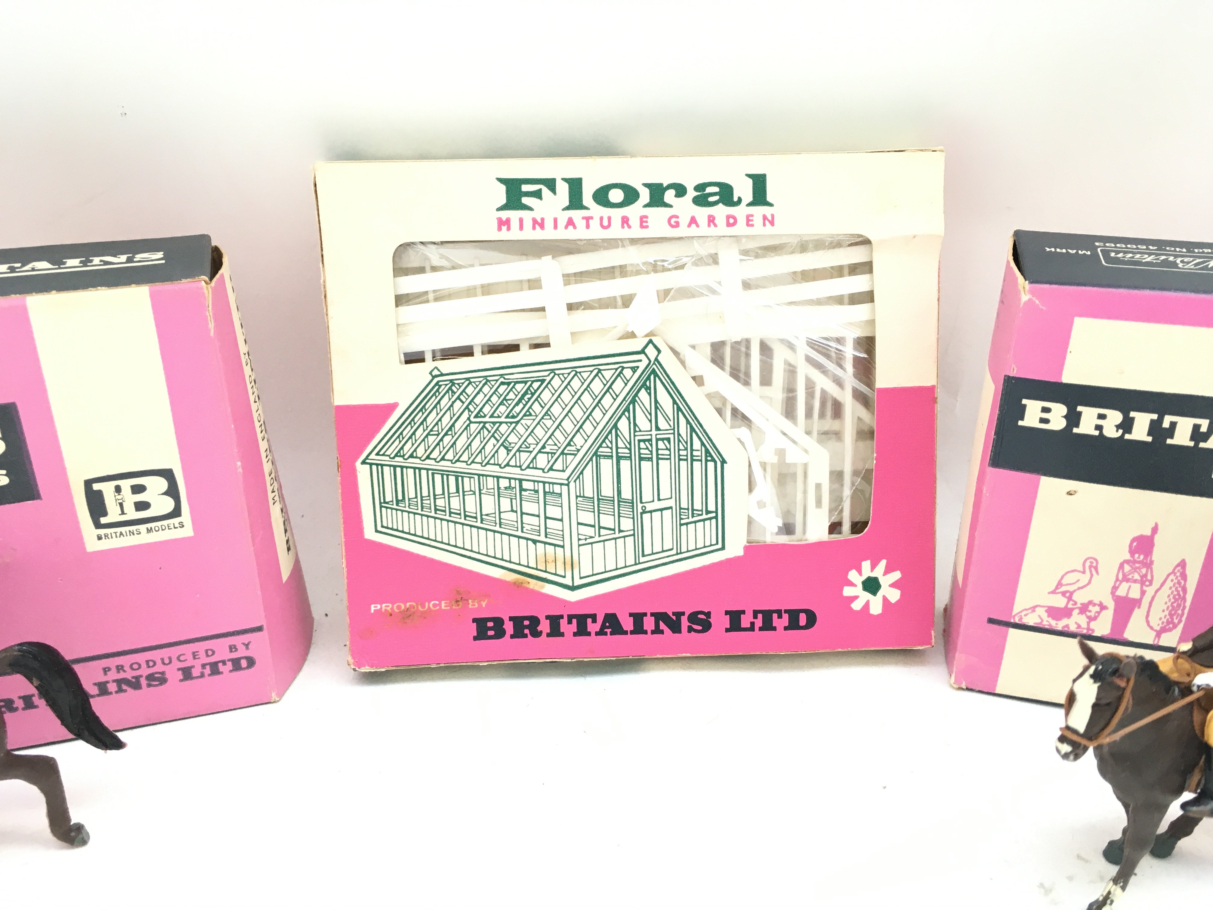 A Collection of 5 Boxed Britains. 4 Horse Riders And A Miniature Garden.