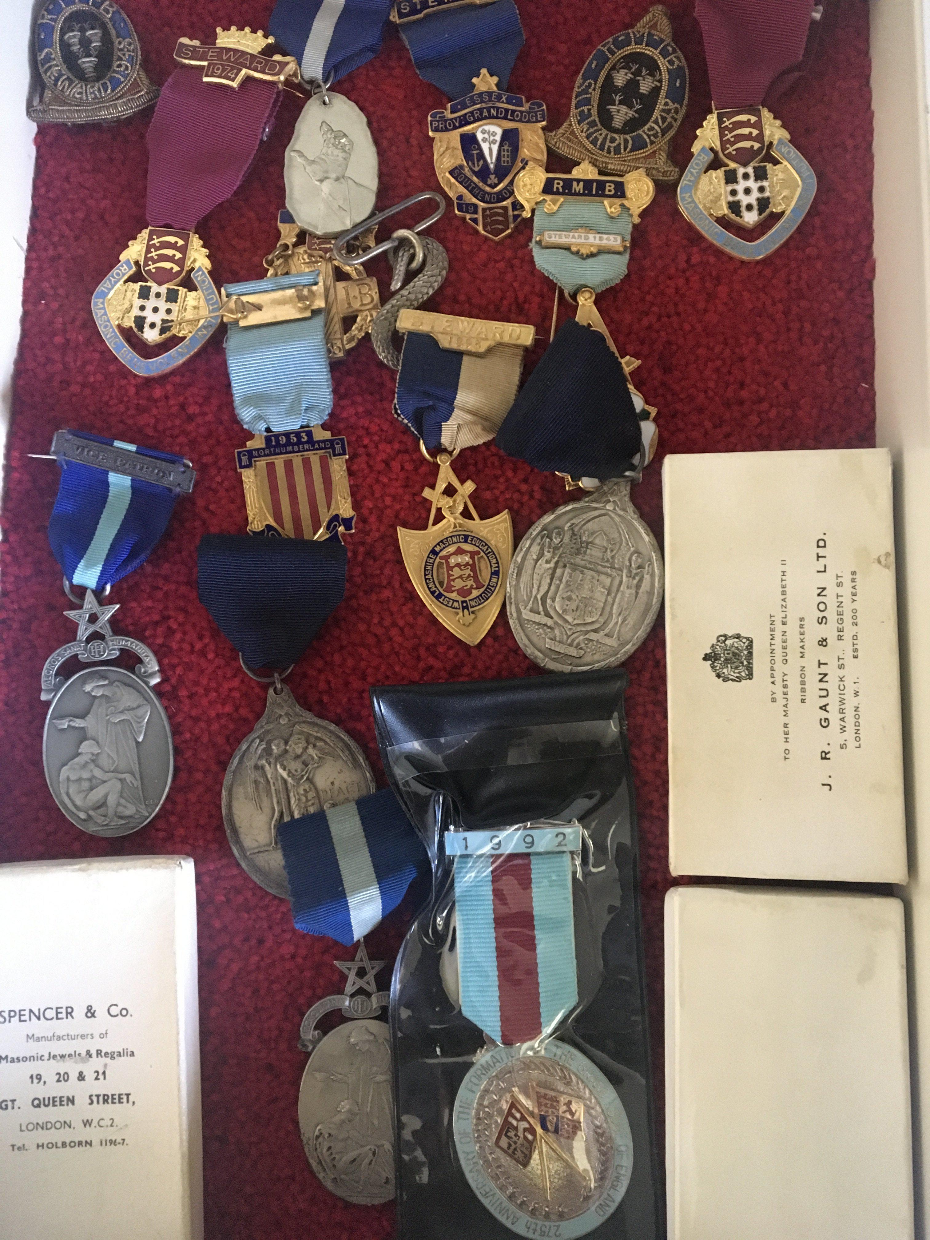 A collection of Masonic regalia gilt metal and enamel Jewels.