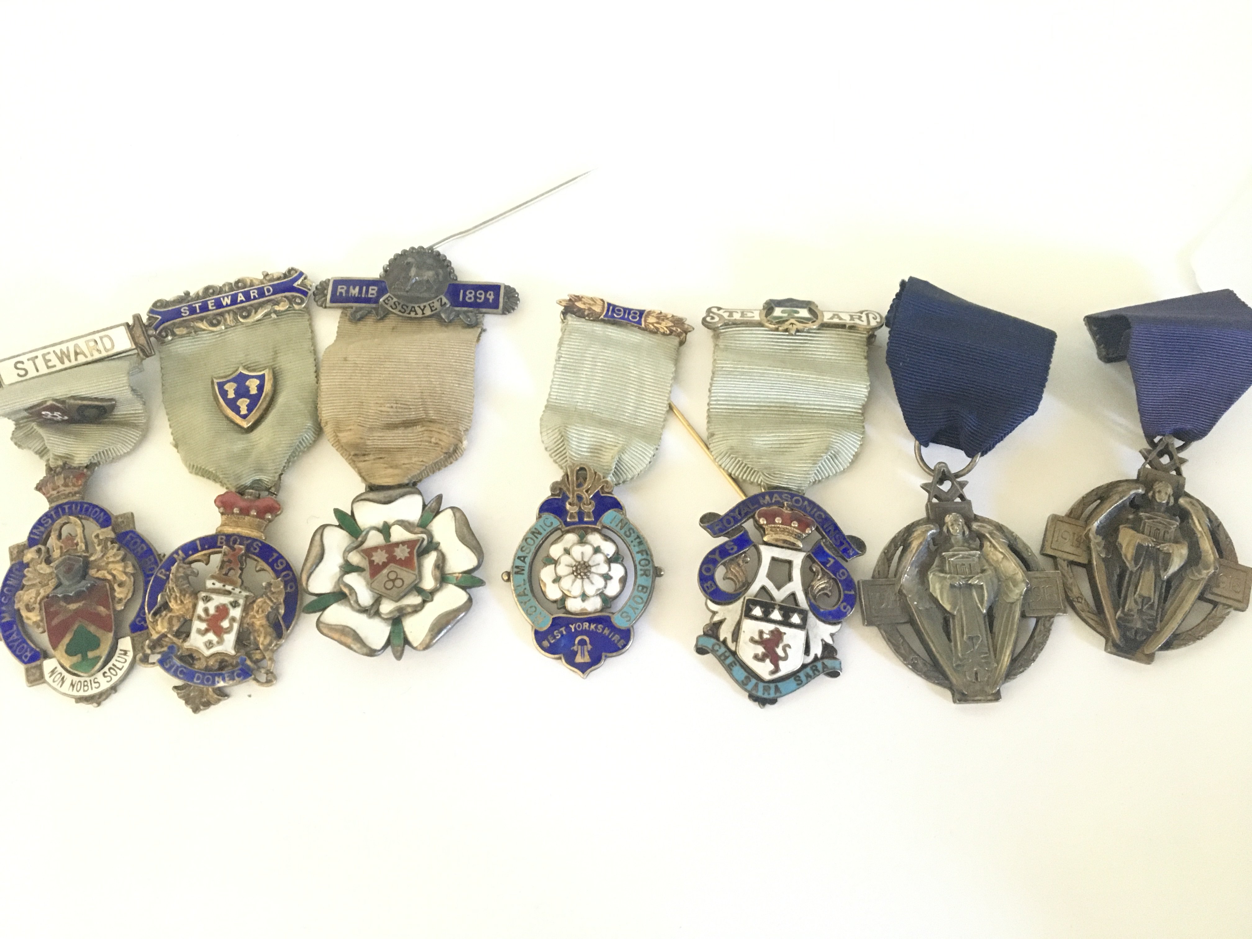 A collection of Masonic silver and enamel Jewels steward Jewels 1918 onwards (7)