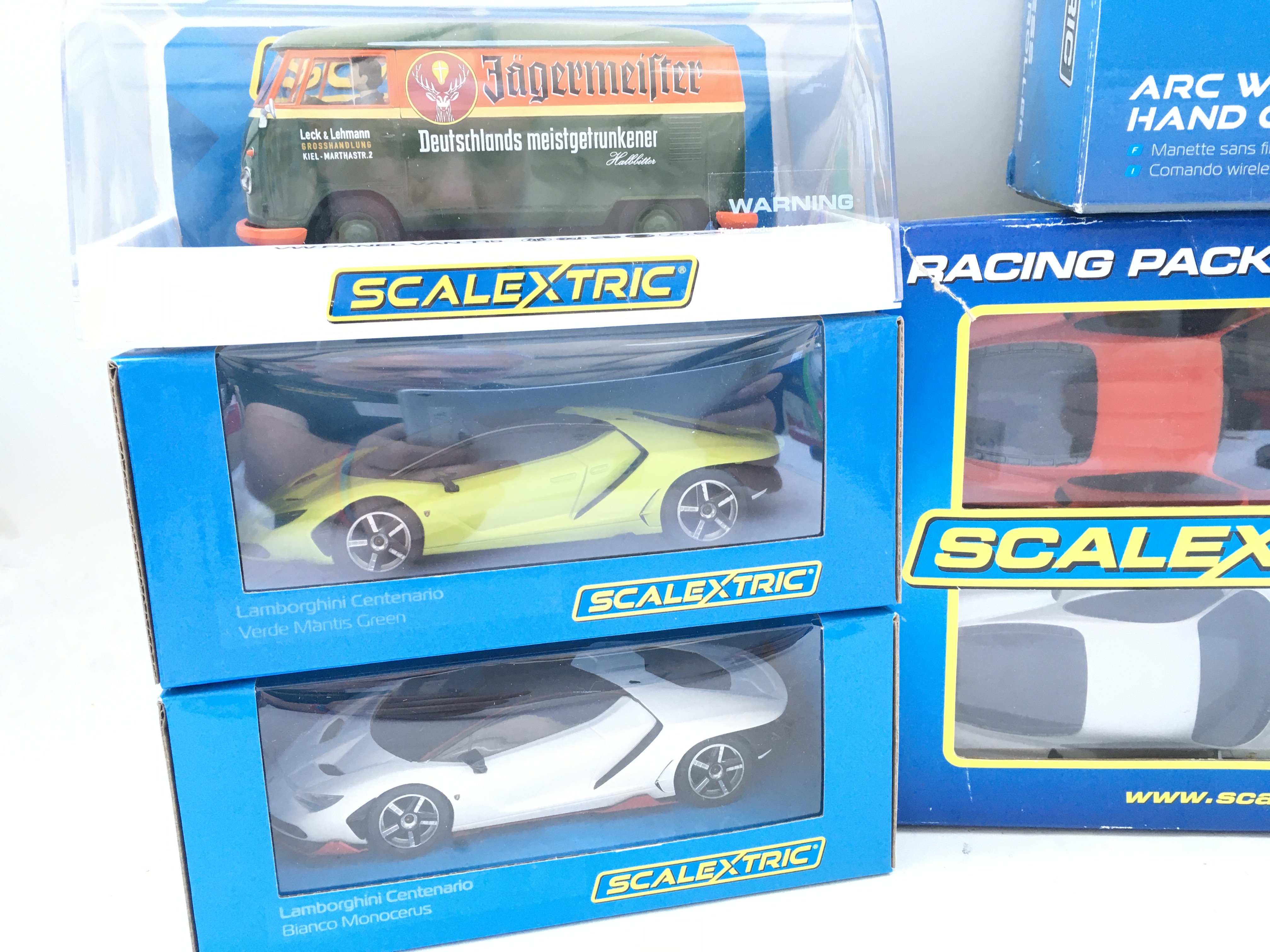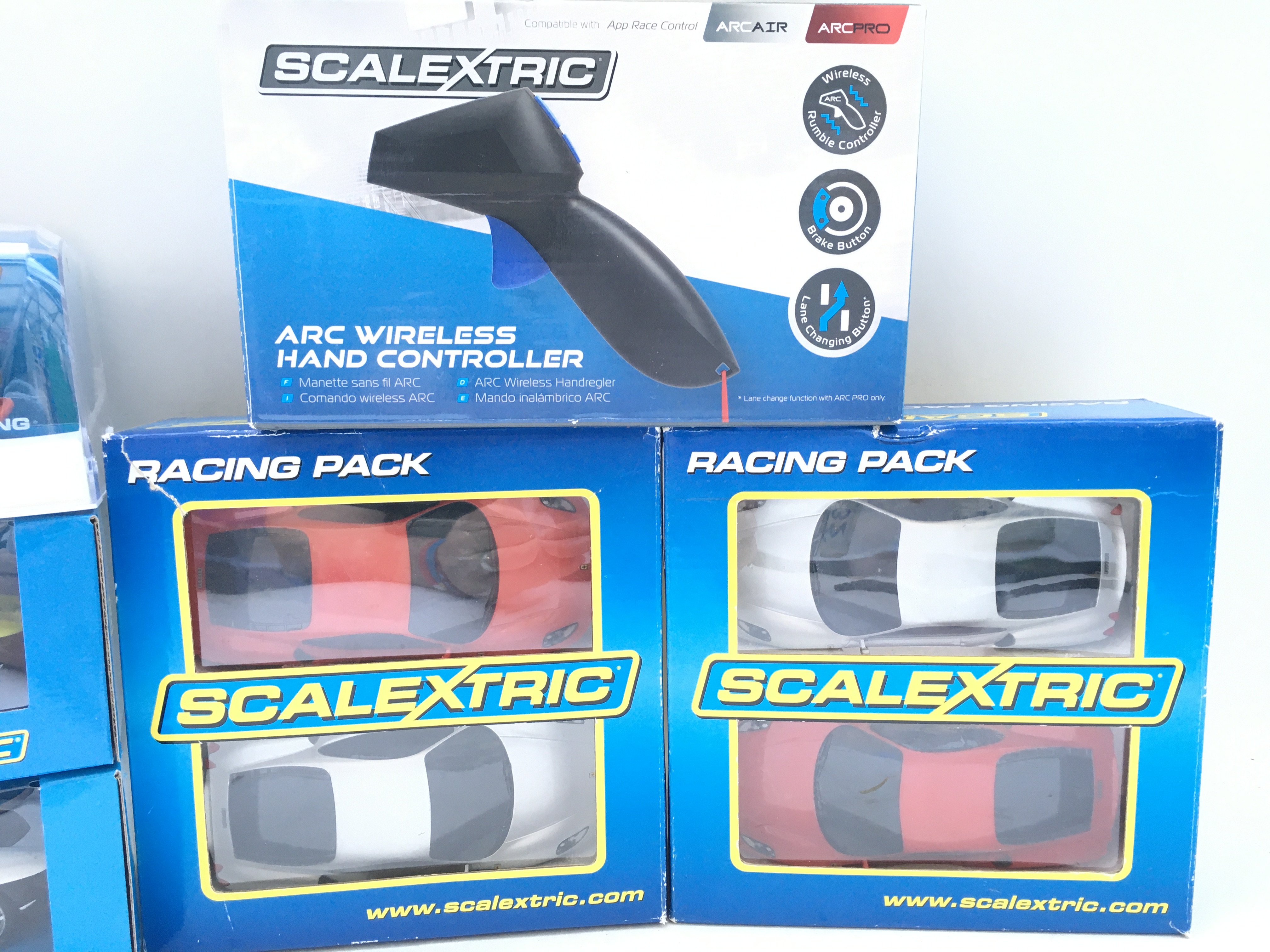 7 Boxed Scalextric Cars And A Boxed Hand Controller.