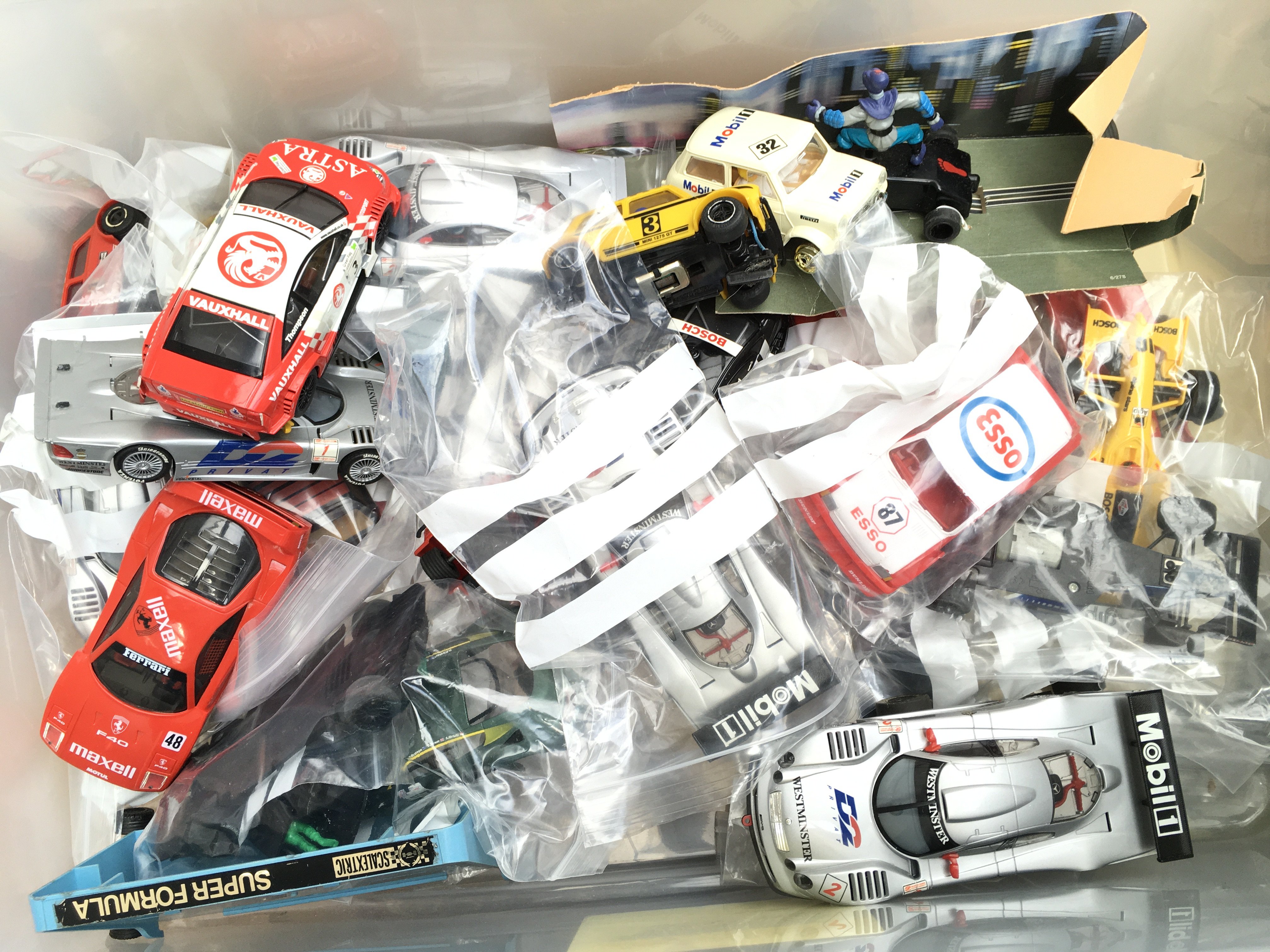 A Box Containing A Collection of Scalextric Cars. Ideal For Spares And Repairs.