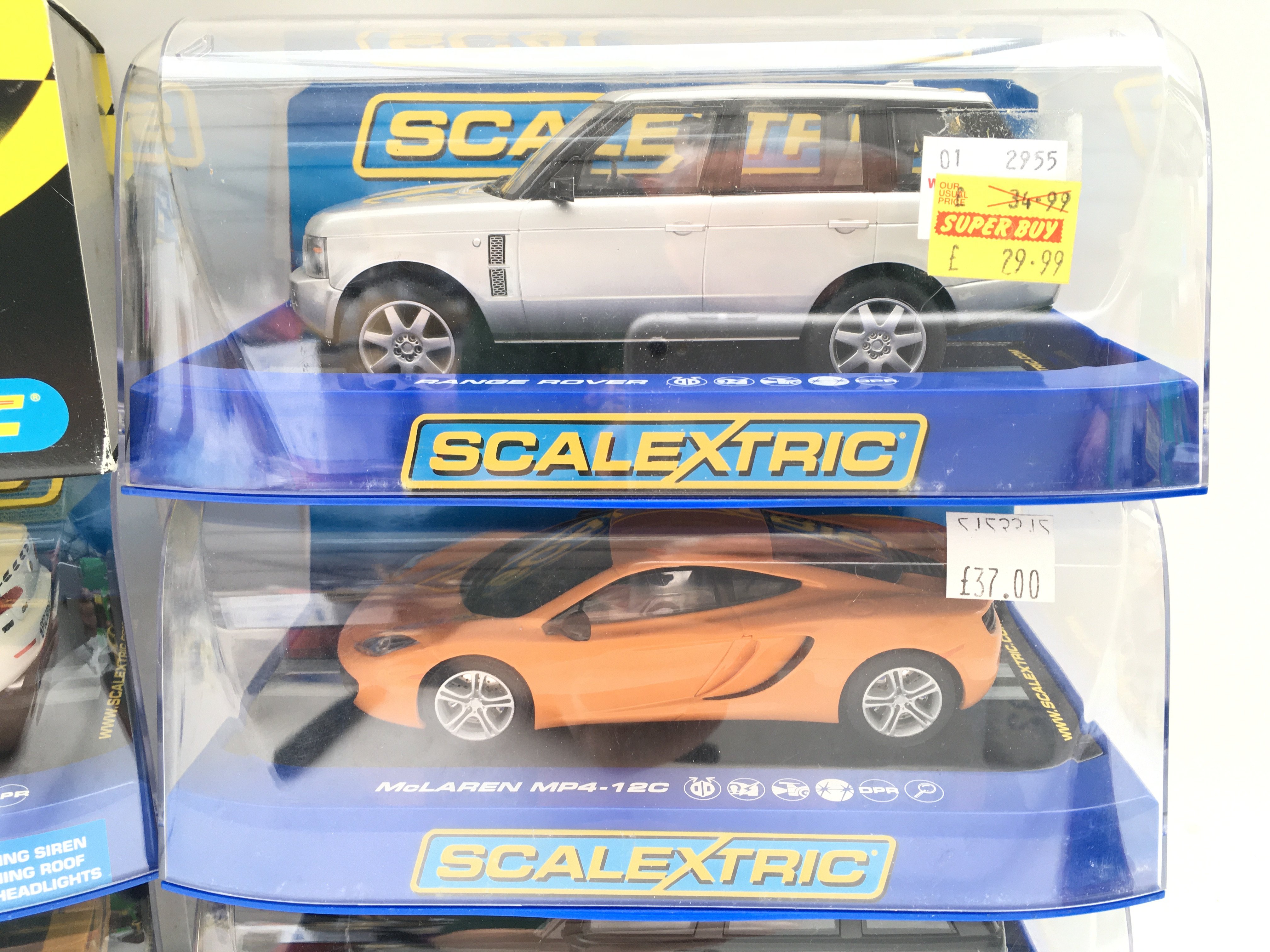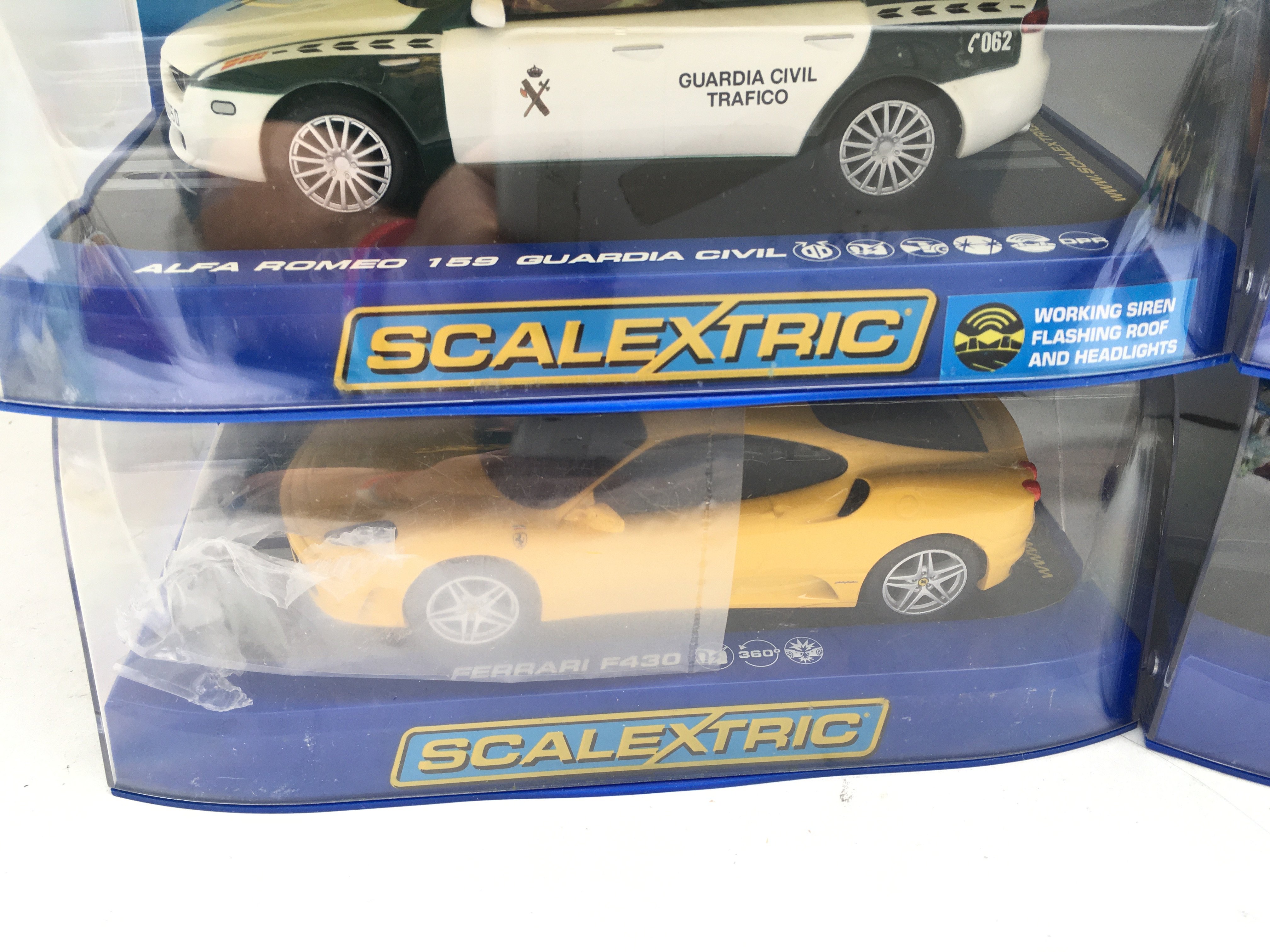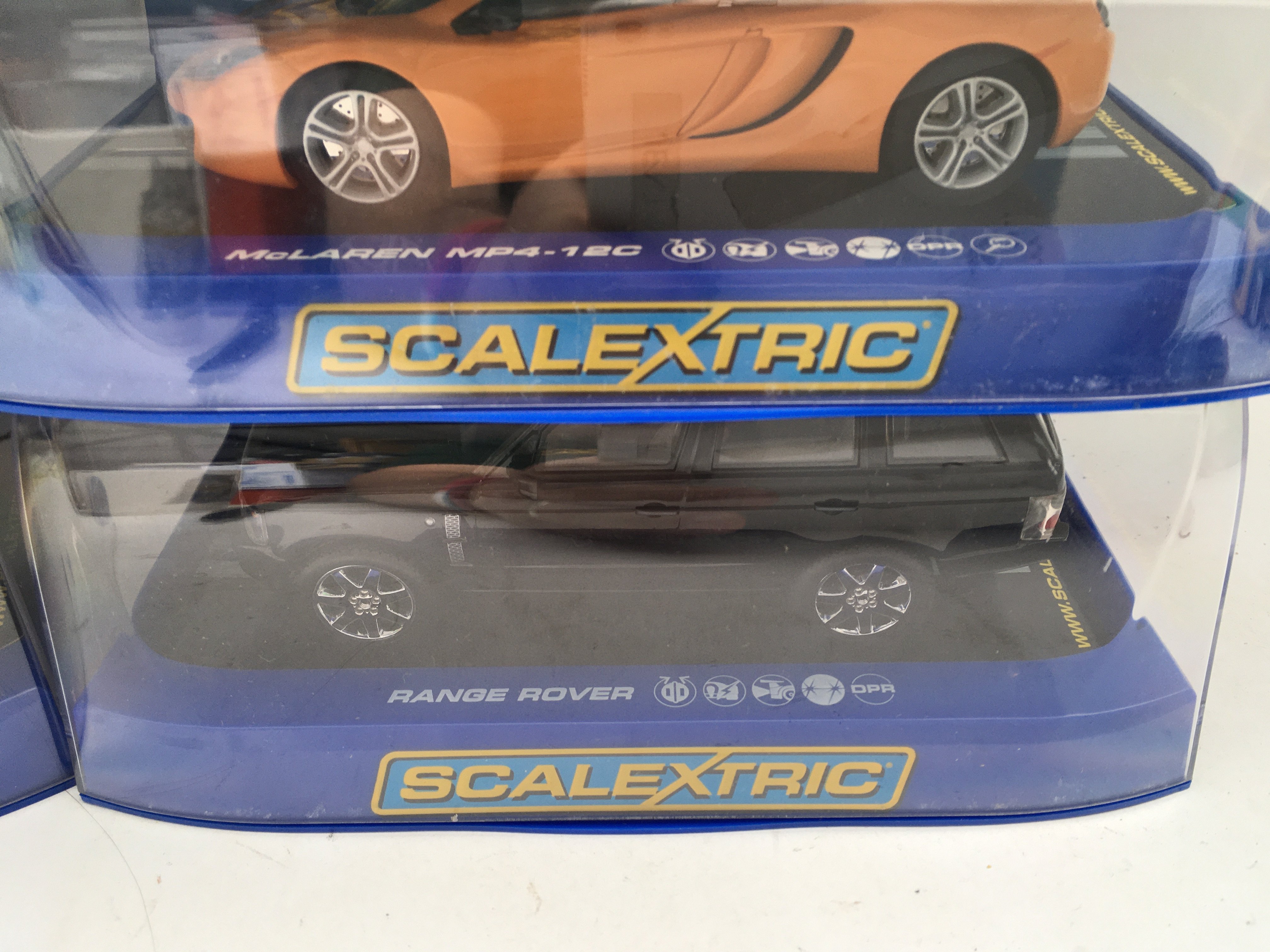 6 Boxed Scalextric Cars. Including 2 Range Rovers. McLaren MP4-12C. A Ferrari F430. A Alfa Romeo 159 and A Audi A4.