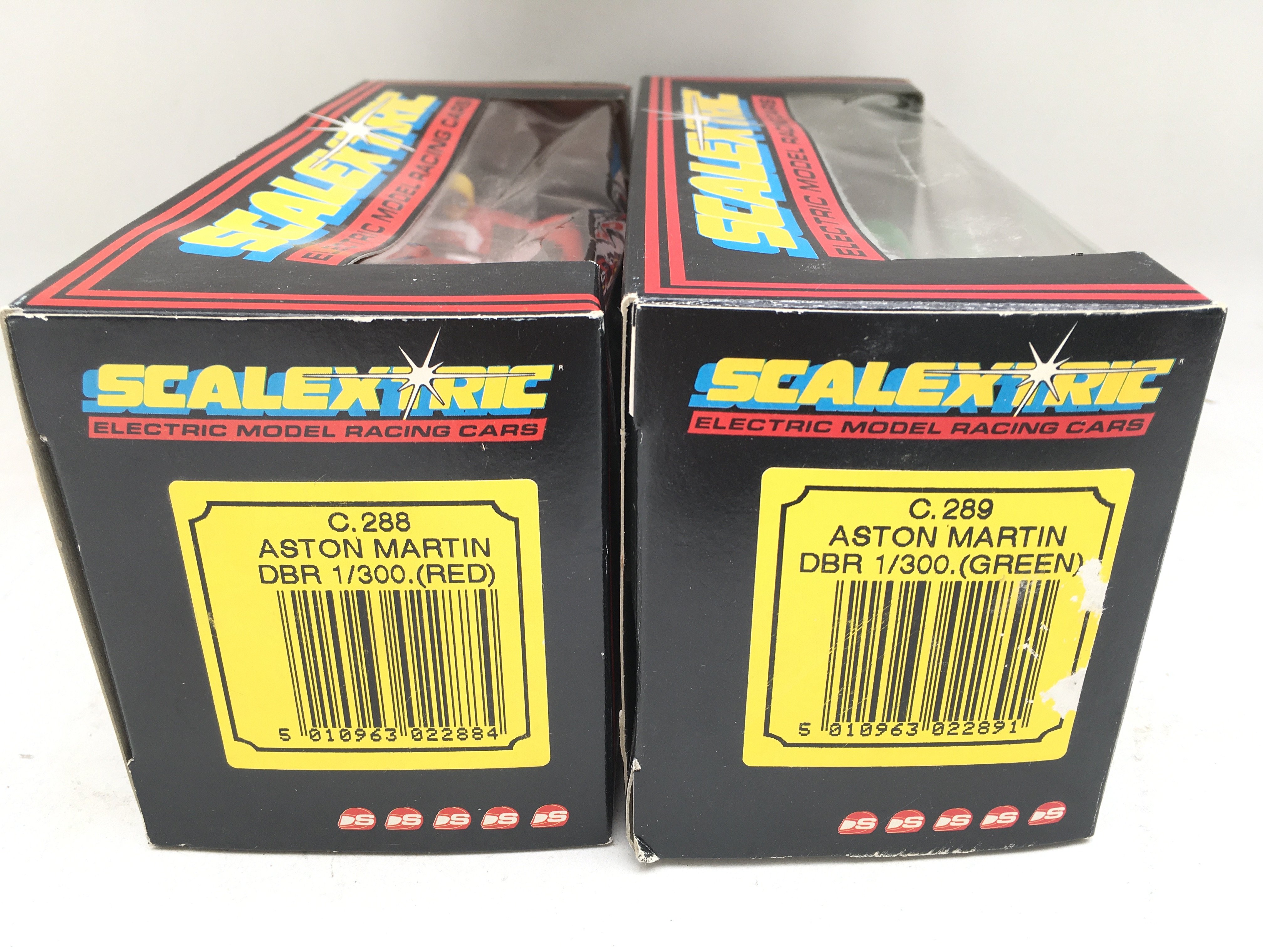 2 X Boxed Scalextric Cars. Both Aston Martin DBR 1/300 Green And Red.