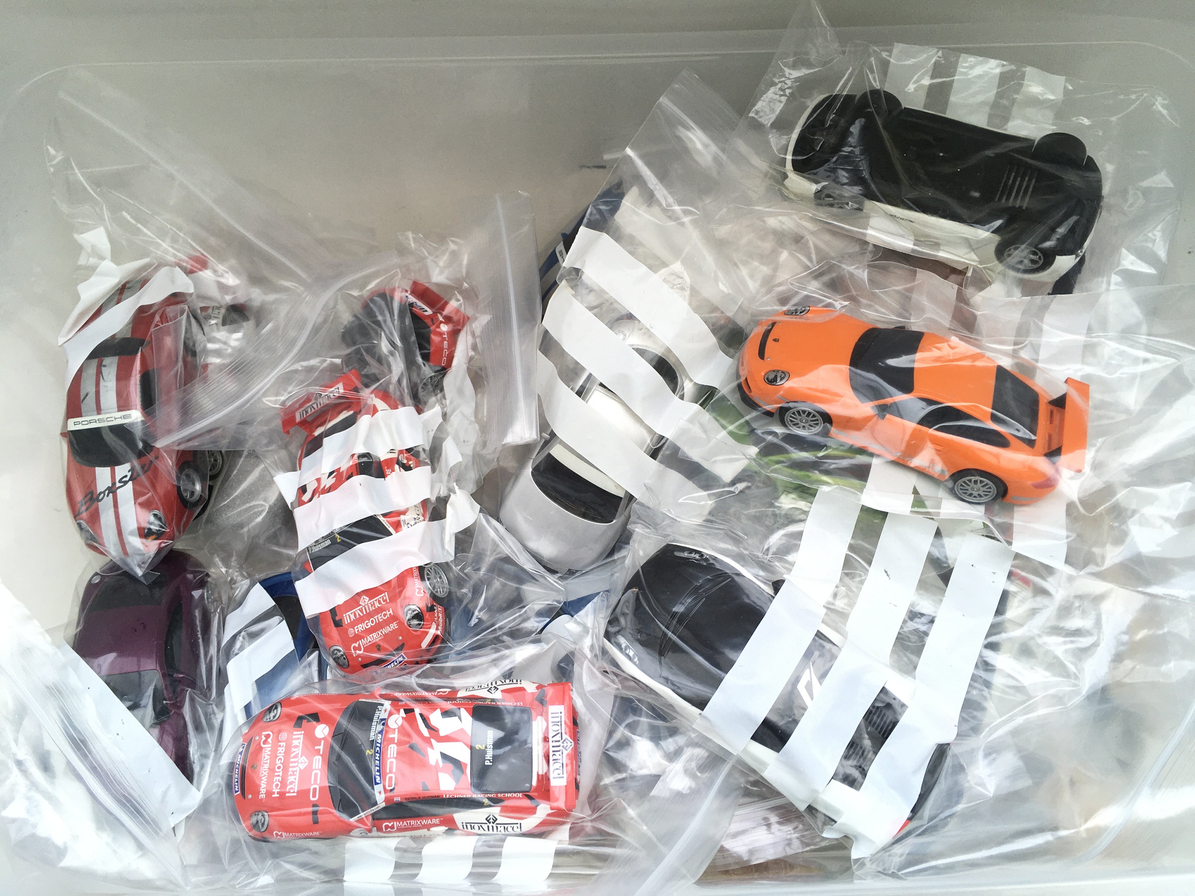 A Box Containing Scalextric Cars. ideal For Spares And Repairs.