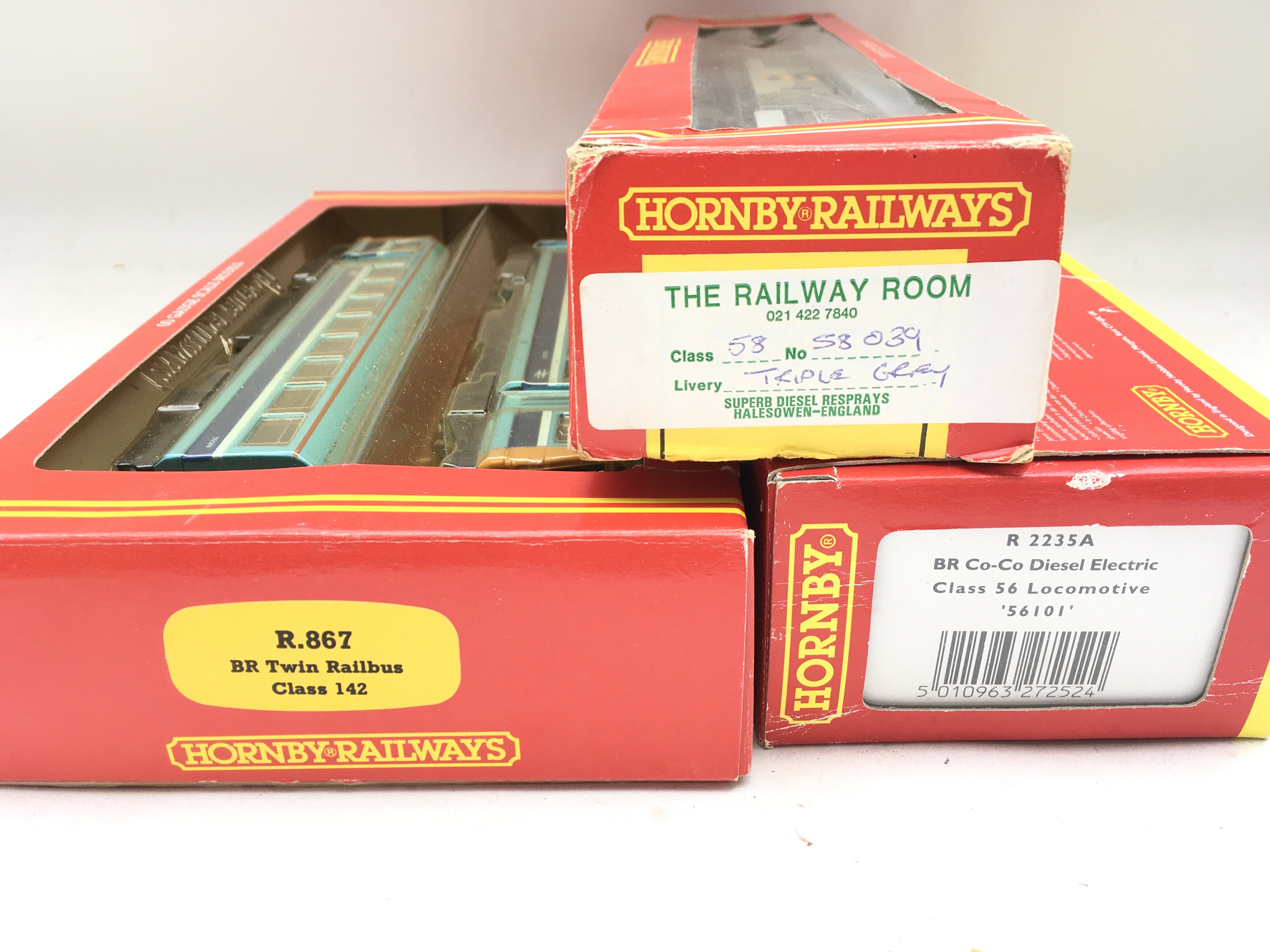 3 Boxed Hornby 00 Gauge Locomotives. Includes A BR Twin Railbus. No Reserve.