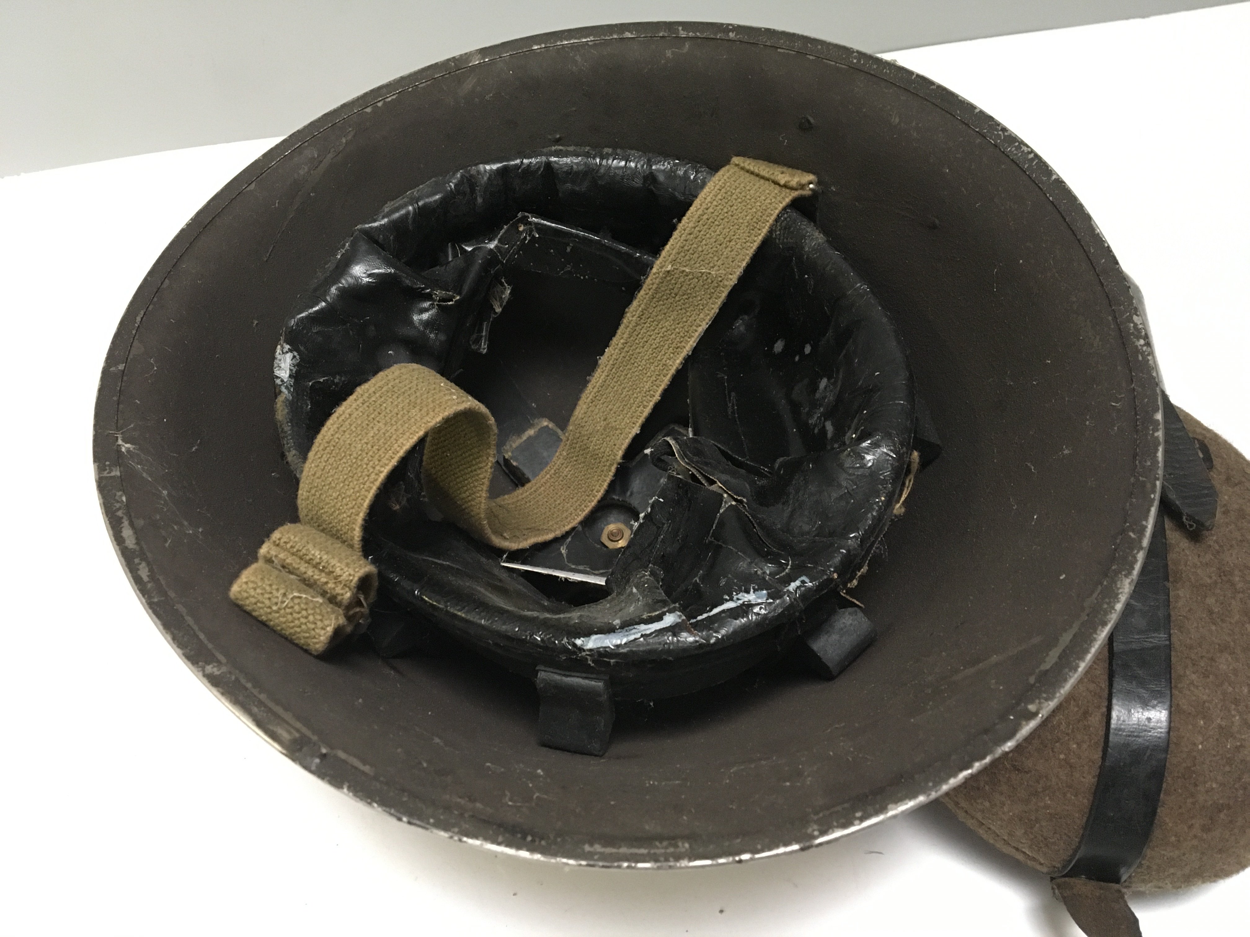 A British Military issue combat helmet worn in Belfast late 1960-70 and a military issue water bottle (2)