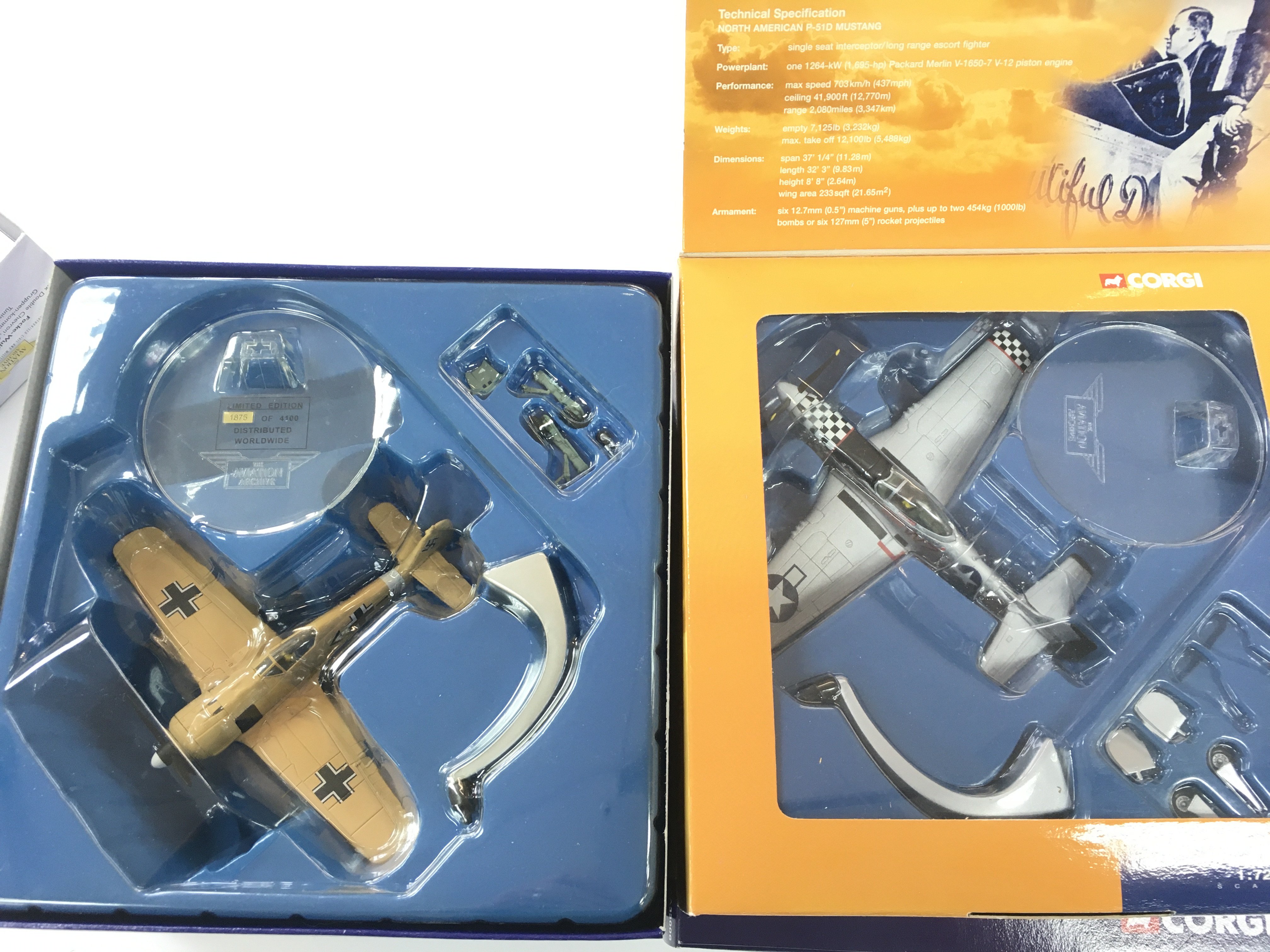 4 X Boxed Corgi Aviation Archive Models. A Focke-Wulf. A P15D Mustang. A Corsair IV And A Messerschmitt. All 1/72 Scale. No Reserve. (4).