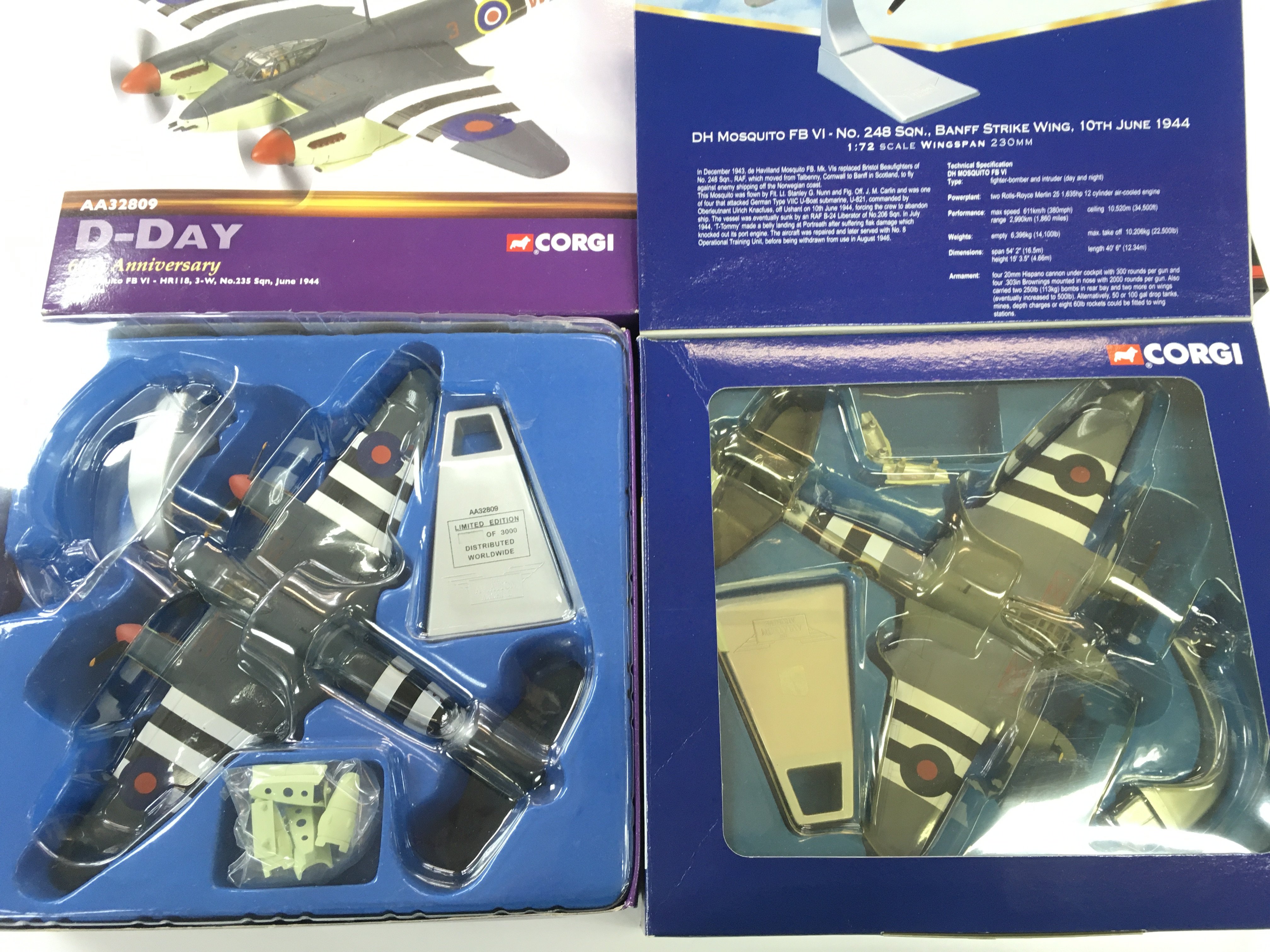 4 X Boxed Corgi Aviation Archive Diecast Aircraft. Including 3 Mosquitos And A ME262A. All 1/72 Scale. No Reserve.(4).