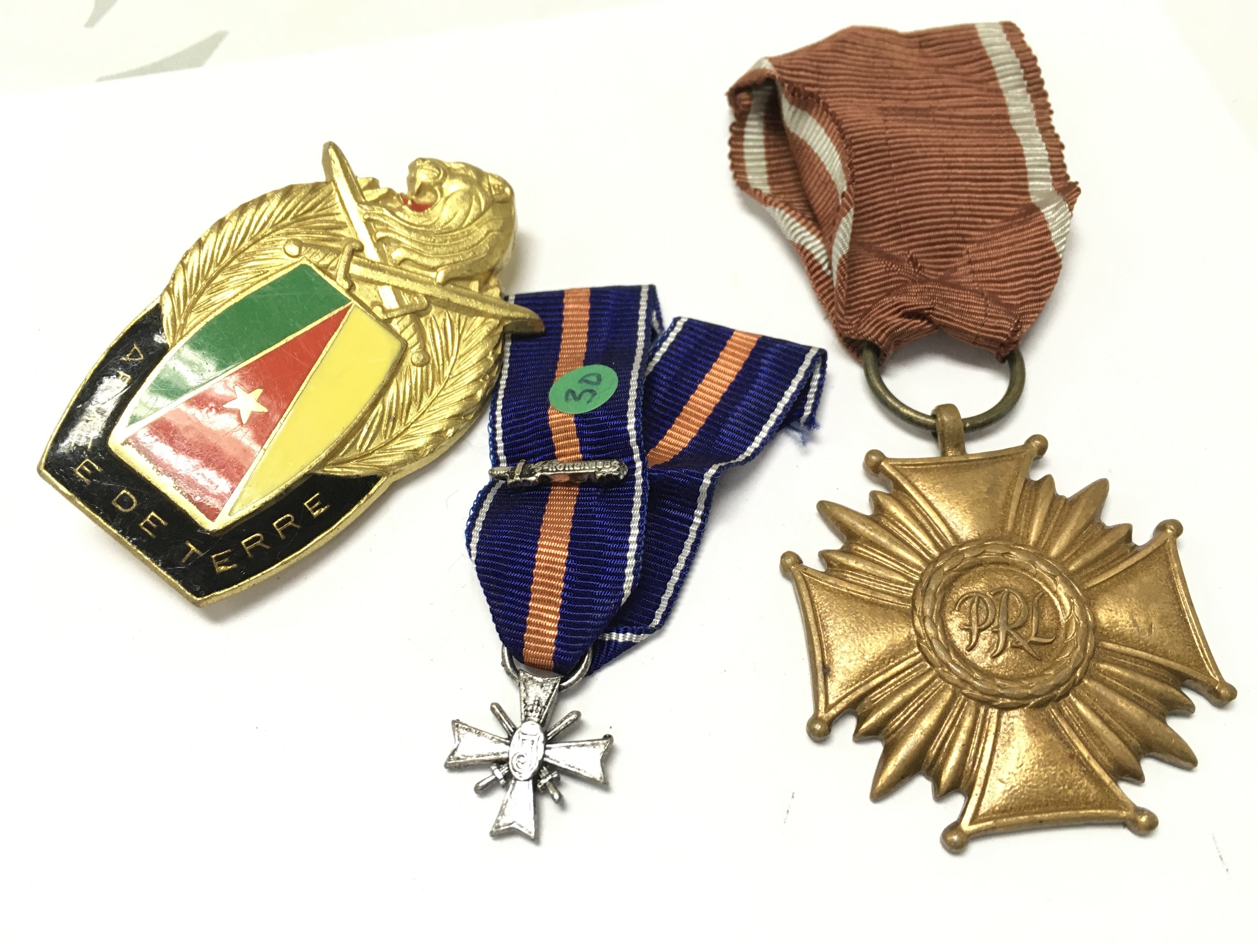 A french Army of earth chest badge, Polish cross of merit, Dutch Cross For Freedom And Justice Korea 1950 miniature medal. Postage category A