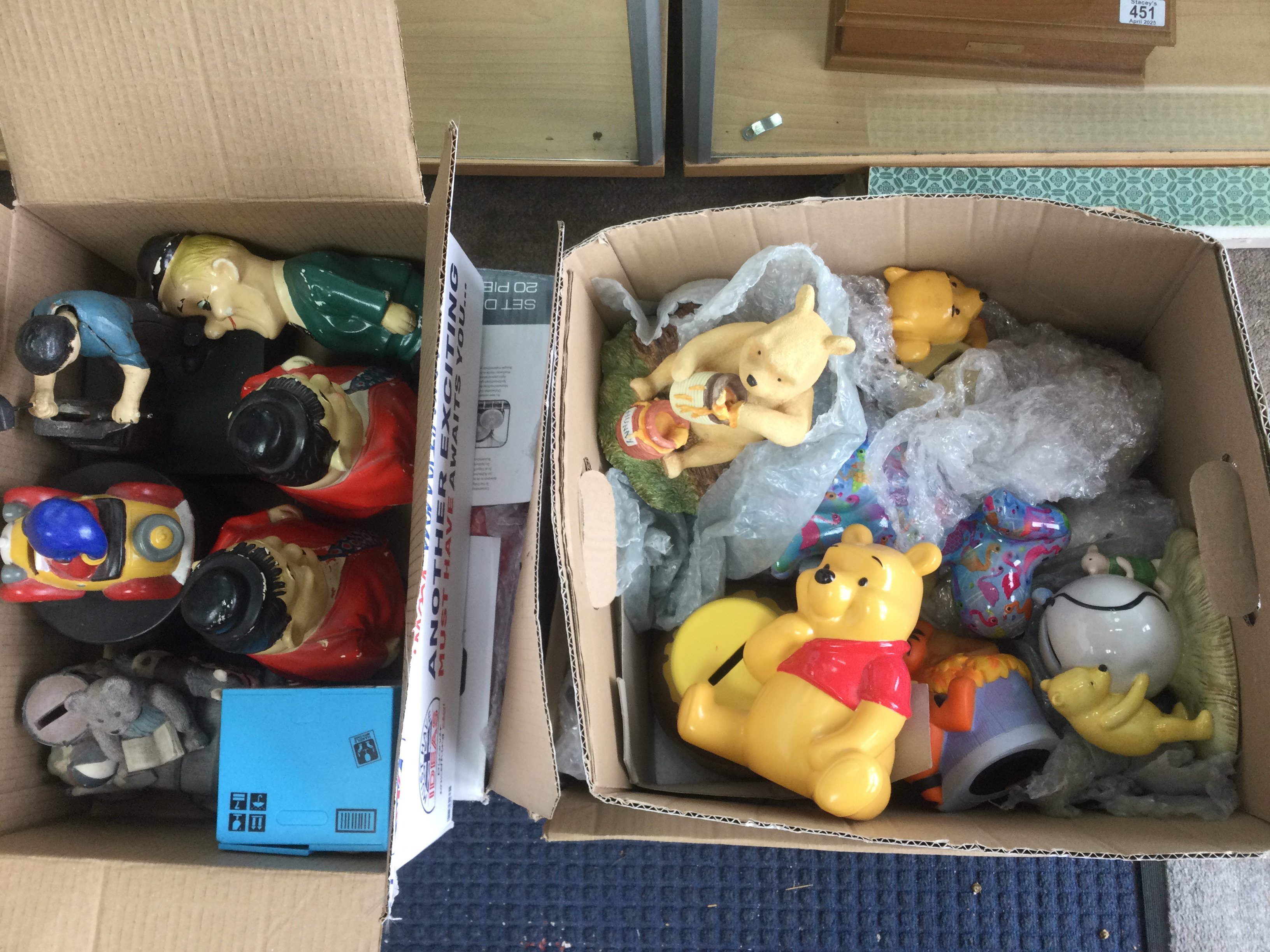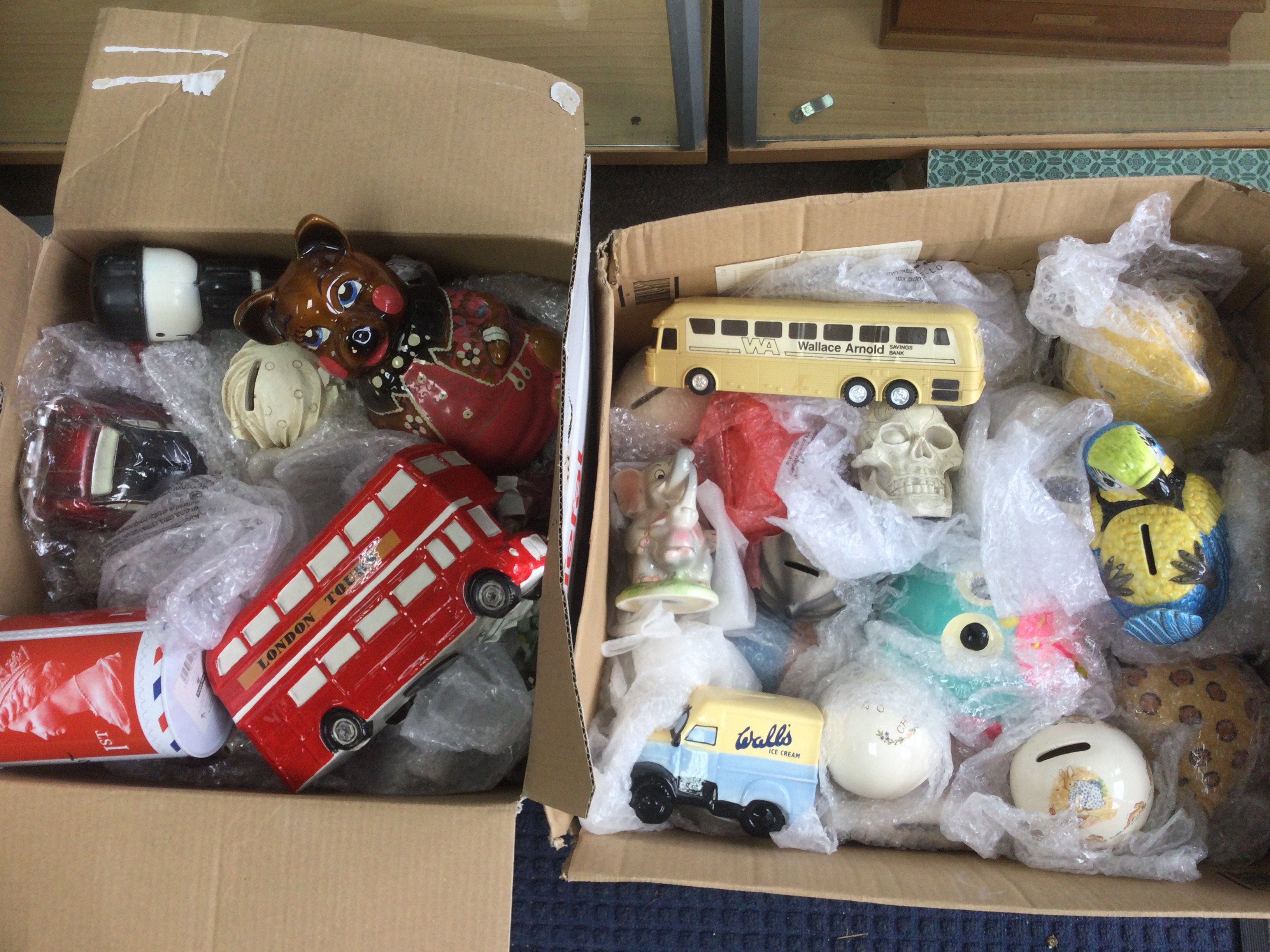 Four boxes of novelty money boxes. Shipping category D.