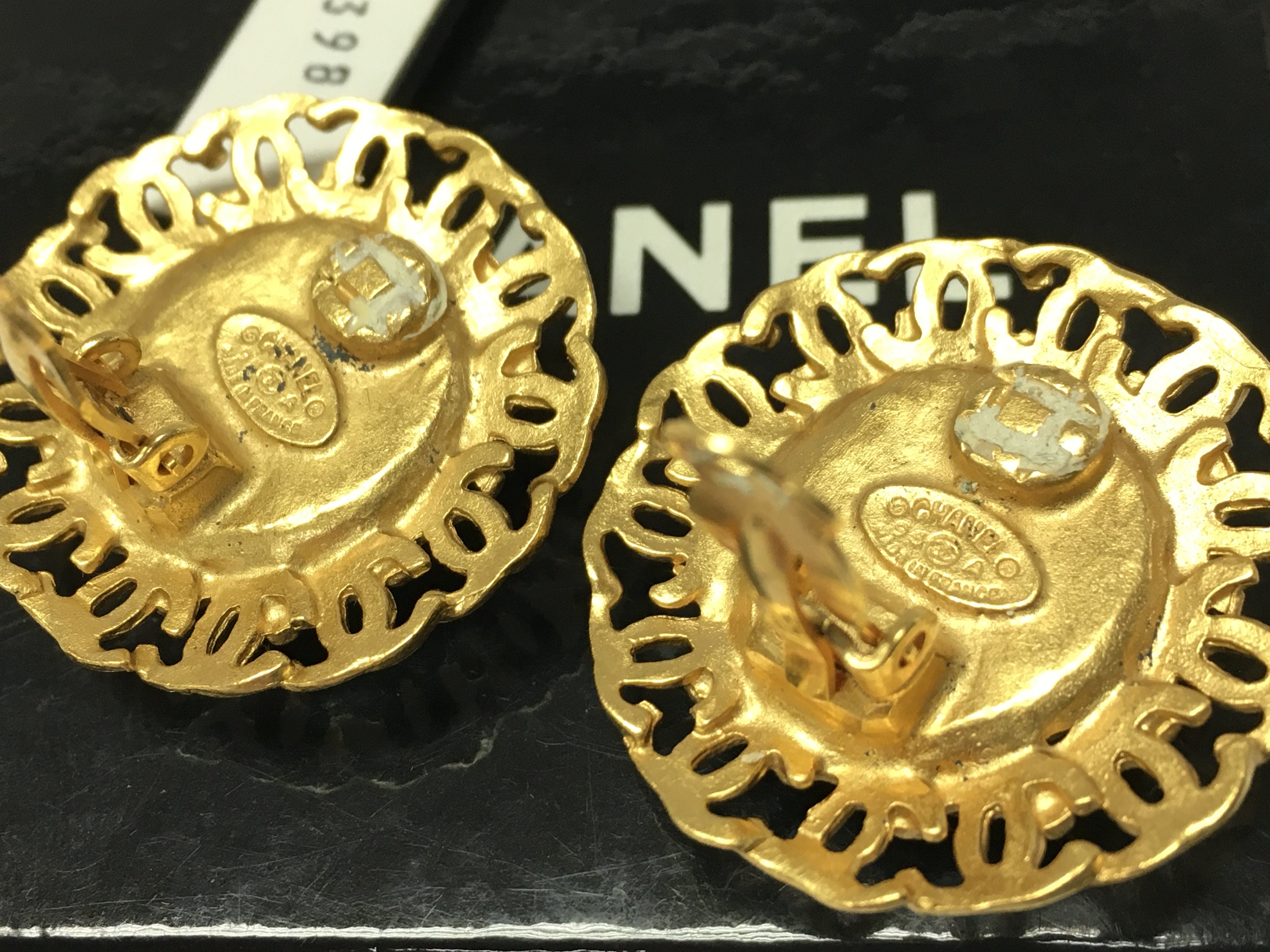 A boxed pair of Chanel tigers eye clip on earrings