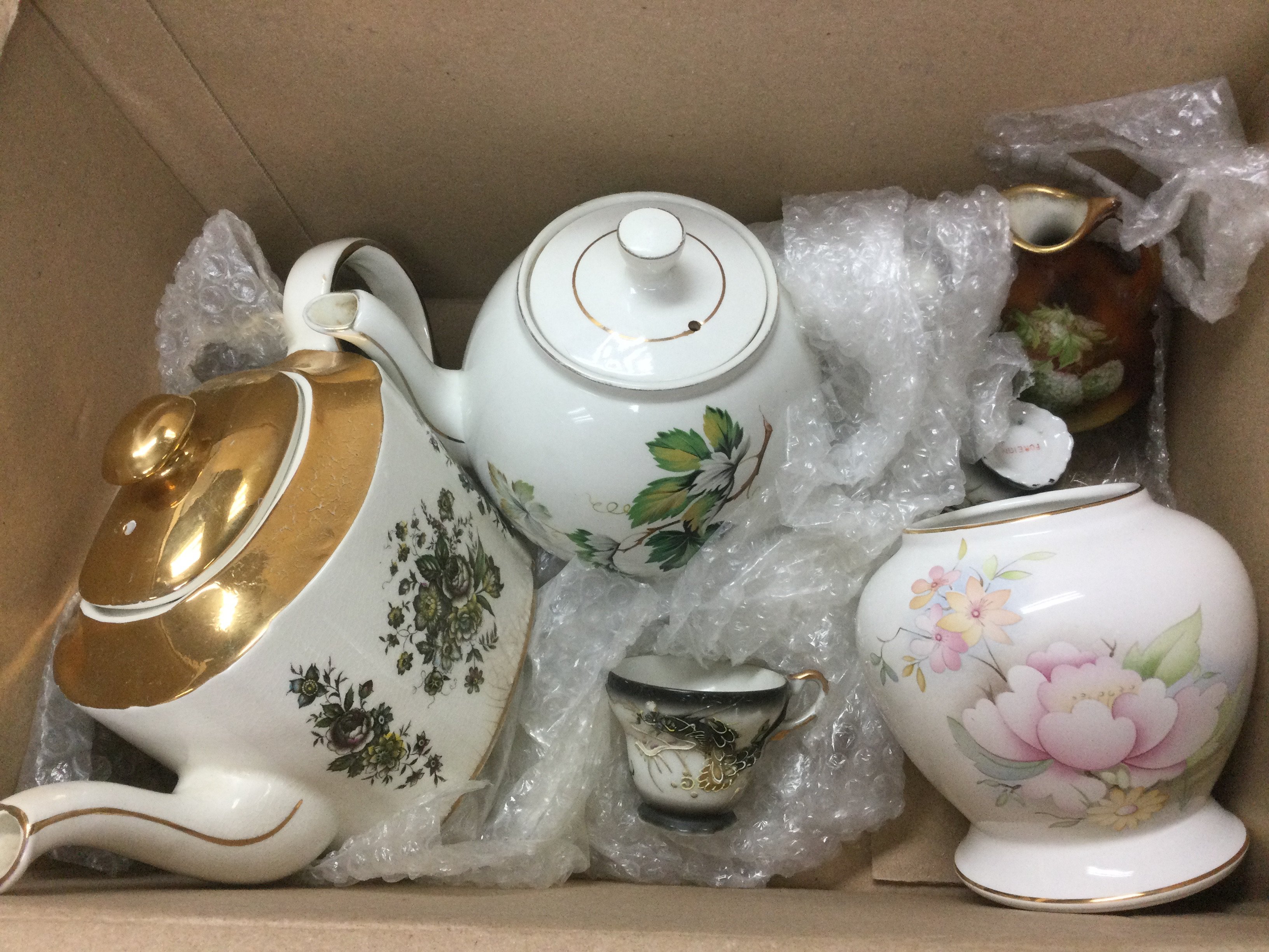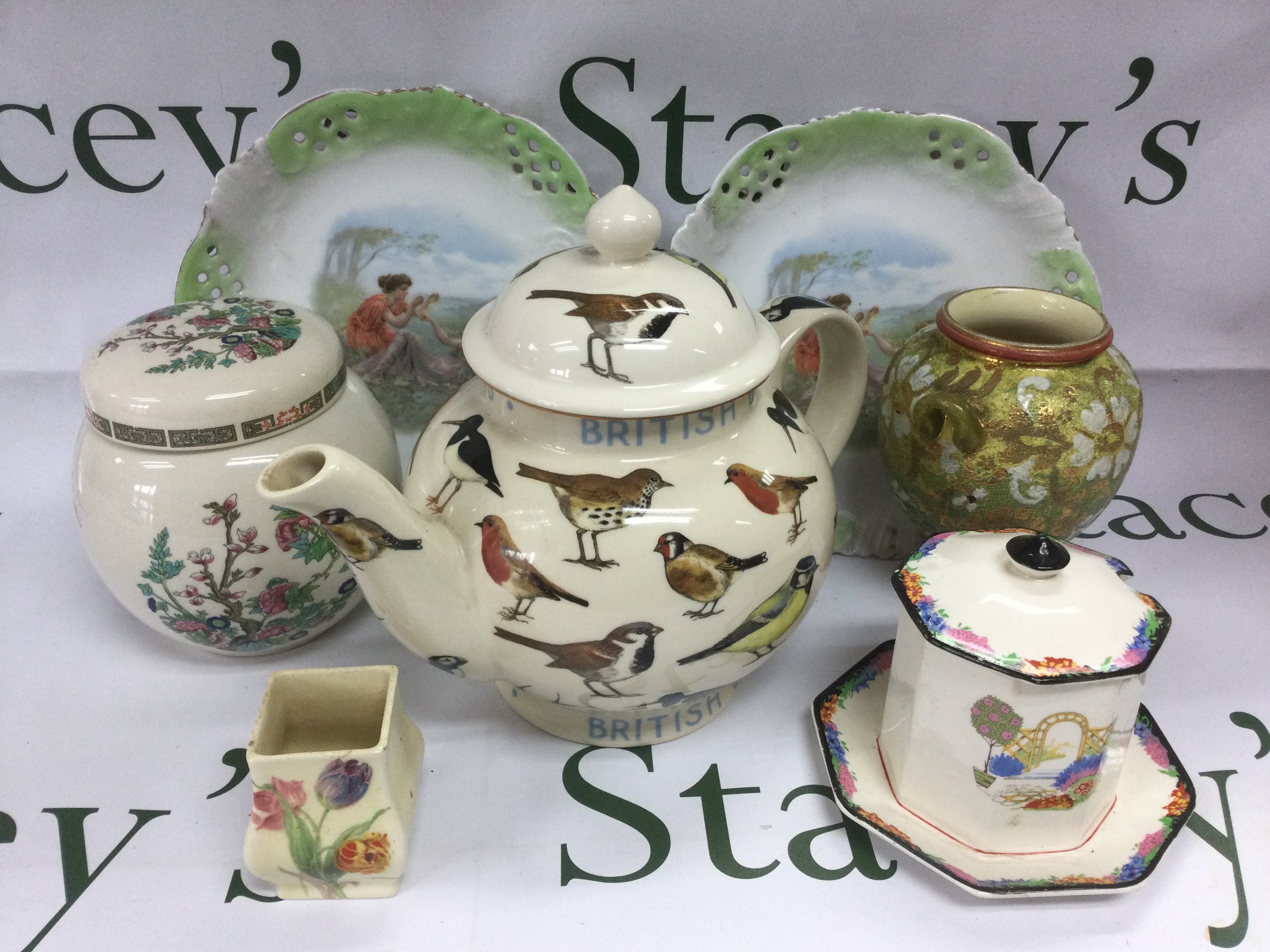 A box of ceramics including an Emma Bridgewater teapot of British birds, Doulton vase etc. Shipping category D.