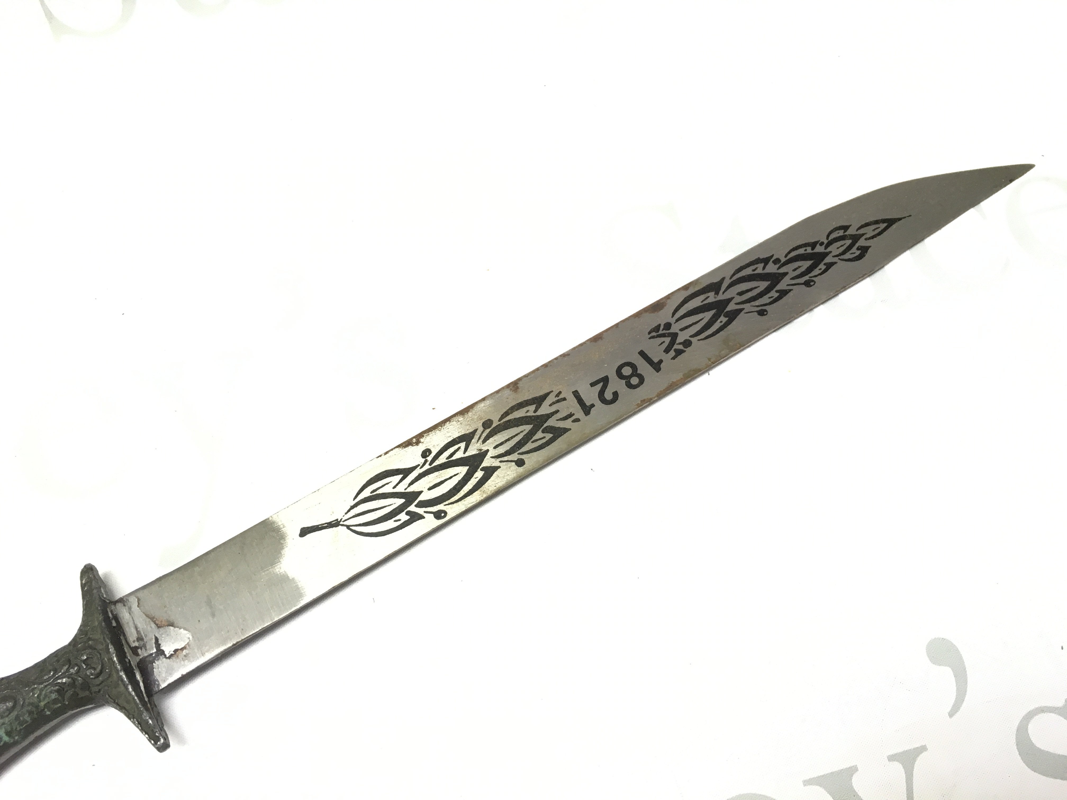 Three Swords including a German hunting knife (60cm long) and a Cuban souvenir machete (59cm long approximately).