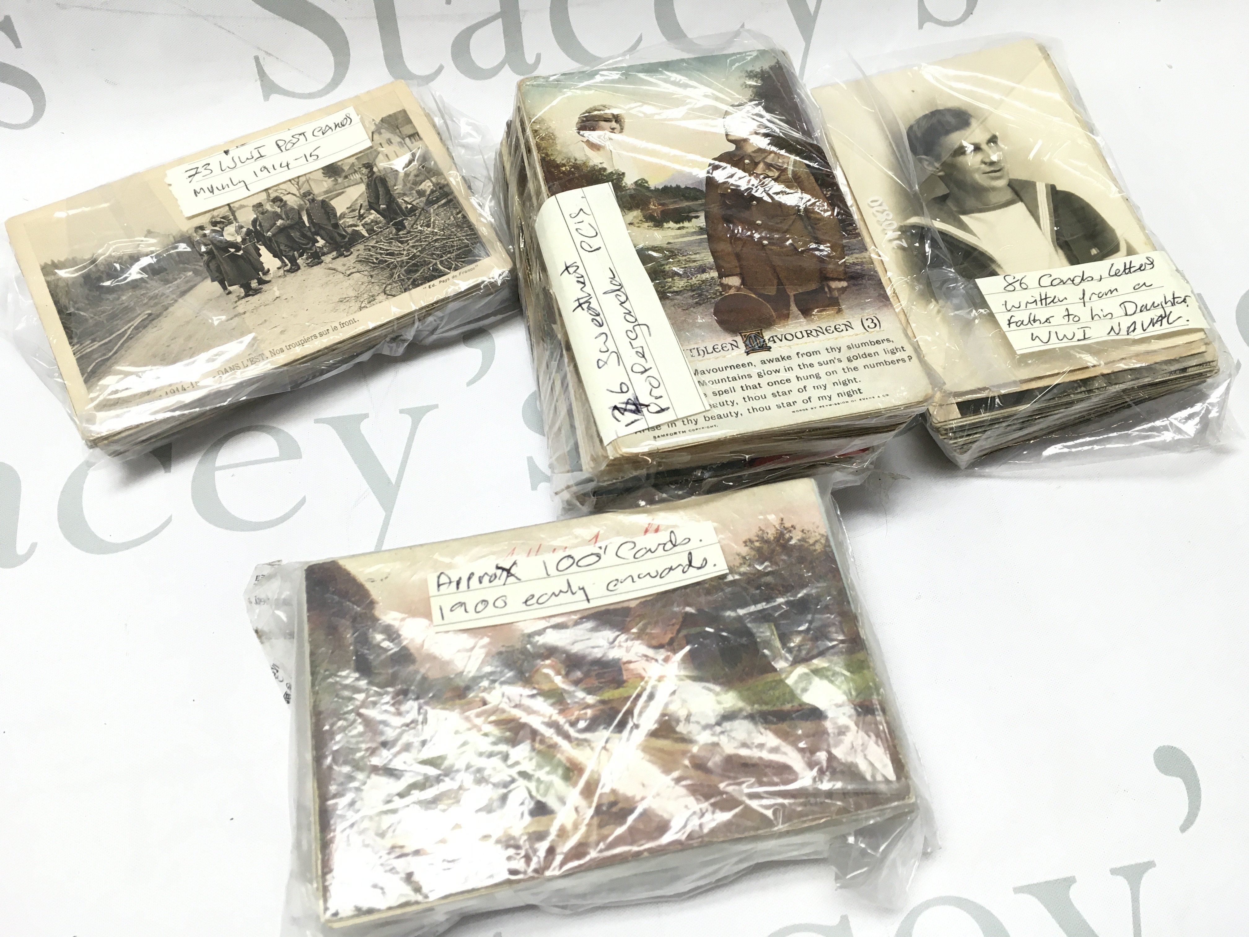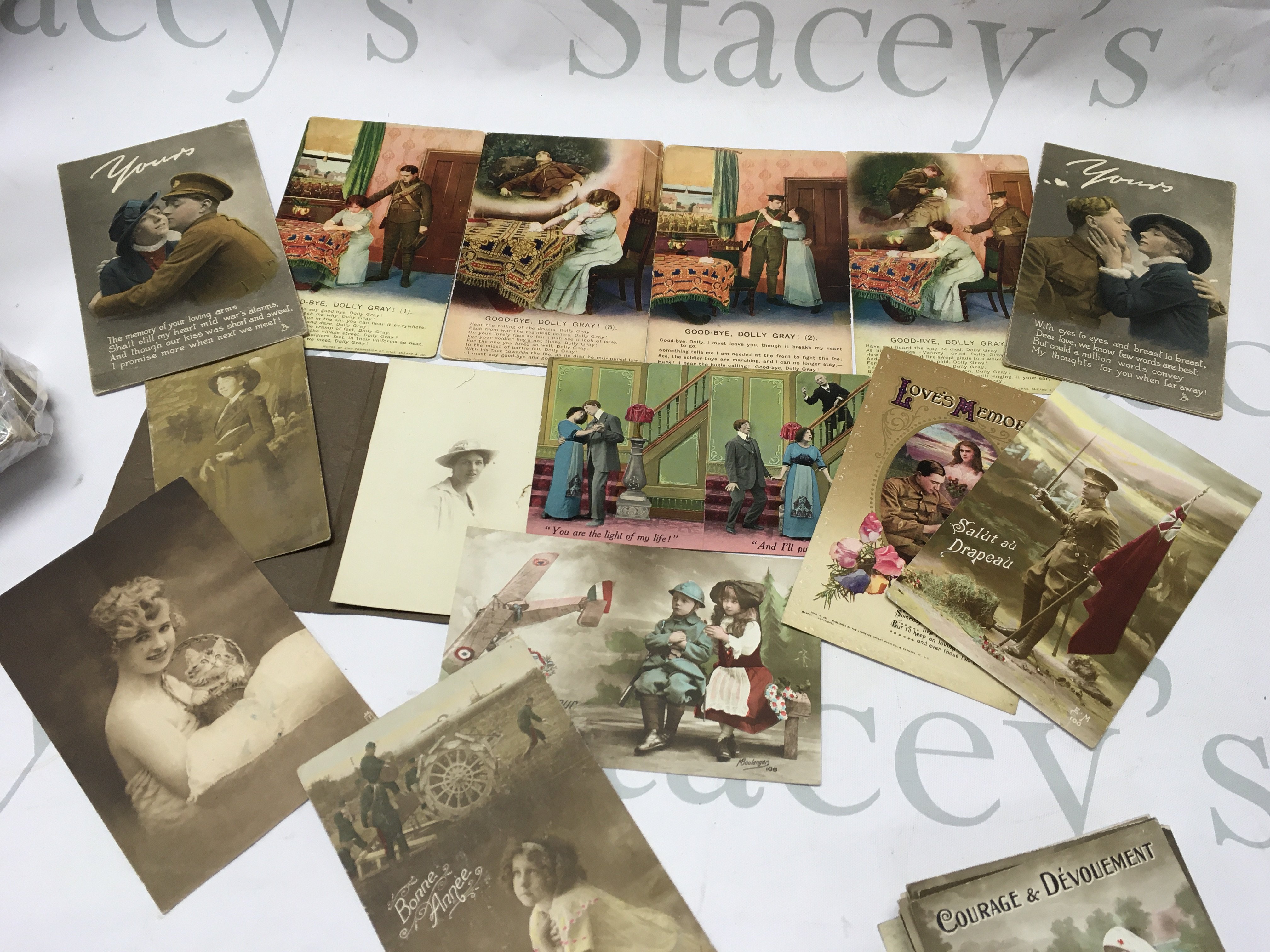 A collection of WW1 post cards including French cards, sweetheart propaganda cards and some other vintage cards . Postage cat B