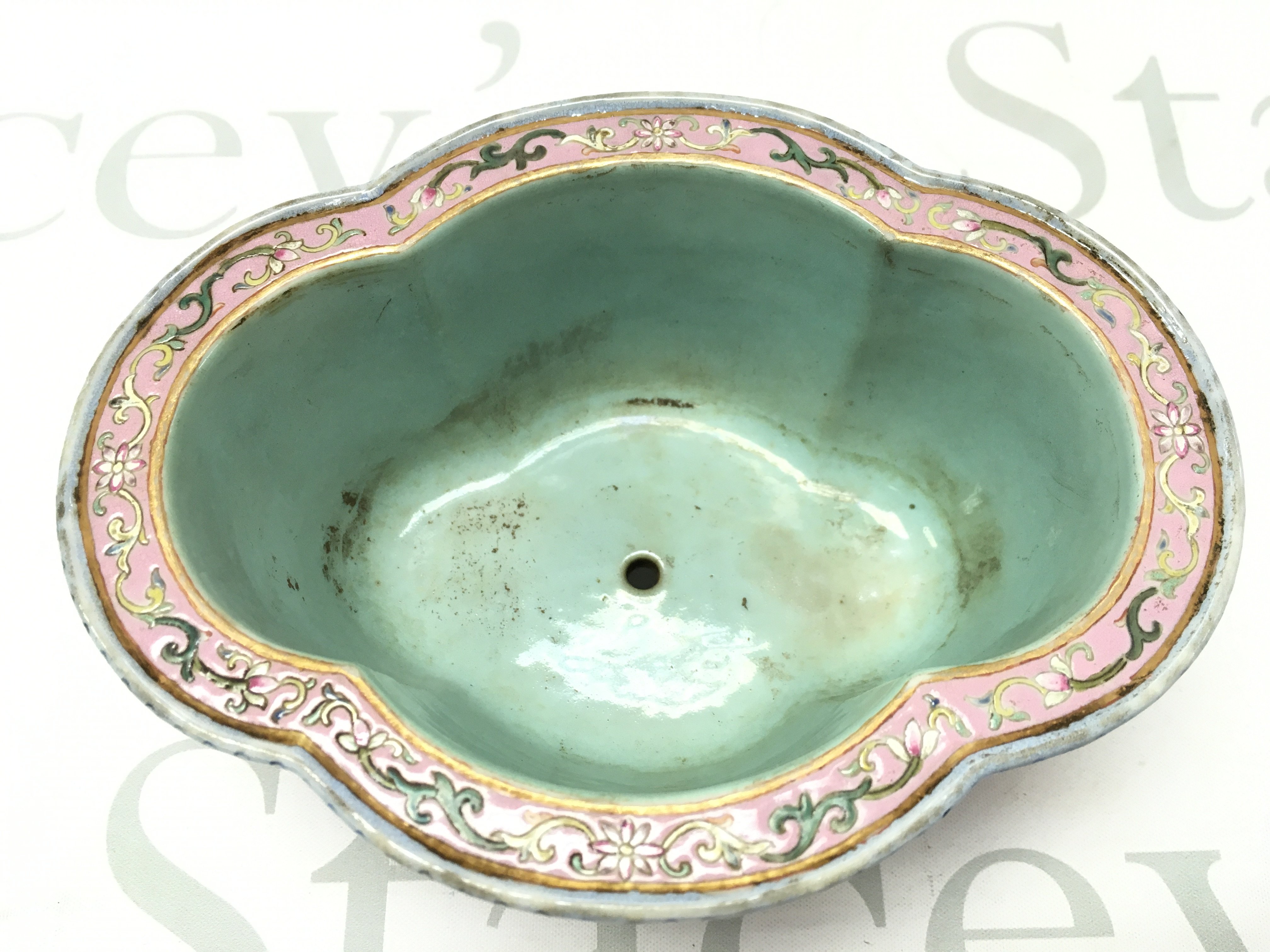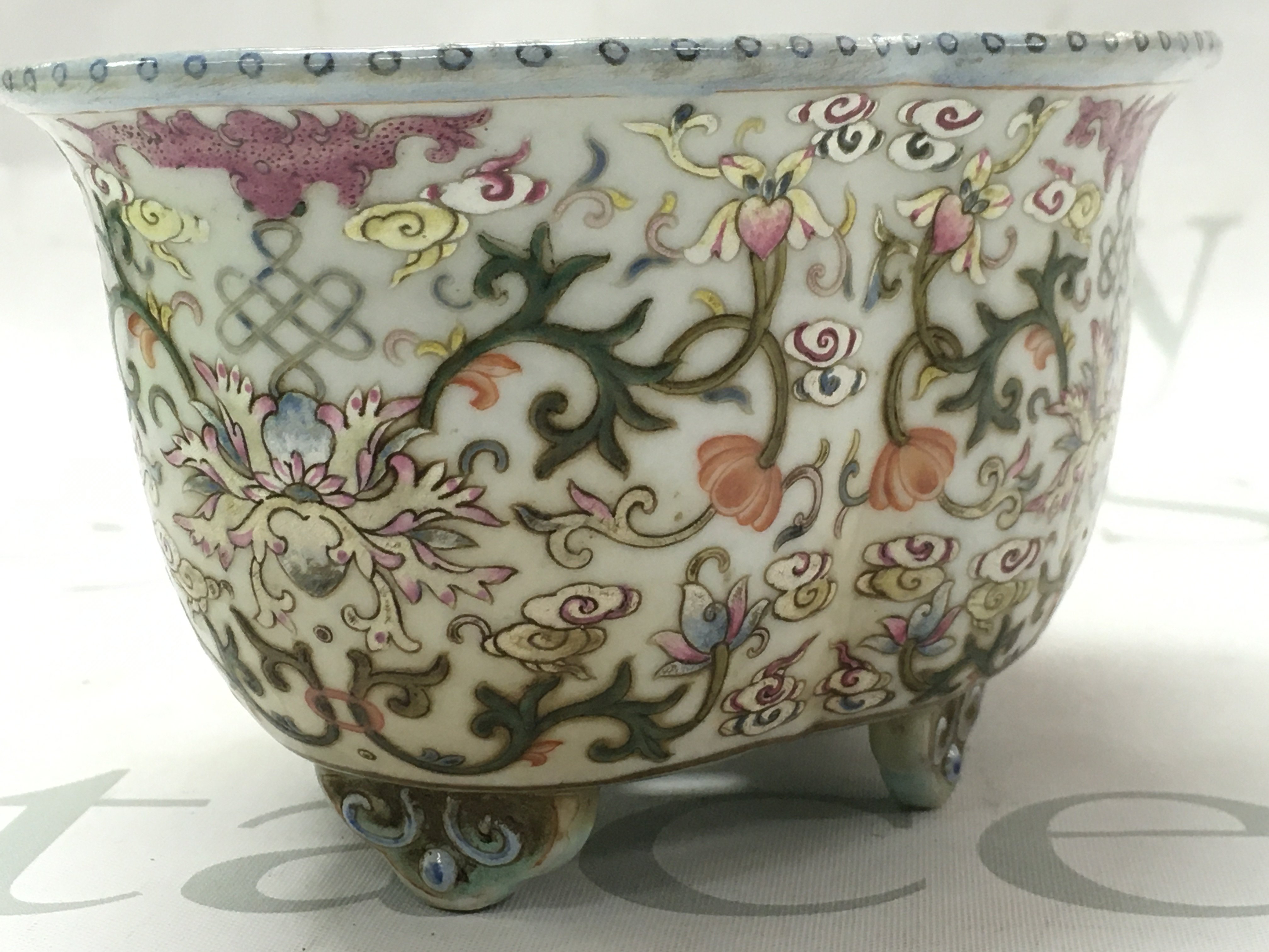 A small Chinese Famille Rose jardiniere , 16cm wide, 8cm tall. No obvious damage or restoration This lot cannot be posted