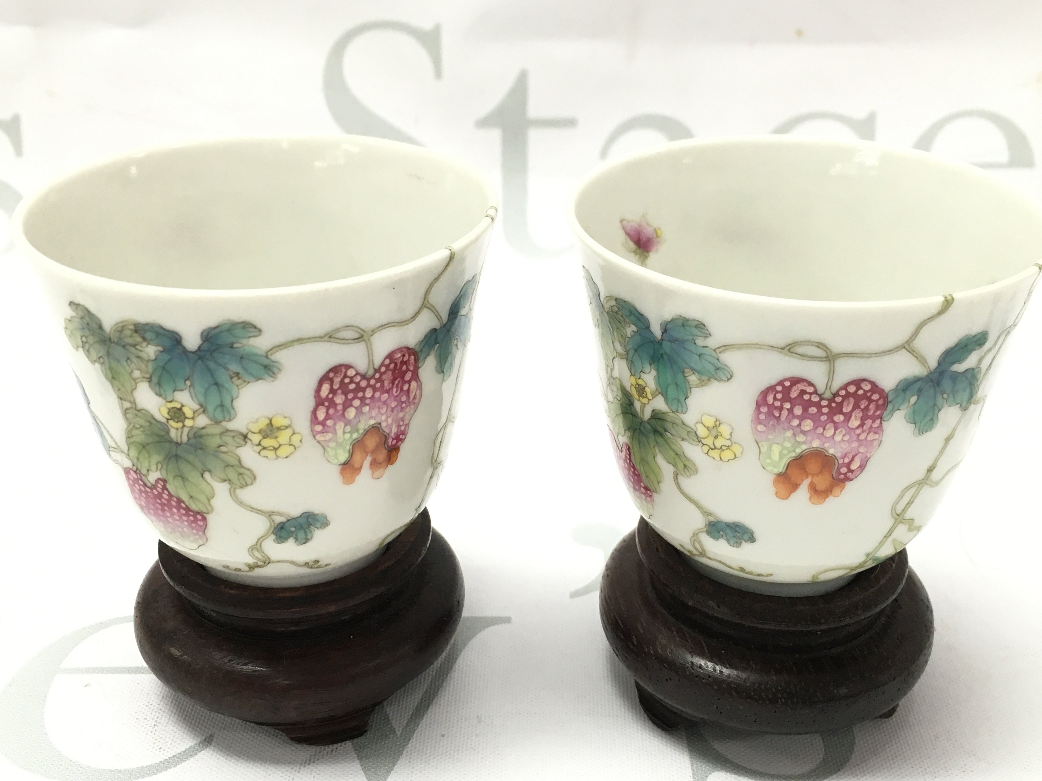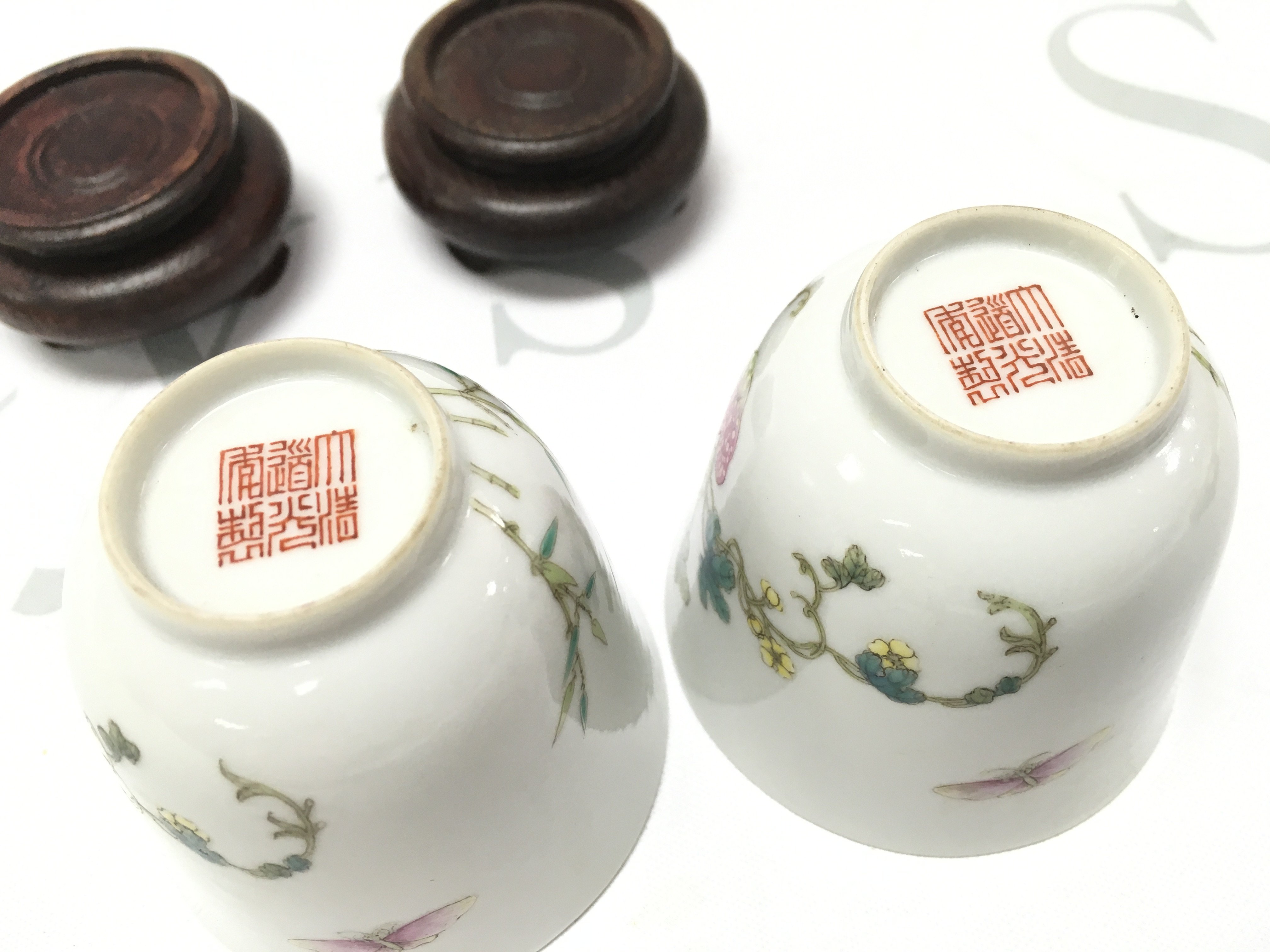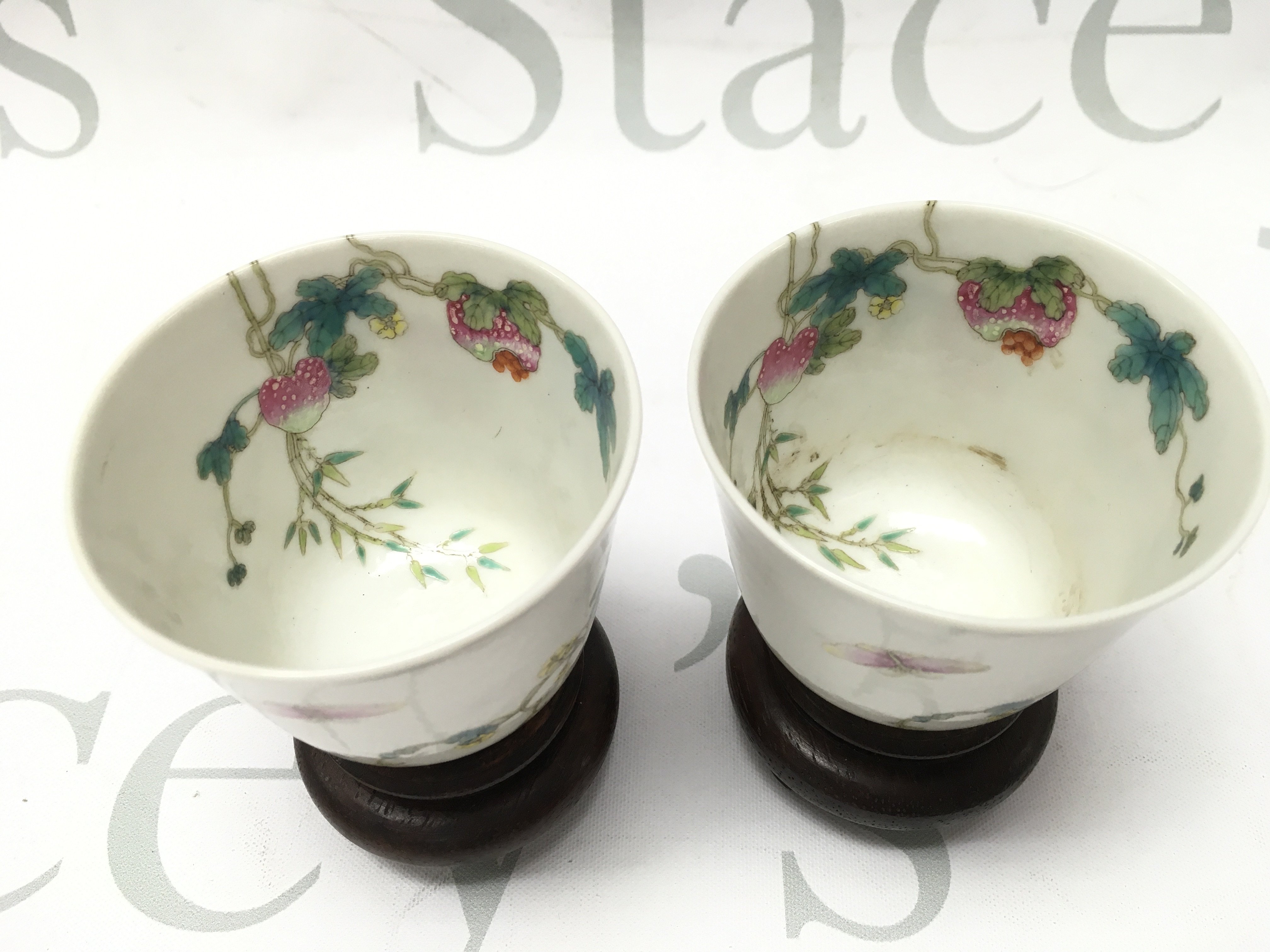 A pair of Chinese Famille Rose tea cups. 6cm tall This lot cannot be posted