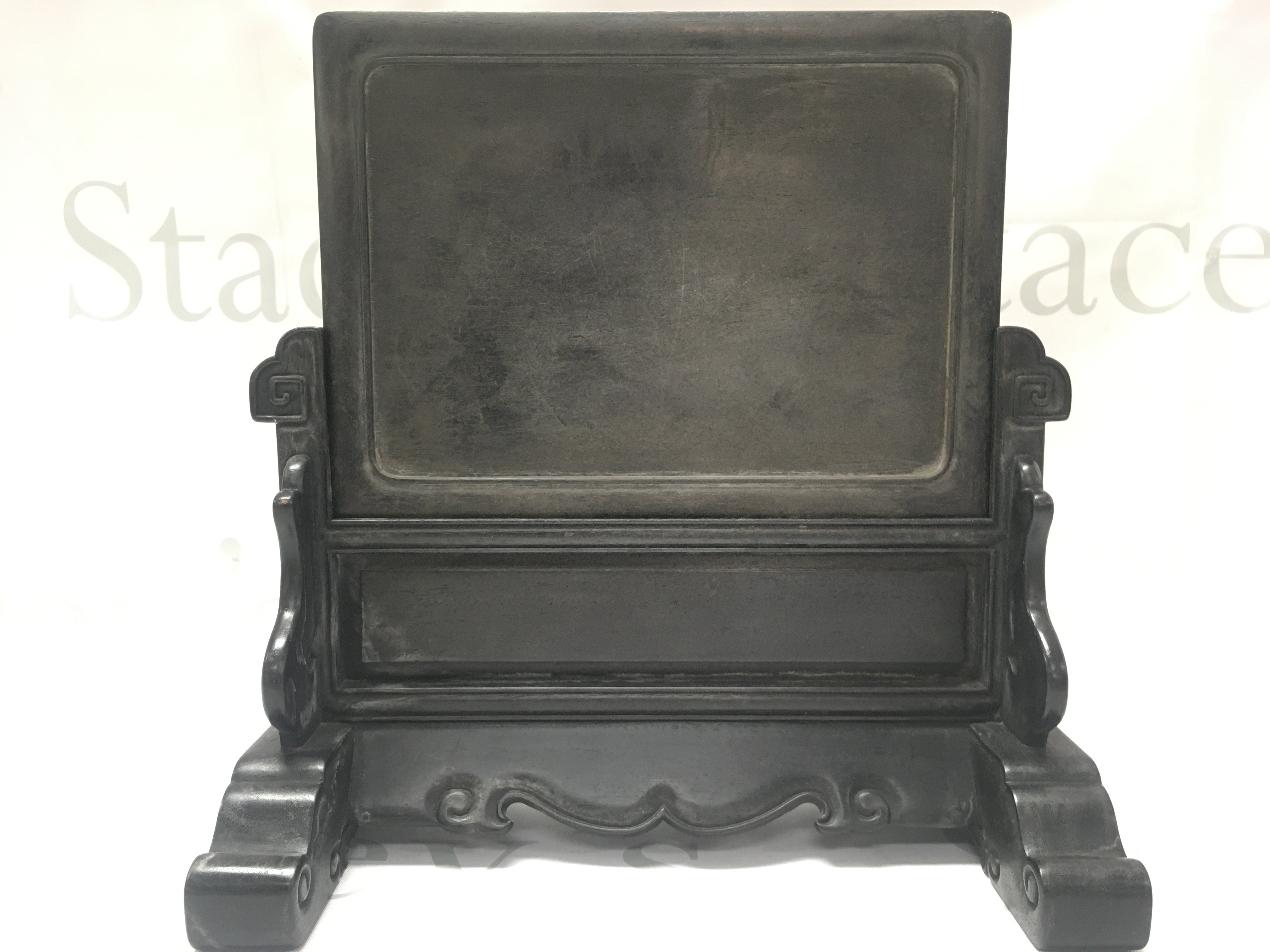 A Chinese wooden screen inlaid with jade ,birds with flowers piece. 25cm wide 25cm tall.
