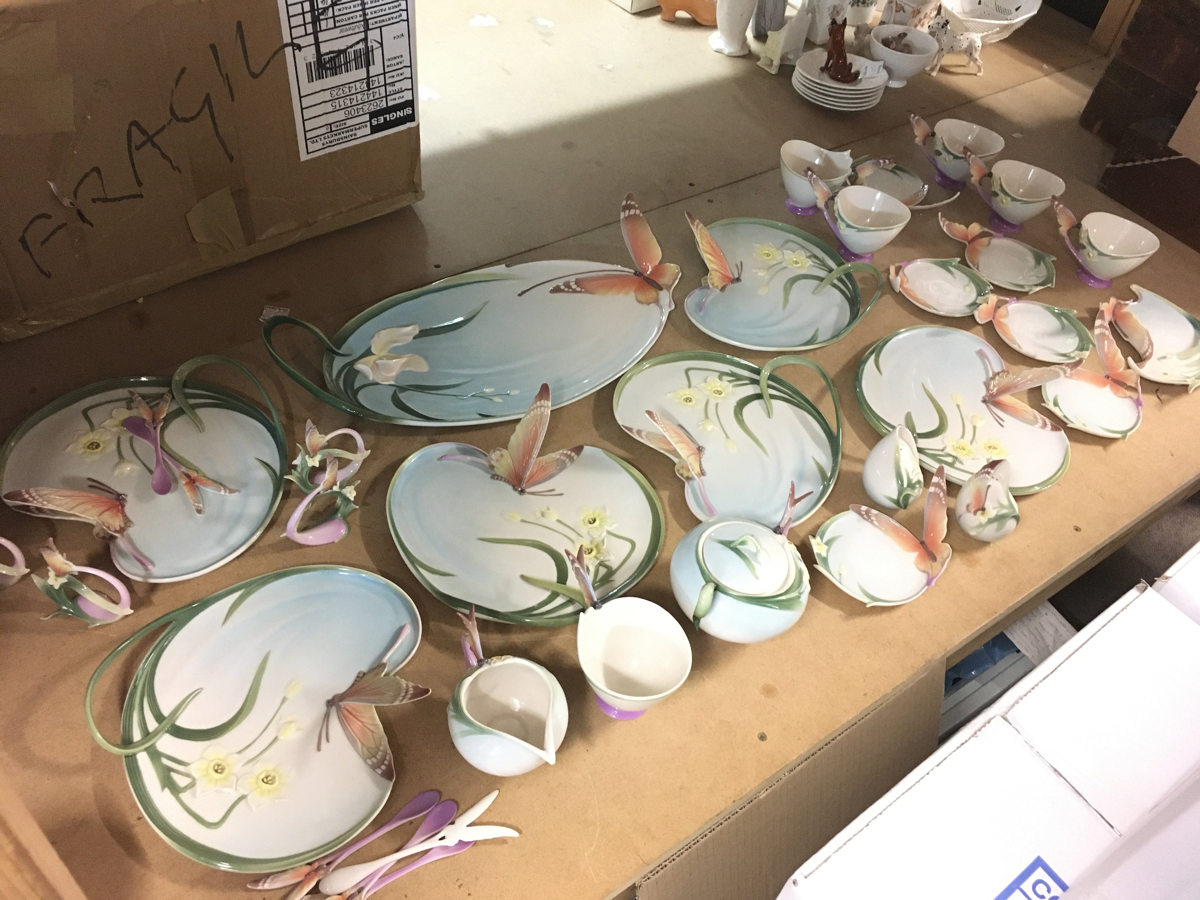 Frank porcelain butterfly set including plates, cups, saucers etc. This lot cannot be posted