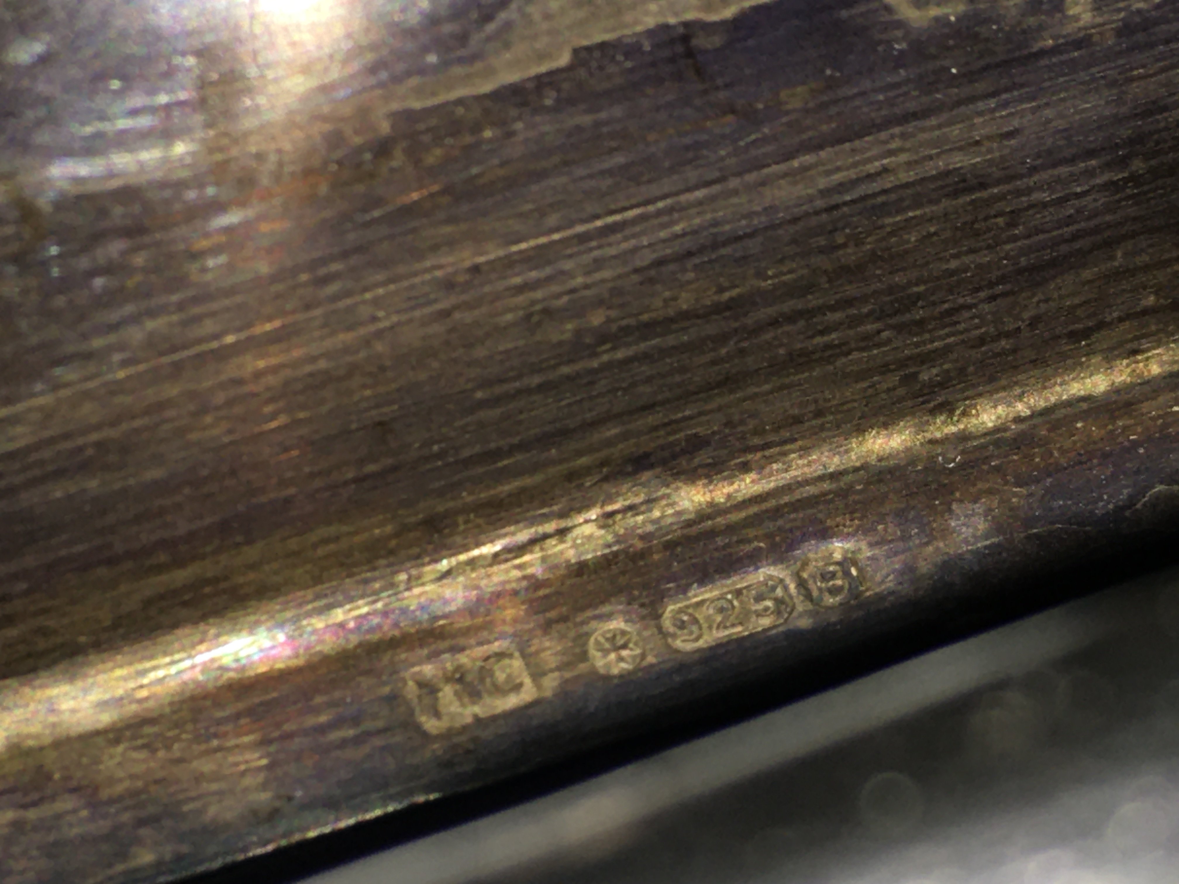 A hallmarked silver model boat (approximately 19.5cm tall including stand). In need of restoration Postage category B