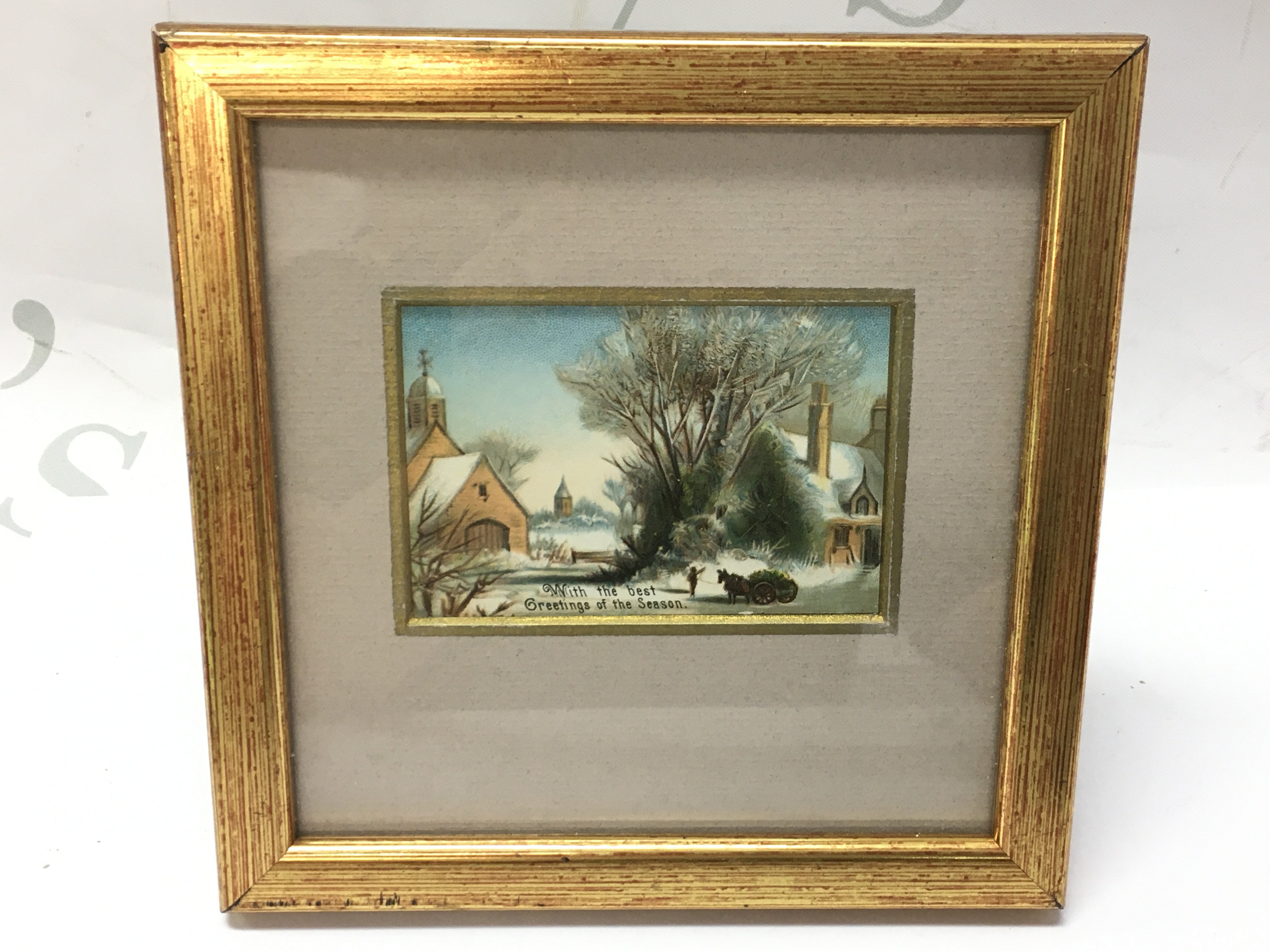 A framed original Victorian Christmas Greetings card , colour printed circa 1875. Frame dimensions 14.5x14.5cm Postage category A if posted without frame or could be posted at buyers risk of the glass becoming damaged.
