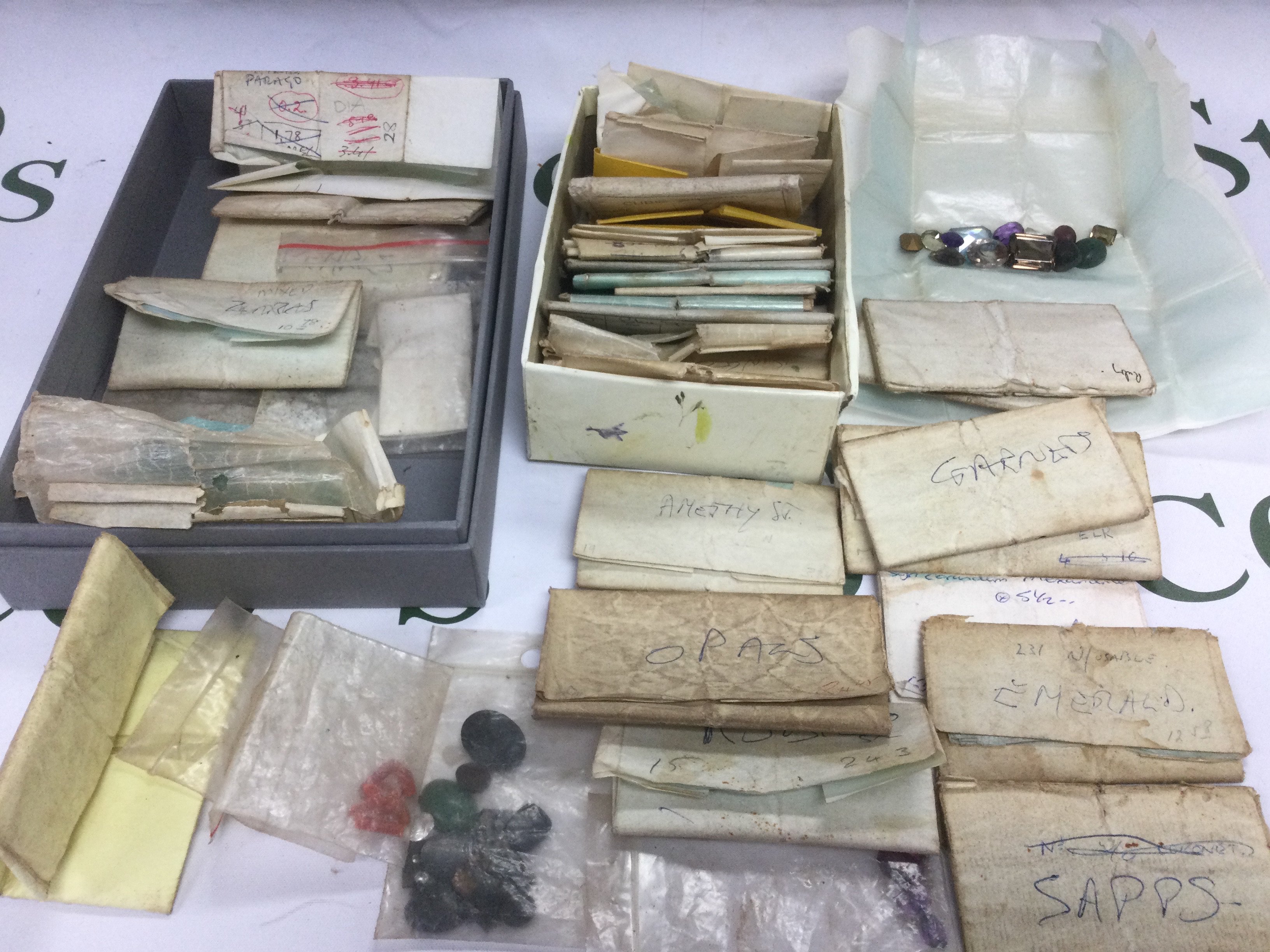 A collection of precious and semi precious stones including diamond chips, sapphires, rubies, emeralds, amethyst and others. Shipping category B.