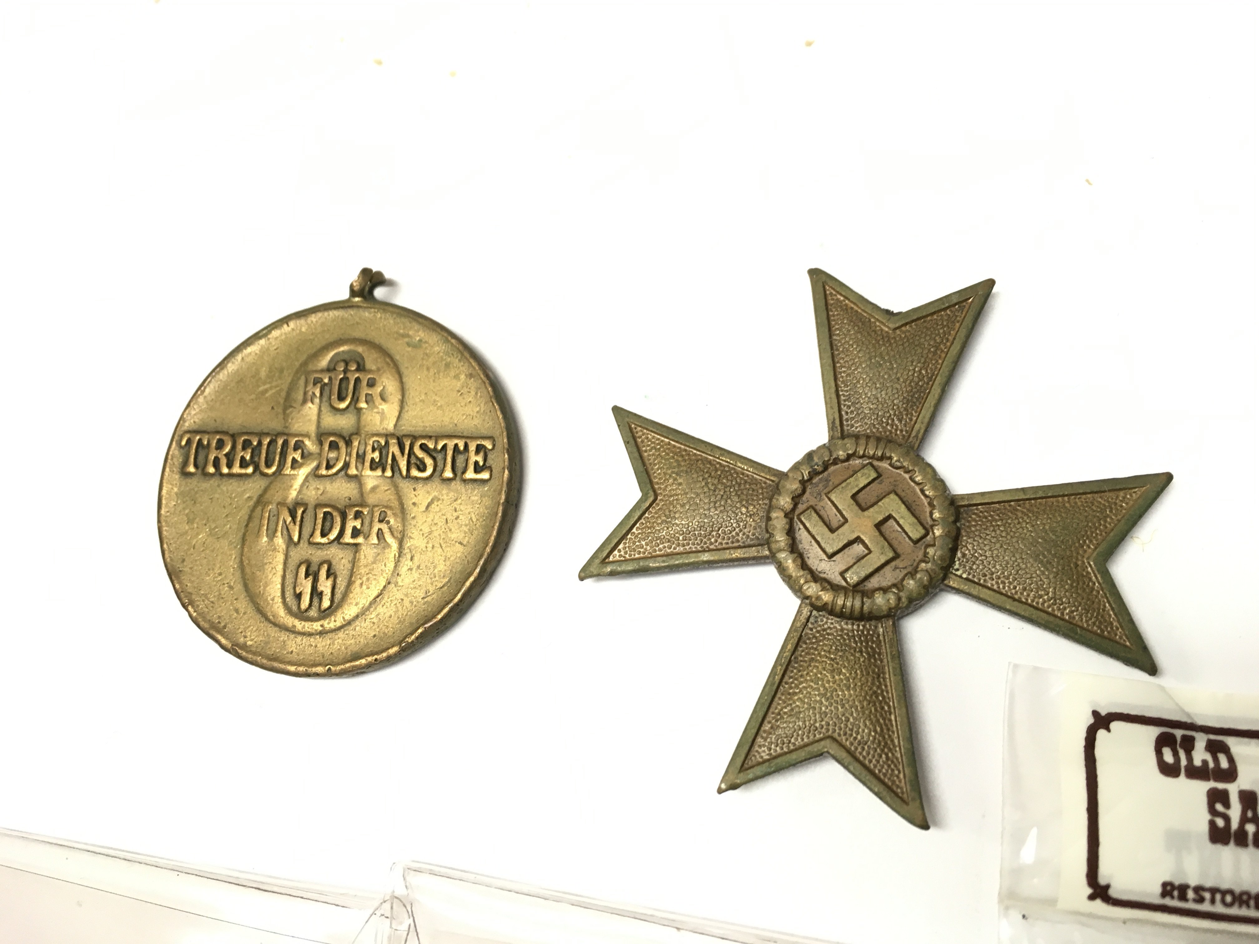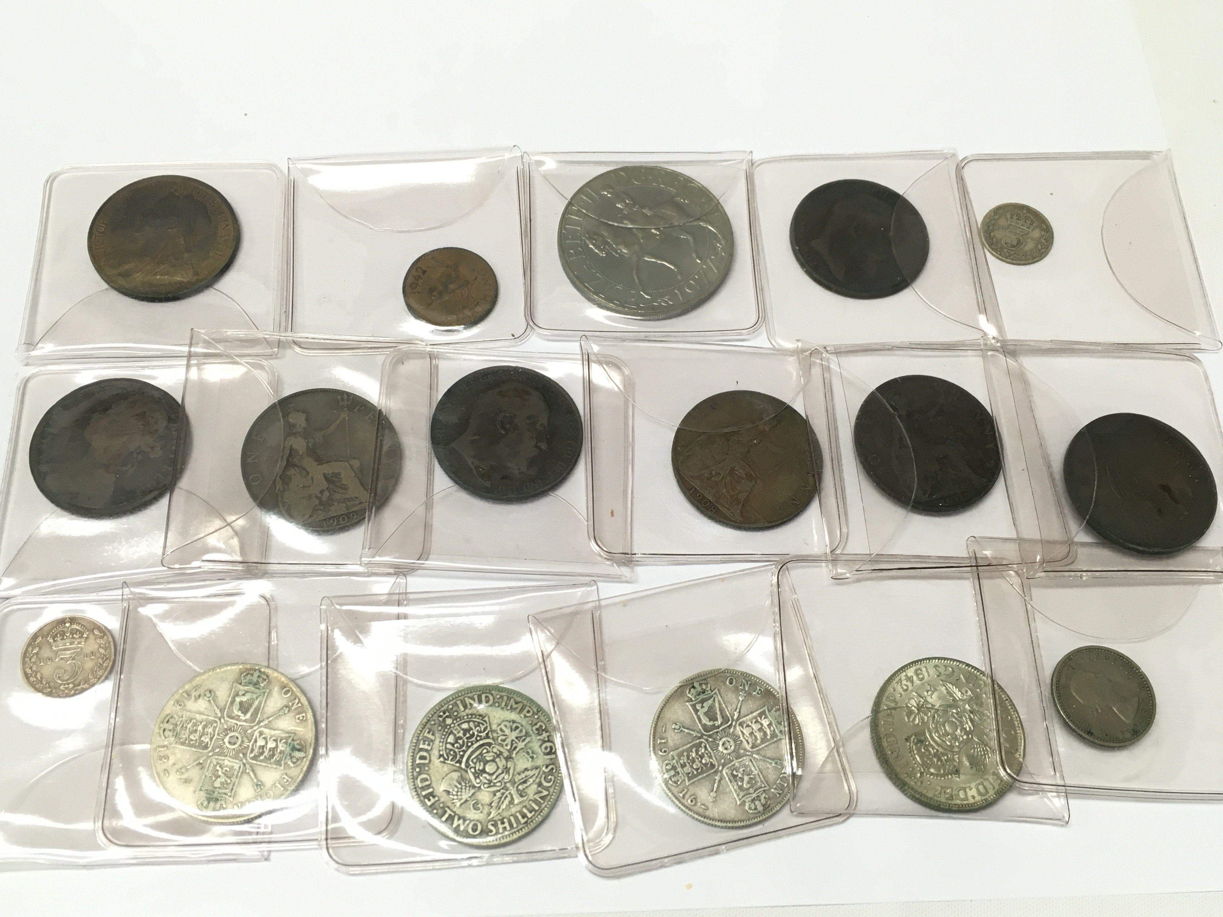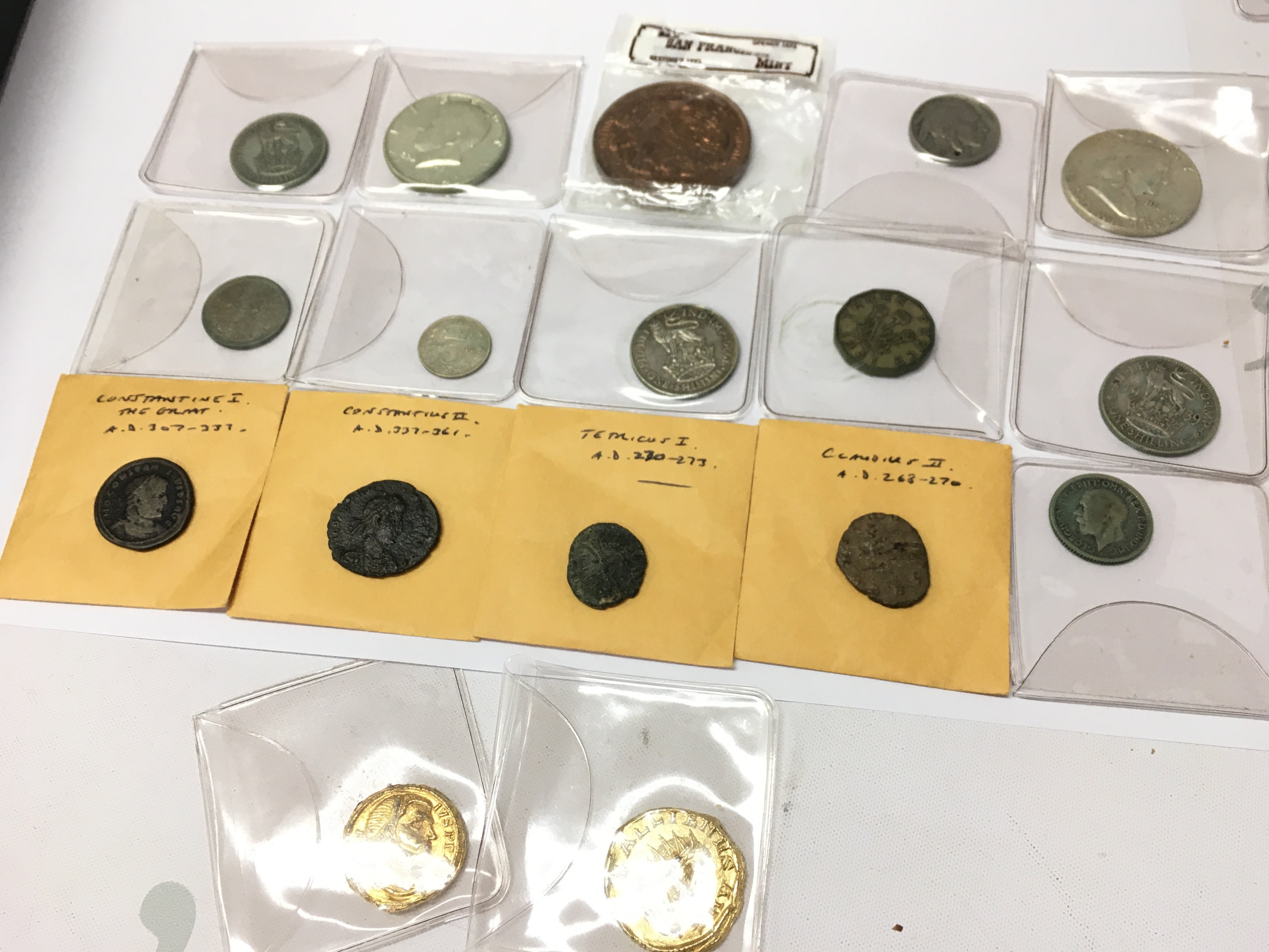 A collection of mixed coins including British coins, Ancient coins, Half Dollars and two German WW2 medals. Postage category A
