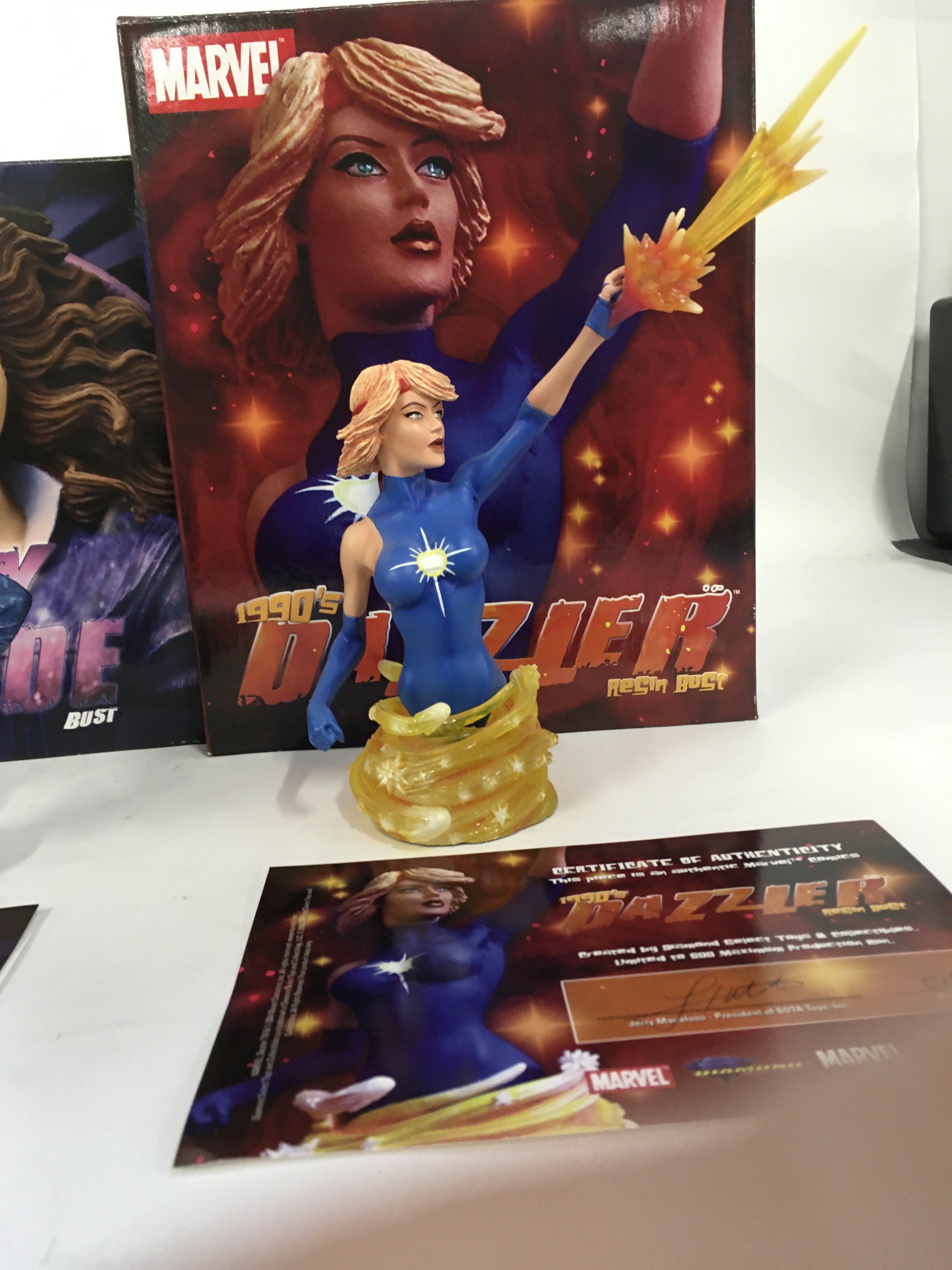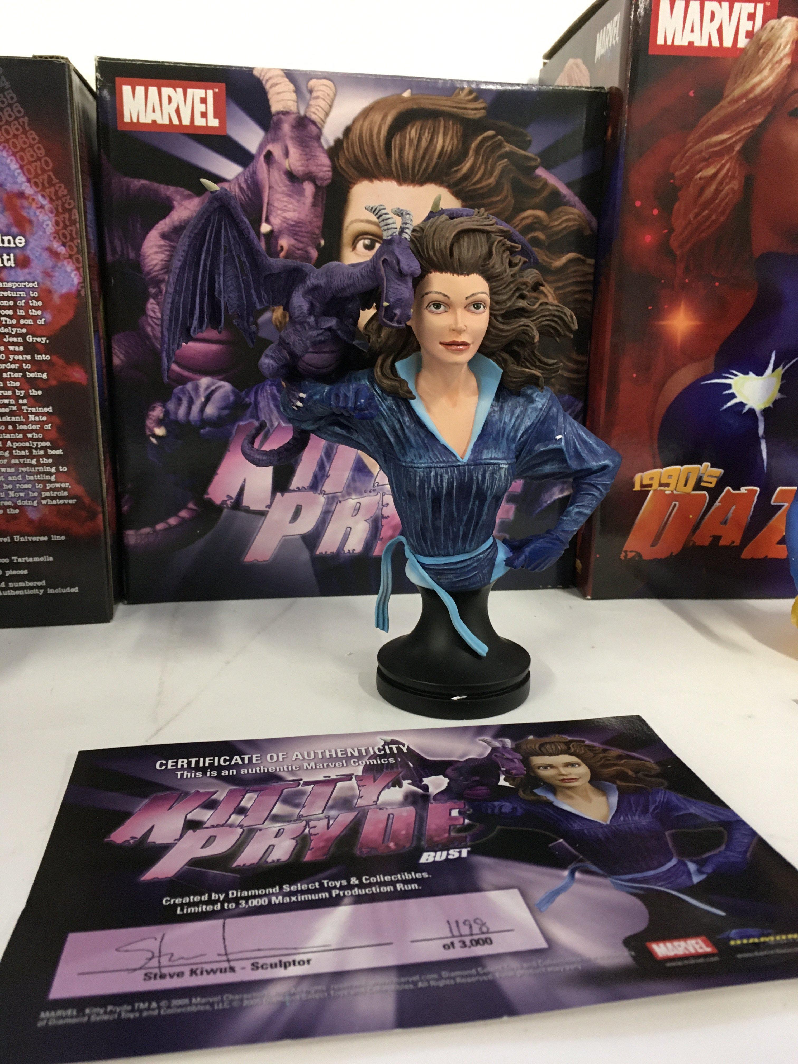 A collection of 4 Marvel sculptures featuring Polaris..Cable..Kitty Pryde and Dazzler. No reserve