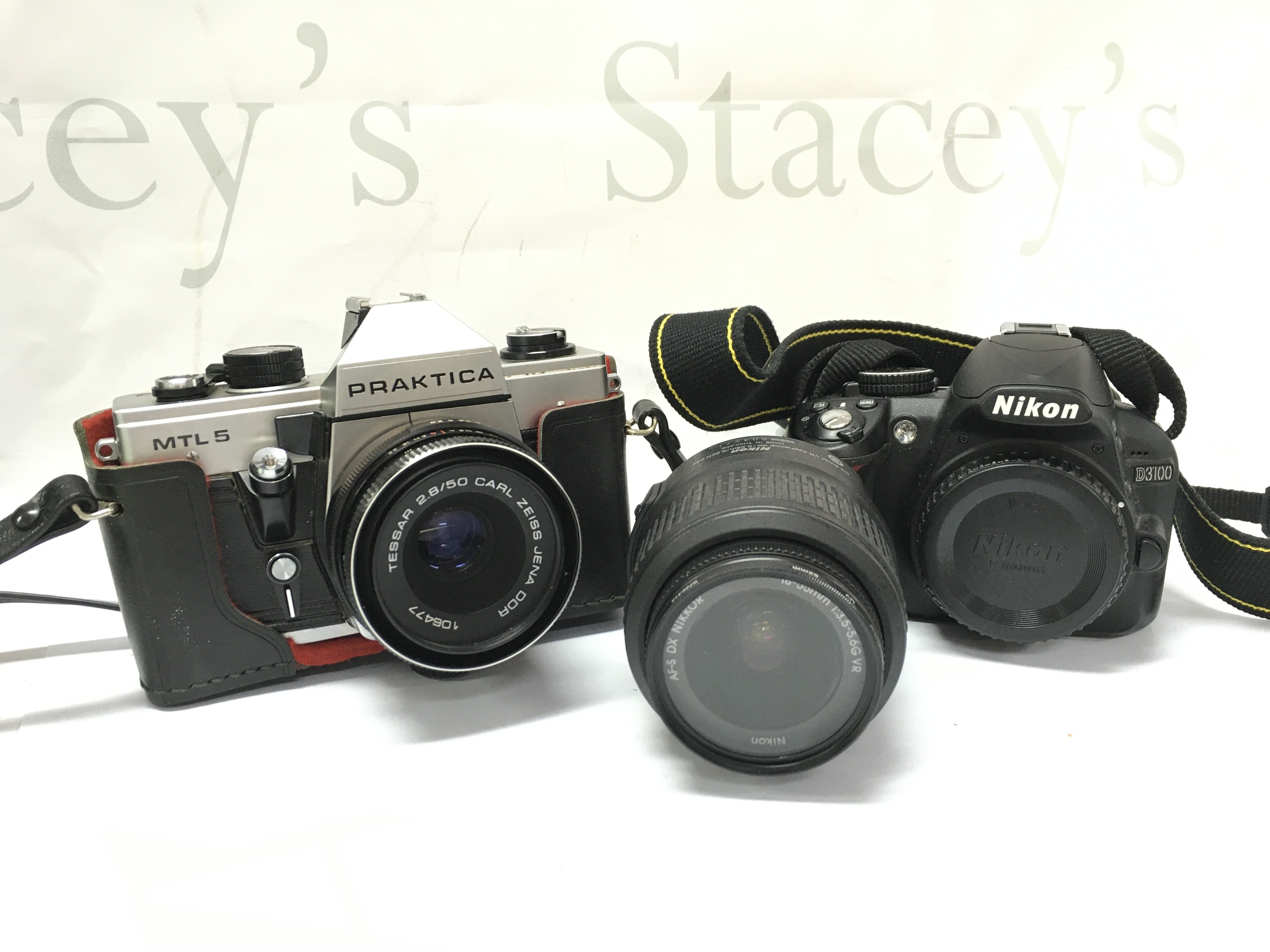 A Modern Nikon D3100 Digi SLR and a Praktica MTL5, postage category B