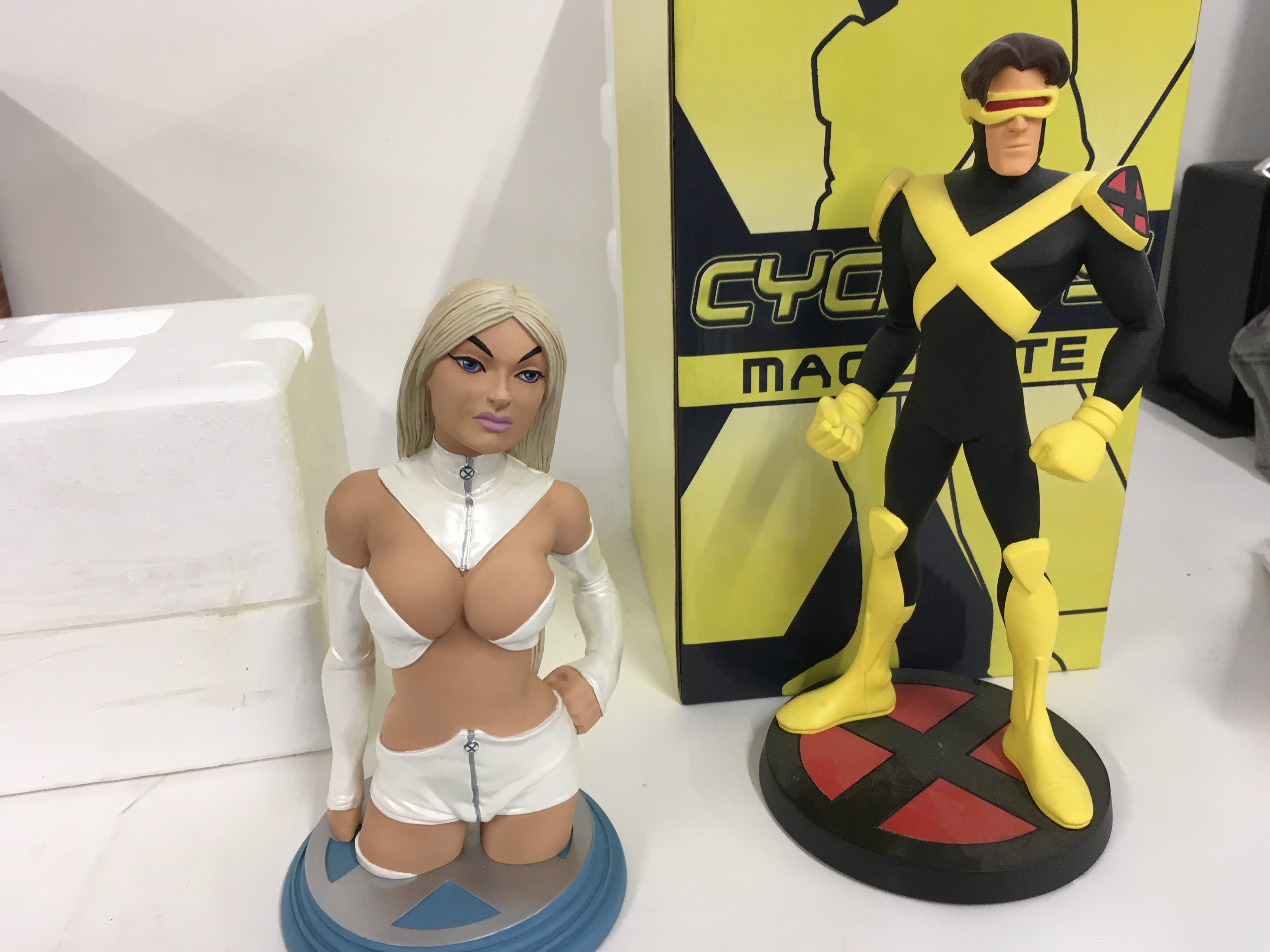 A collection of 4 Marvel sculptures including Dazzler..Gambit..White Queen and Cyclops. No reserve