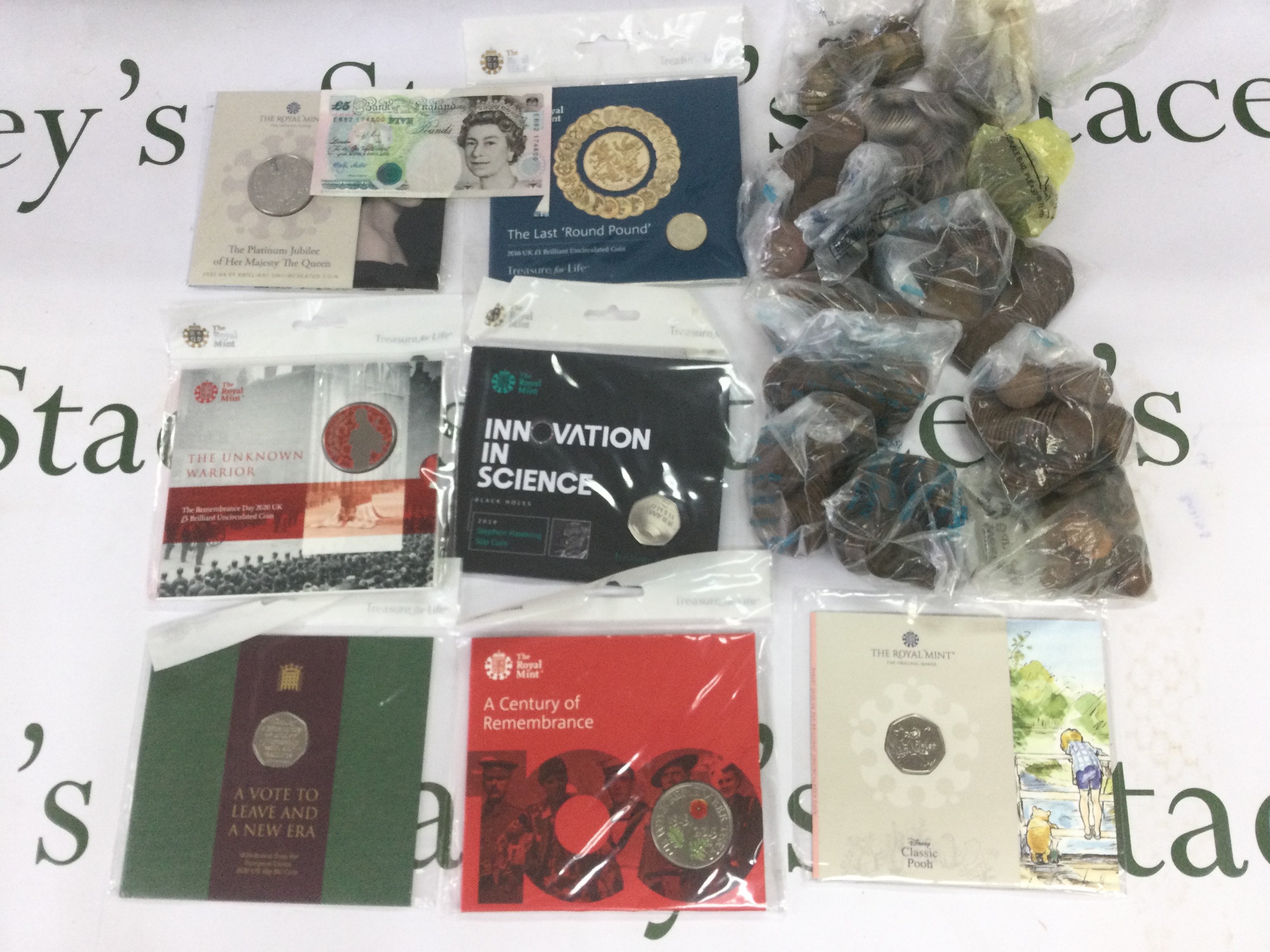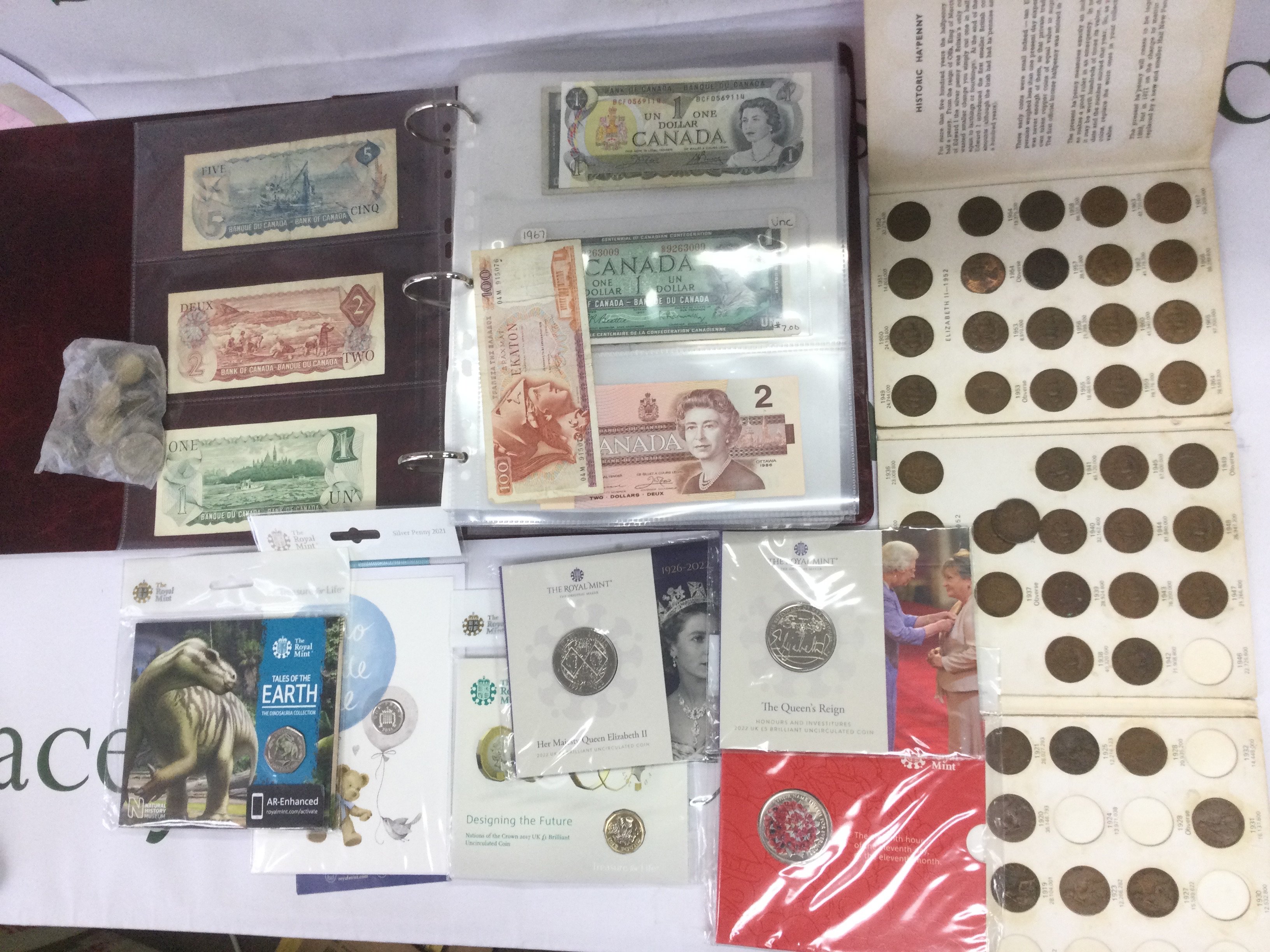 A collection of coins and banknotes, loose and in binders plus sealed proof sets. Shipping category D.