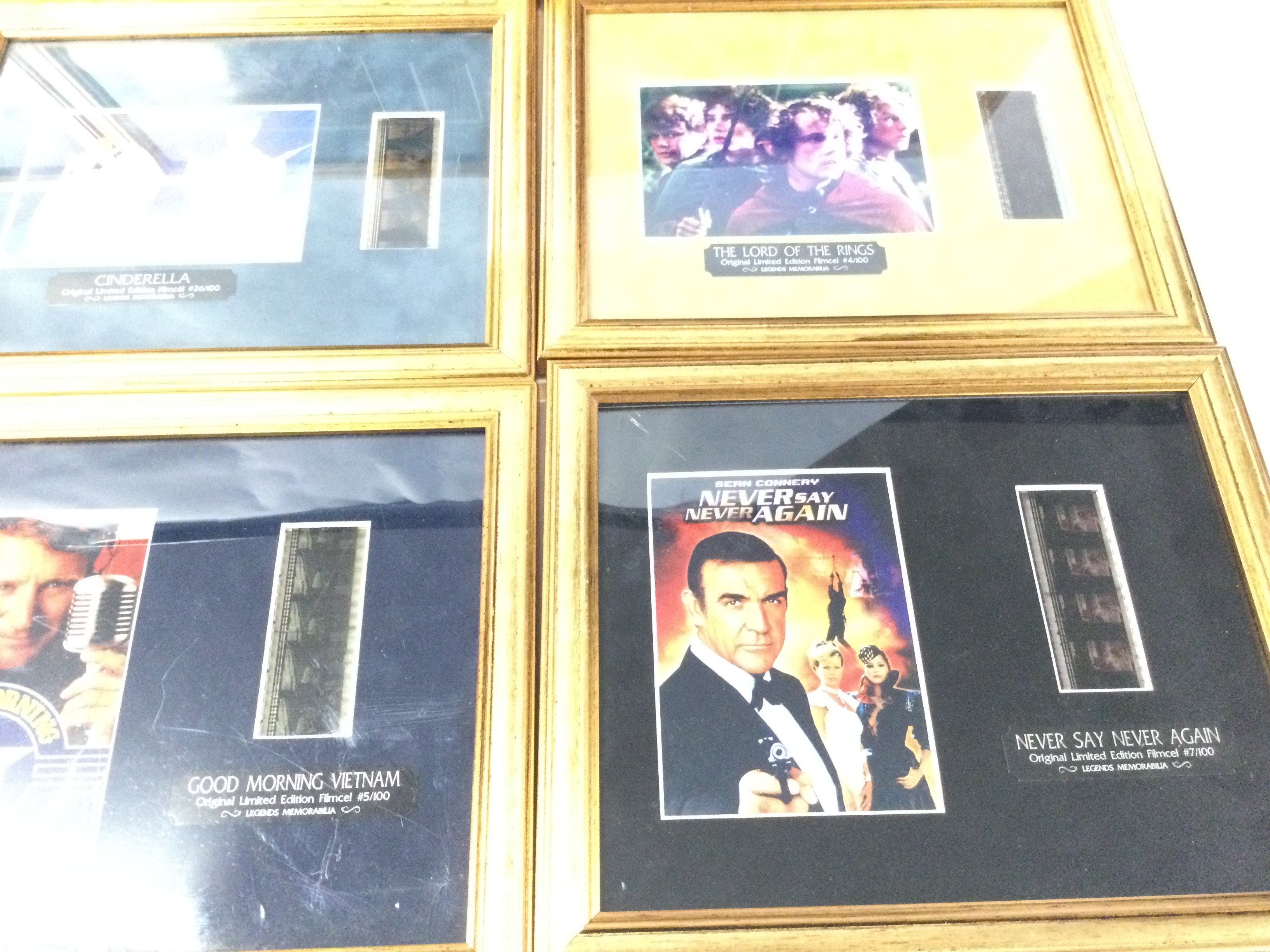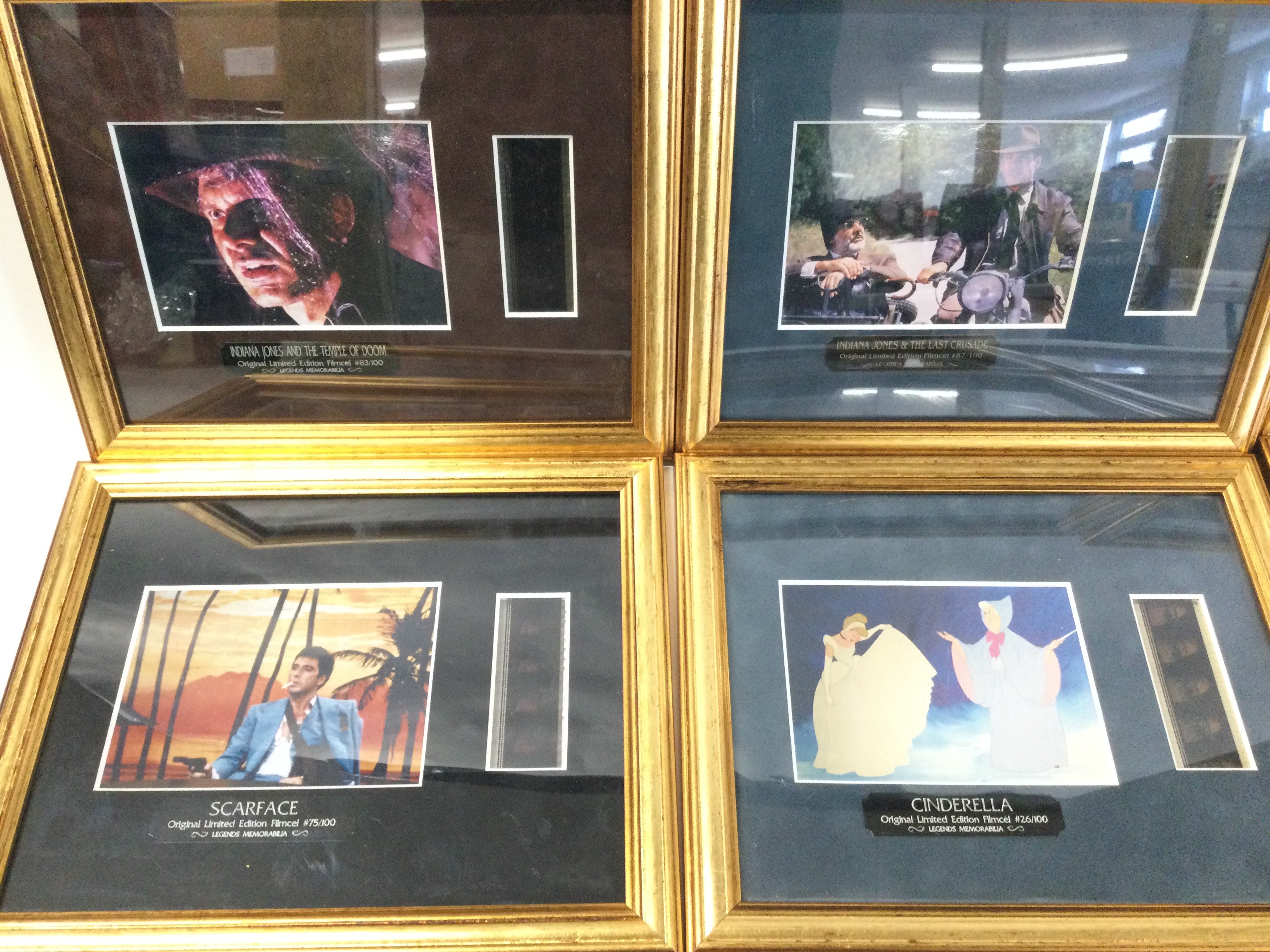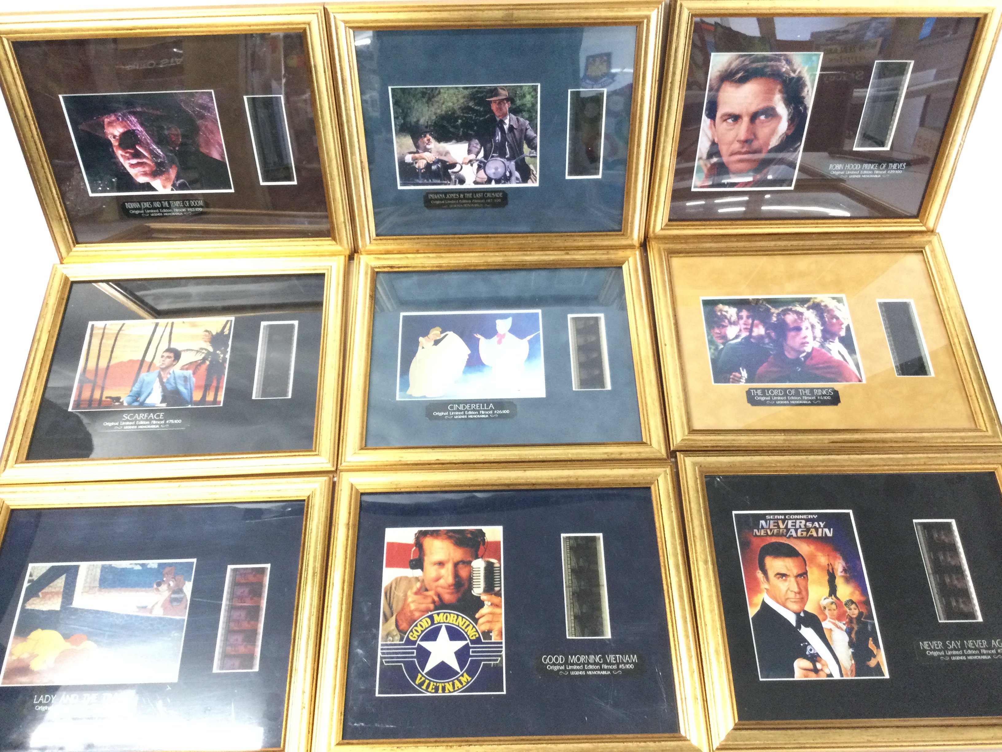 A Collection of Various Framed Movie Film Cells Including NeverSay Never Again. Indiana Jones. Lord Of The Rings. Disney Etc.