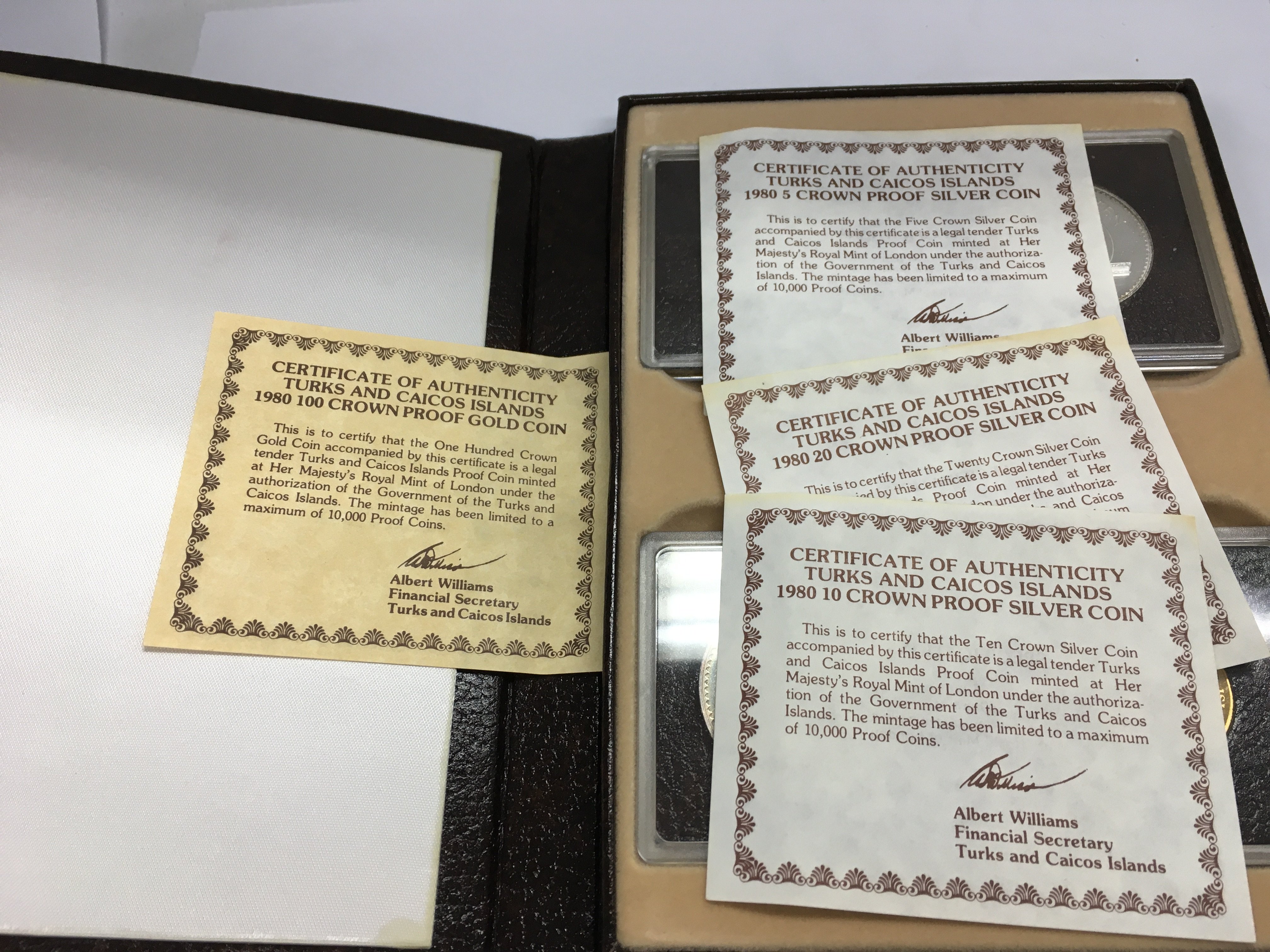 A turks and caicos silver and gold coin set. Includes a approx 13g 12ct gold coin. Postage B